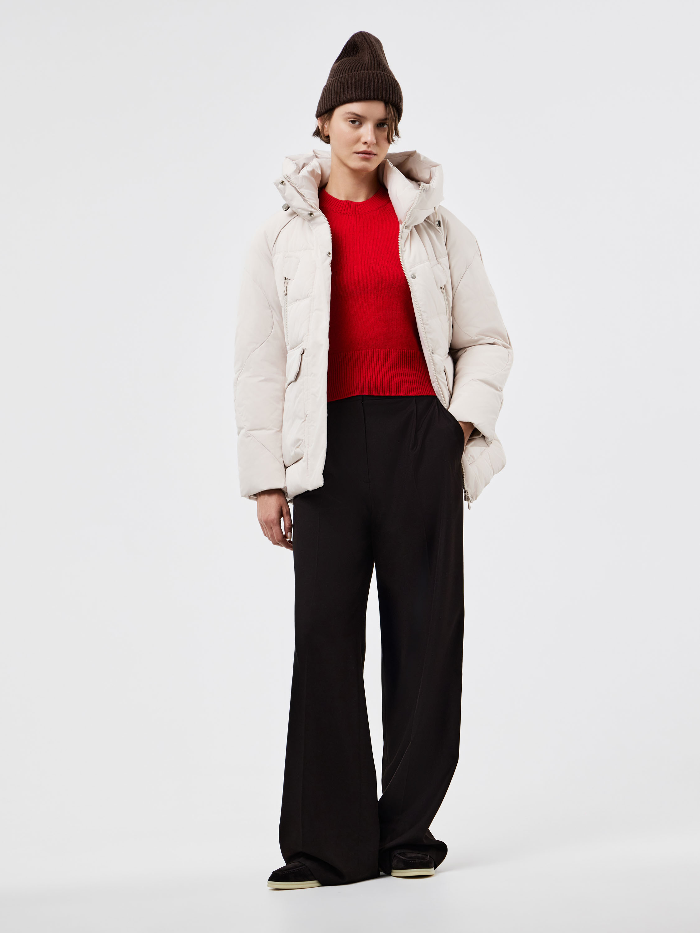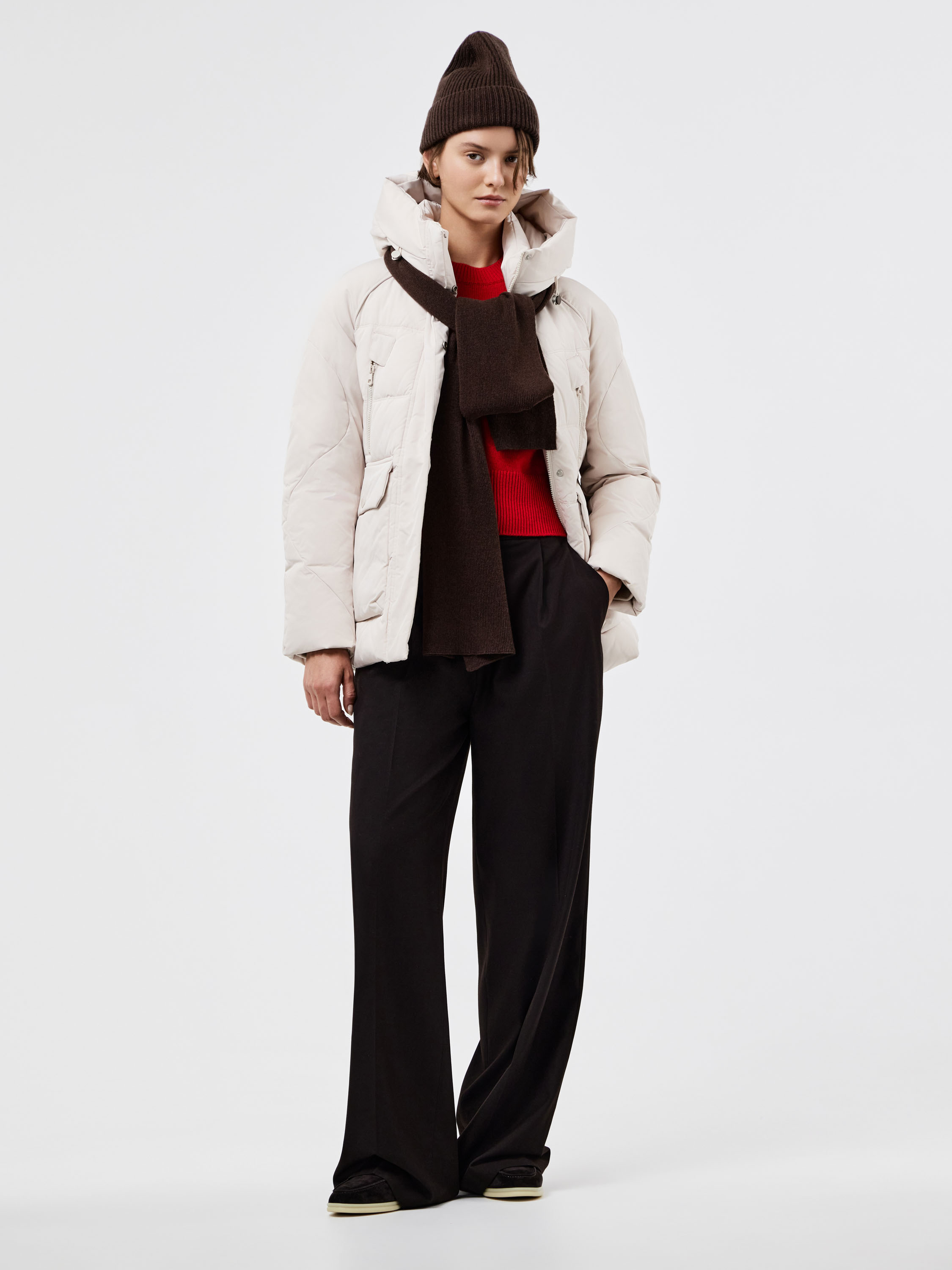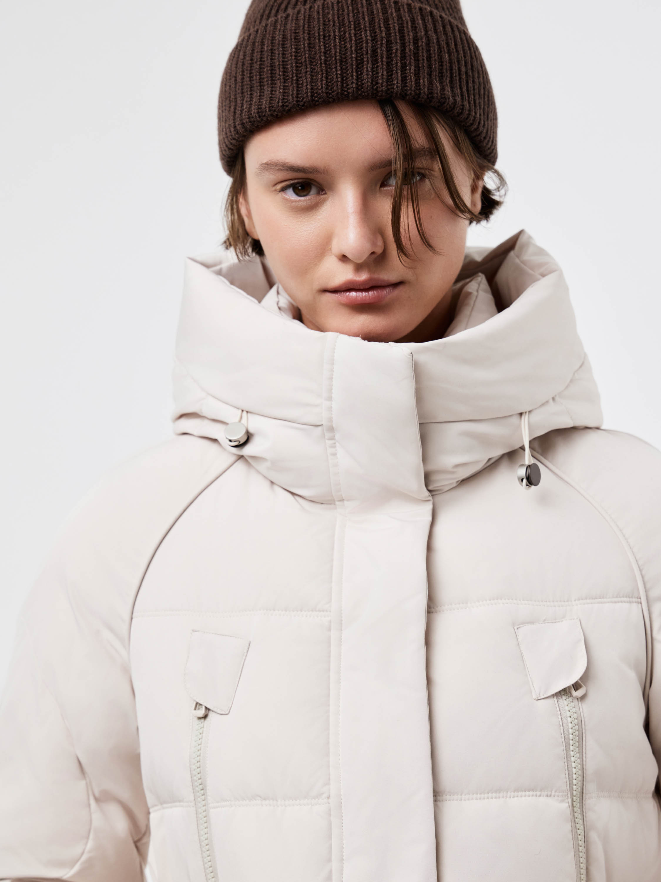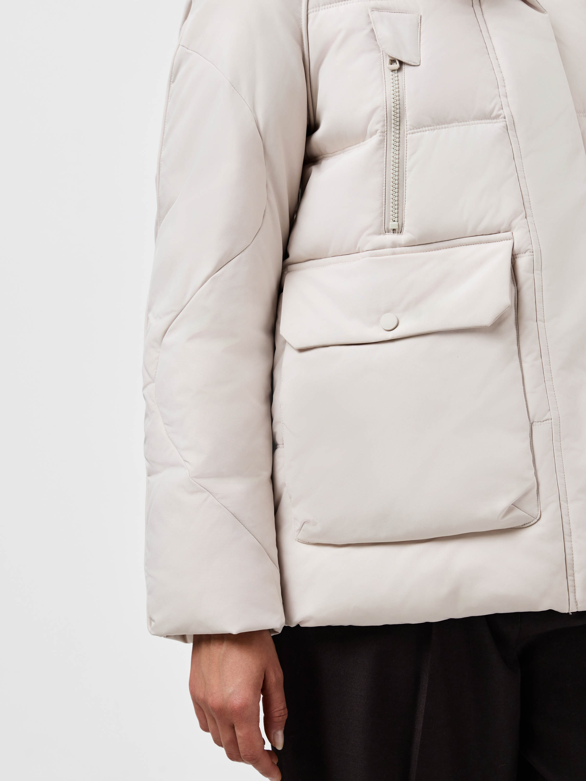 Пуховик прямого силуэта с акцентом на функциональные детали. В качестве наполнителя используется современный био-пух из полиэстера, который обеспечивает легкость, теплоизоляцию и комфорт в носке. Объемный капюшон защищает от ветра и холода, а застежка на молнию с планкой добавляет дополнительный уровень защиты. Карманы с клапанами и дополнительные нагрудные карманы делают модель практичной и удобной для повседневного использования. Лаконичный дизайн и универсальный крой позволяют сочетать пуховик как с базовыми джинсами и трикотажем, так и с более строгими элементами гардероба.