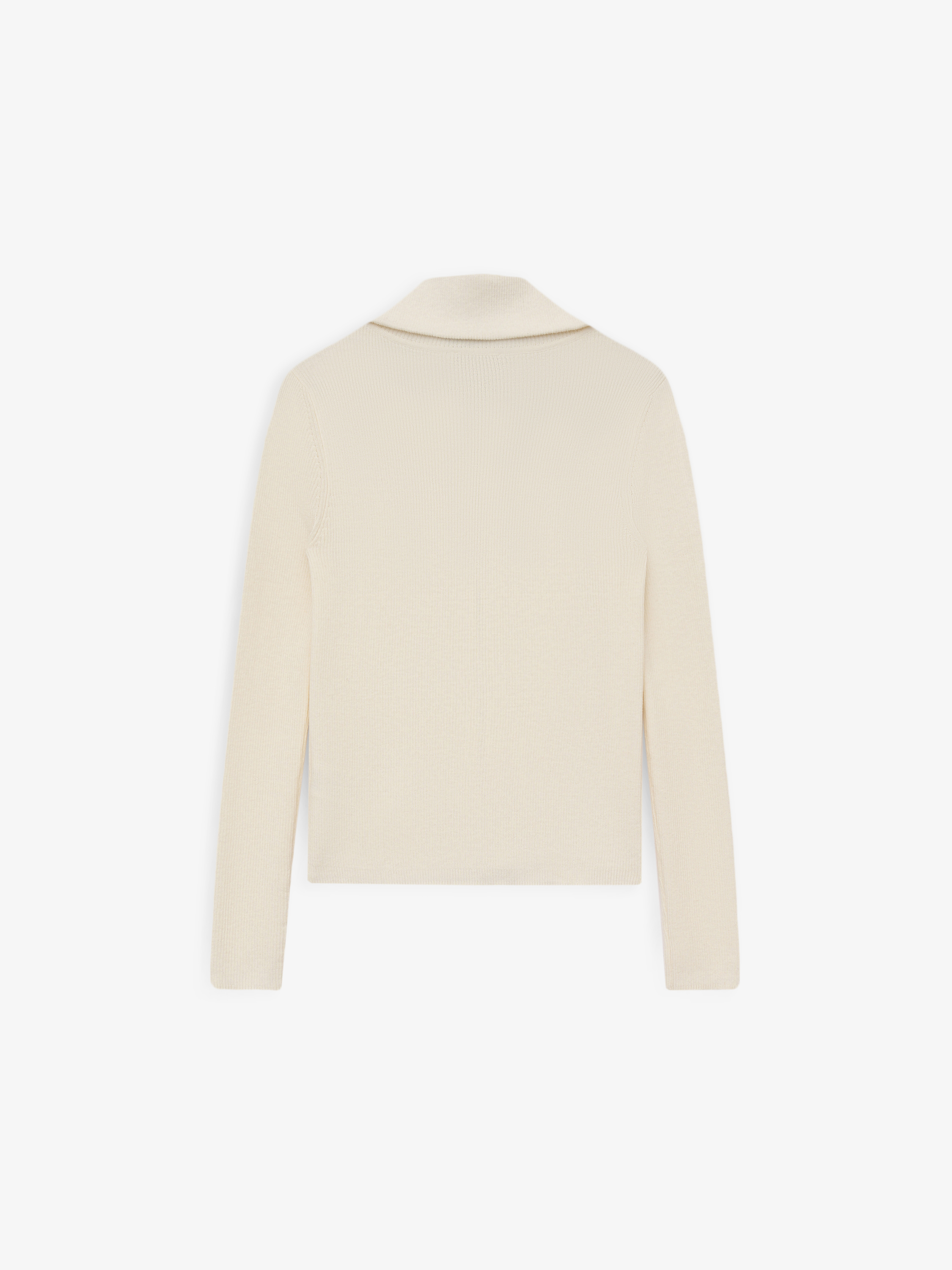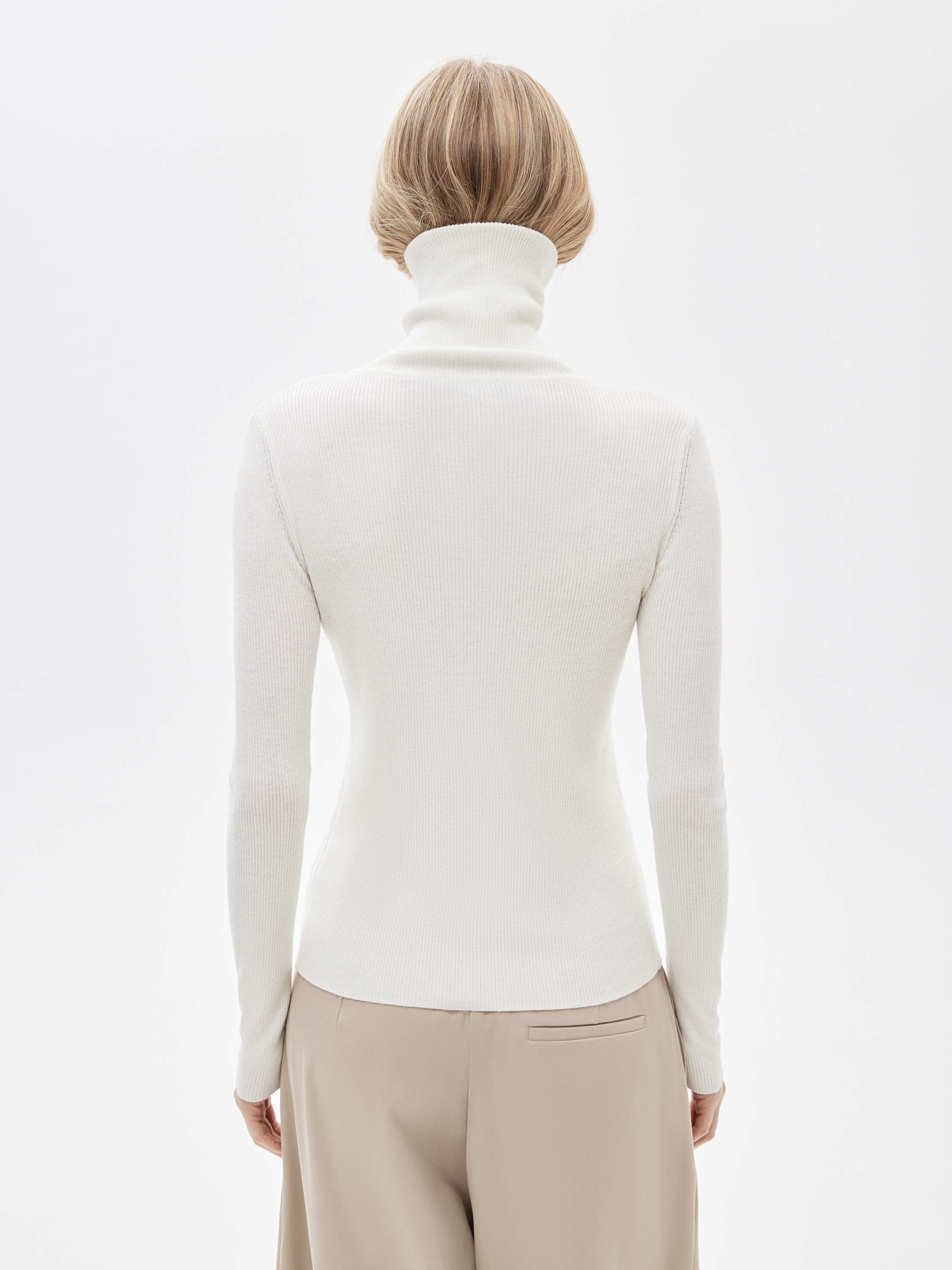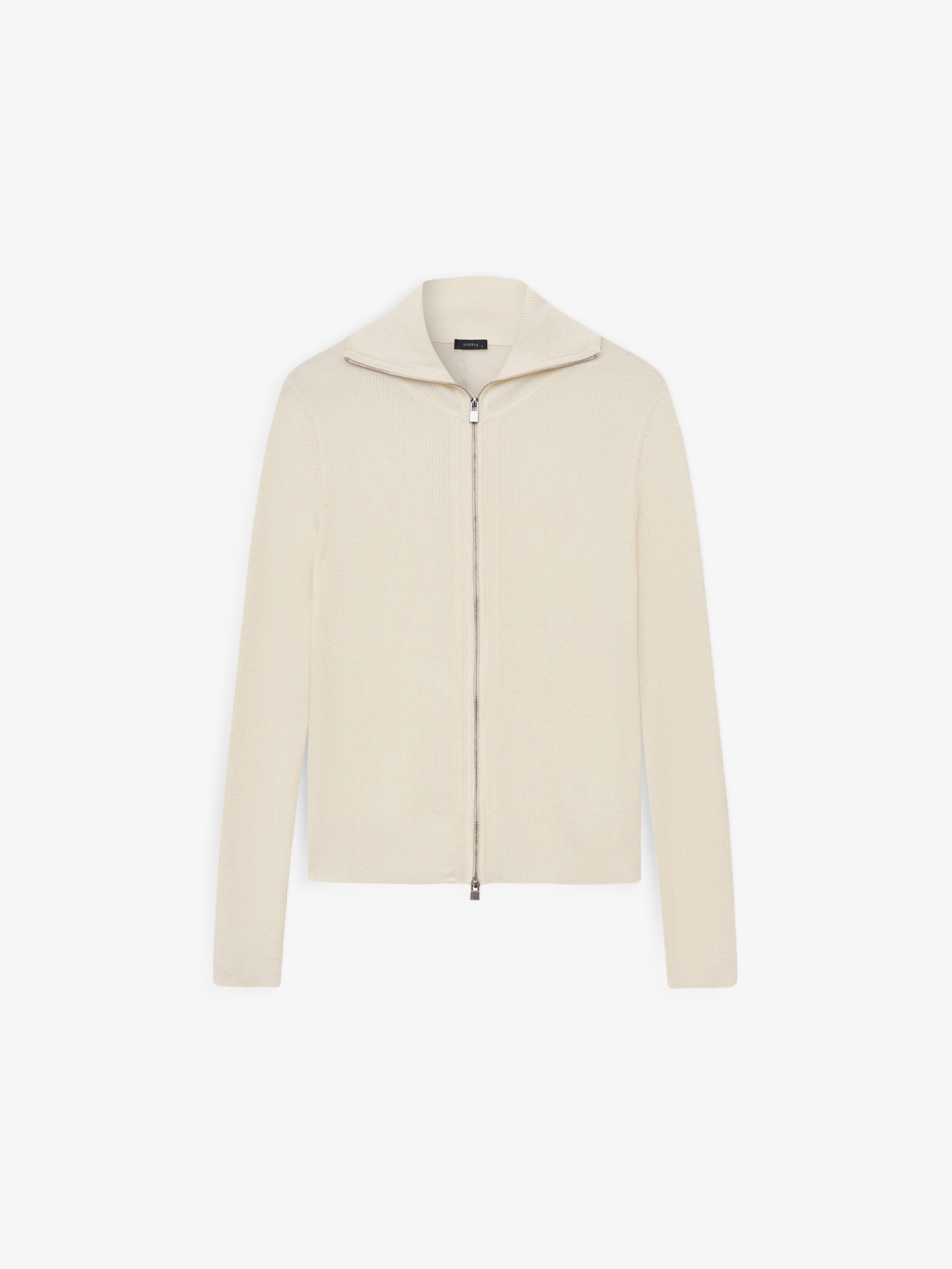 Кардиган выполнен из тонкого смесового трикотажа с добавлением шерсти мериноса. Материал мягкий, эластичный, комфортно прилегает к телу и подходит для повседневного ношения. Трикотаж хорошо сохраняет тепло, при этом остается легким и не перегружает образ. Фактура в мелкий рубчик подчеркивает вертикаль и аккуратно повторяет линии фигуры. Посадка прилегающая, без избыточного обьема. Воротник с мягкой стойкой и застежка на молнию задают четкую, лаконичную форму. Длинный рукав и аккуратная обработка низа завершают силуэт. Кардиган легко сочетается с юбками, брюками и базовыми слоями, подходит для повседневных и более собранных образов.