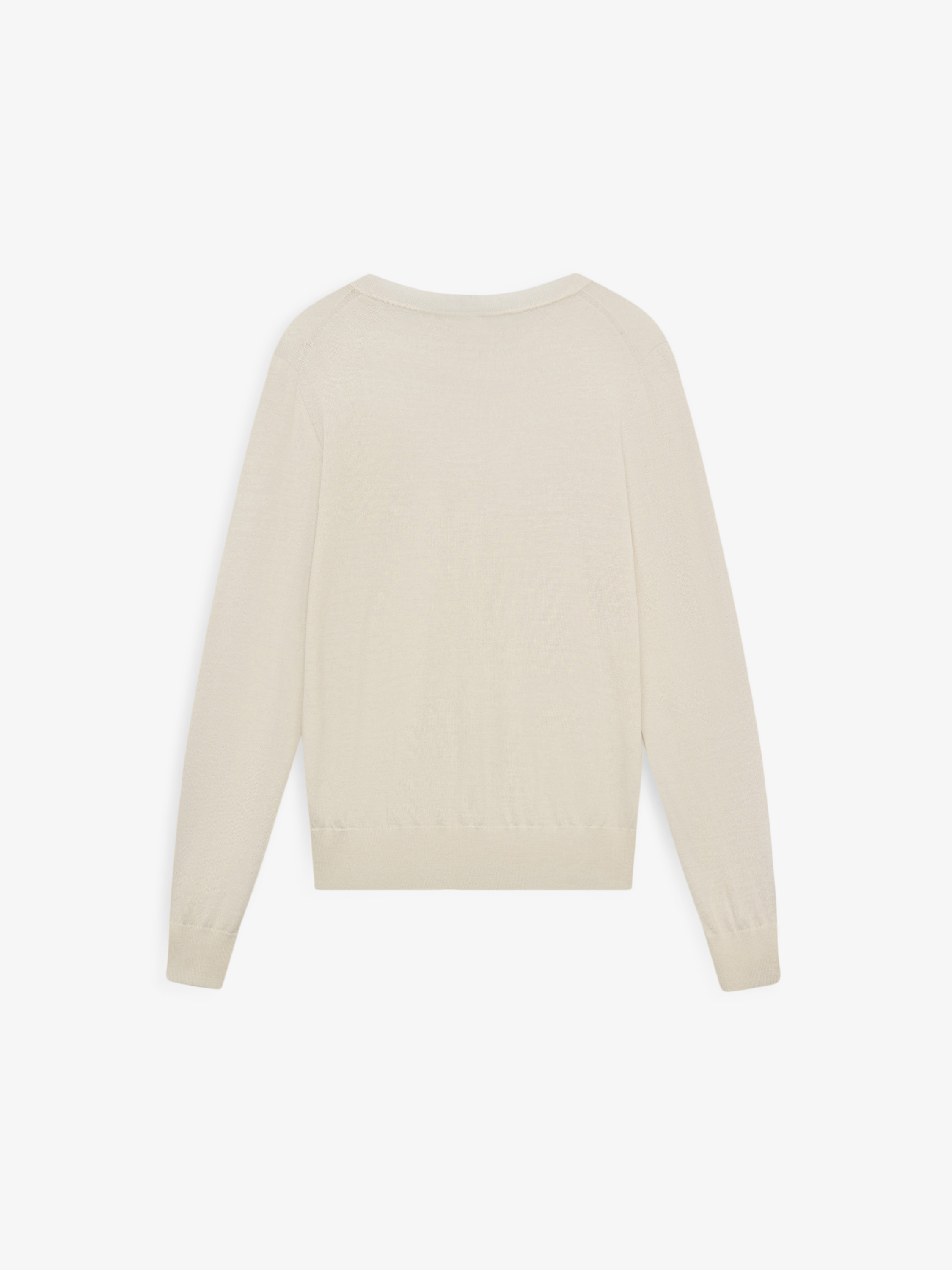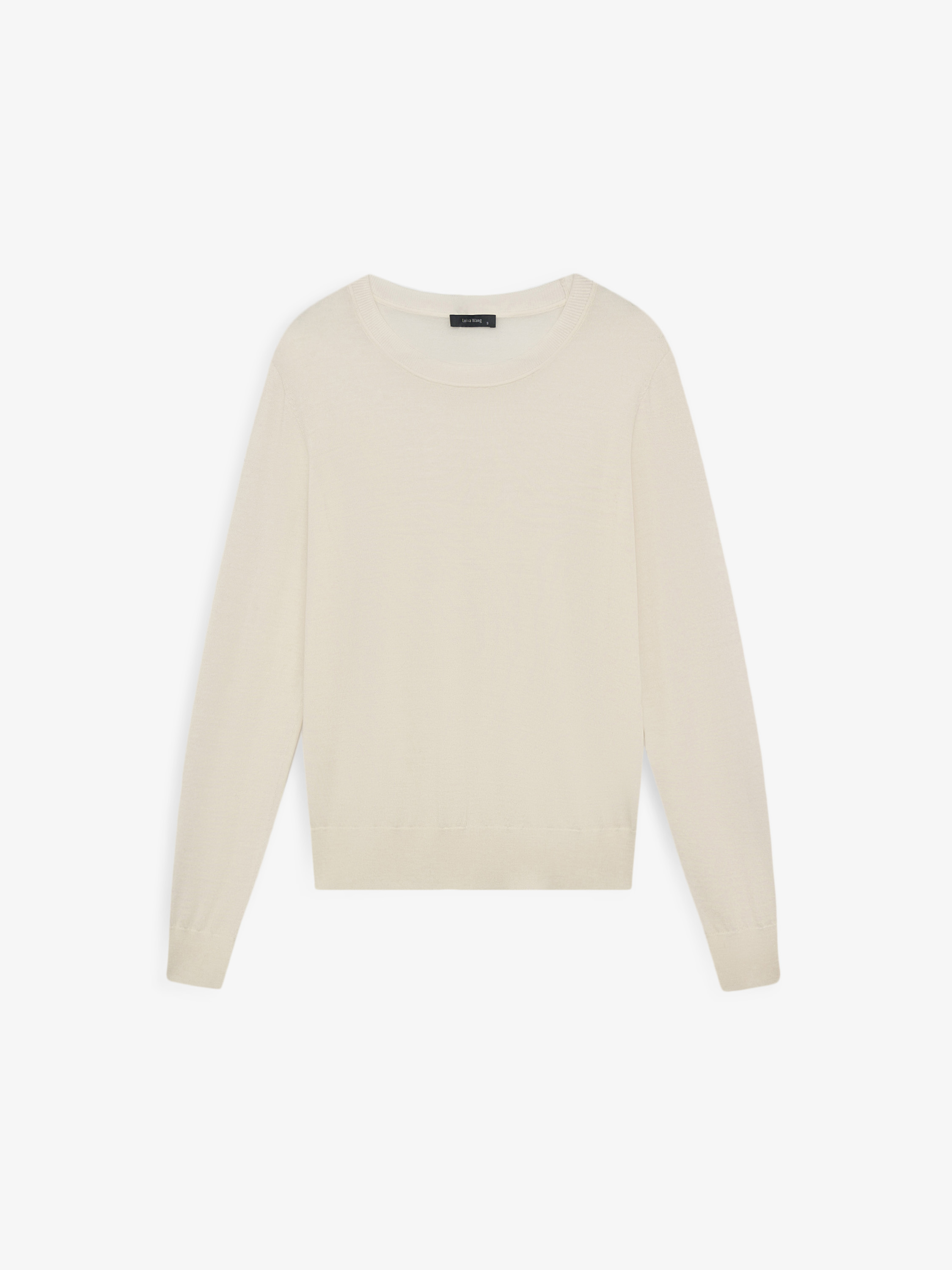 Джемпер выполнен из тонкого шерстяного трикотажа с гладкой, ровной фактурой. Материал мягкий, тактильно приятный, комфортно ощущается на теле и подходит для многослойных сочетаний. Силуэт прямой, без избыточного объема, с естественной посадкой. Круглая линия горловины оформлена аккуратной трикотажной окантовкой. Длинный рукав с мягкими манжетами и эластичная обработка низа создают собранное, аккуратное завершение. Джемпер сочетается с костюмными брюками, юбками миди и жакетами, органично вписываясь в повседневный гардероб.