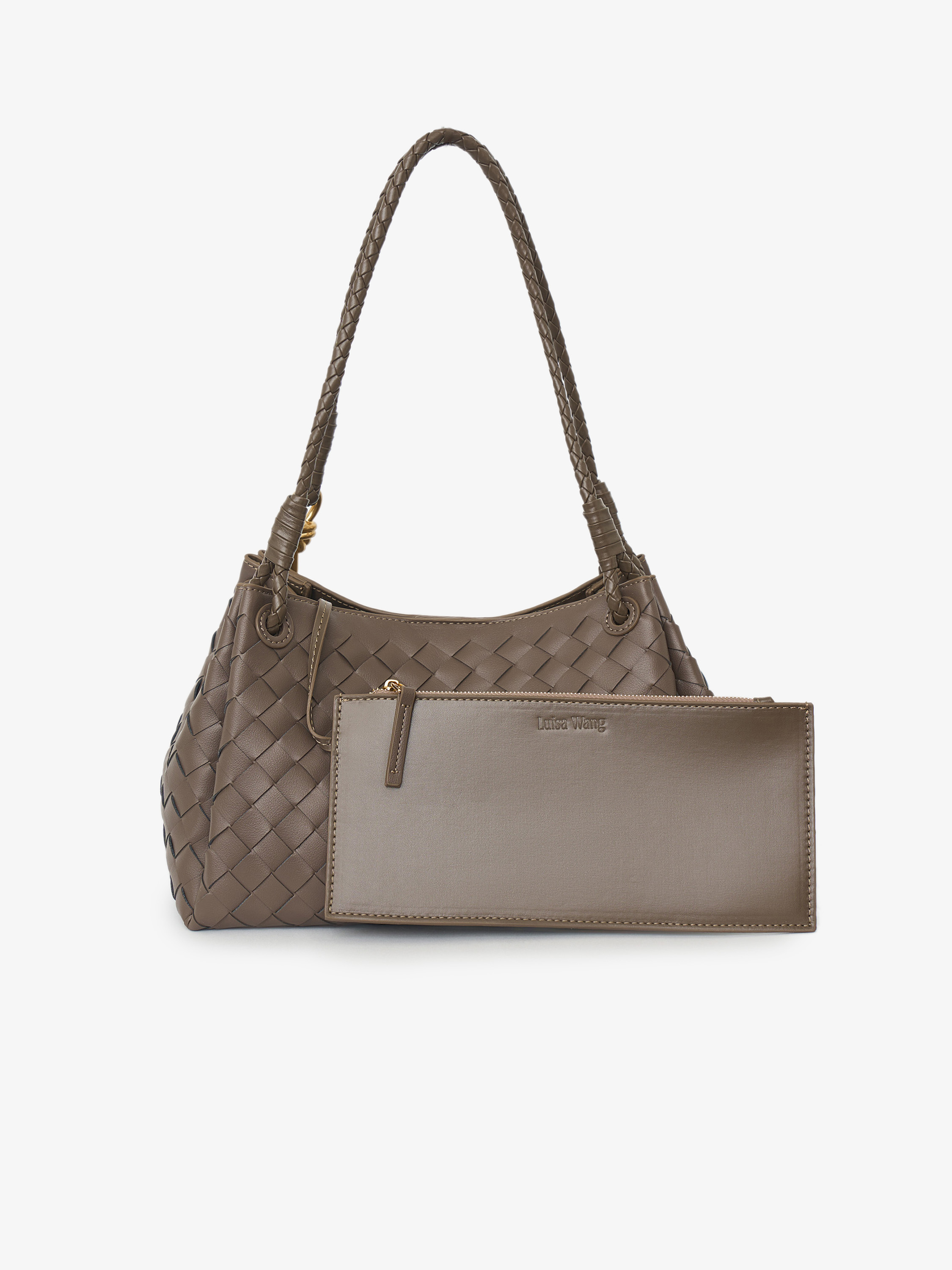 Сумка выполнена из натуральной кожи с характерным плетением, которое формирует выразительную фактуру и придает модели объем. Мягкая конструкция позволяет сумке естественно держать форму и удобно располагаться под рукой. Модель дополнена короткой ручкой из плетеной кожи с металлическими креплениями, благодаря чему ее комфортно носить на плече или в руке. Компактный формат делает сумку удобной для повседневного использования, а глубокий коричневый оттенок подчеркивает фактуру кожи и легко сочетается с базовой палитрой гардероба.