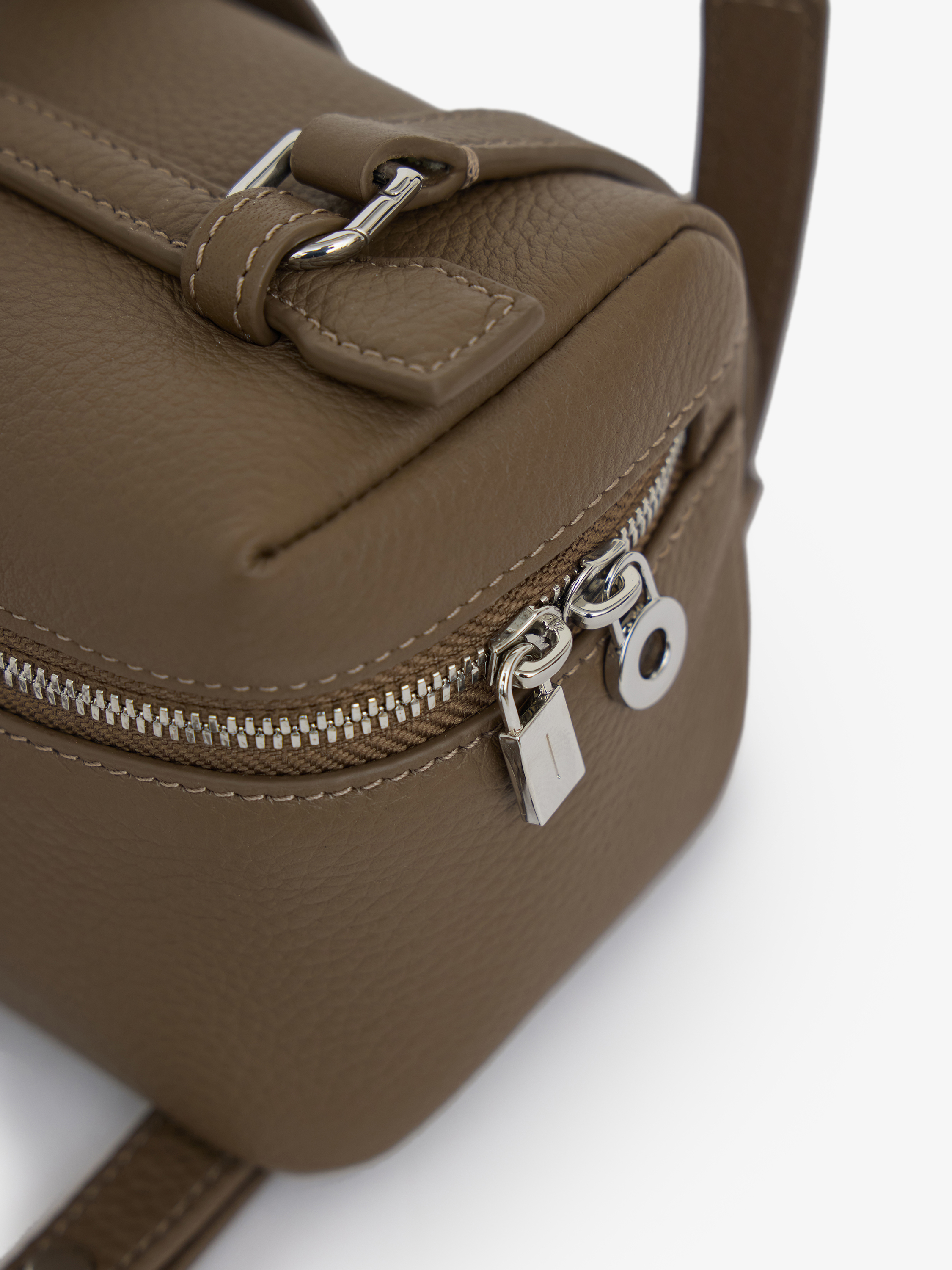 Сумка из натуральной кожи с компактной, четко заданной формой. Плотная кожа формирует ровную поверхность с деликатной зернистой фактурой и аккуратным внешним видом. Конструкция выстроена на основной застежке-молнии, которая обеспечивает удобный доступ к содержимому и сохраняет собранность силуэта. Длинный регулируемый ремень позволяет носить сумку на плече или через плечо, адаптируя посадку под рост и образ. Формат небольшой, но функциональный — подходит для повседневного ритма, когда важны лаконичность и аккуратная организация.