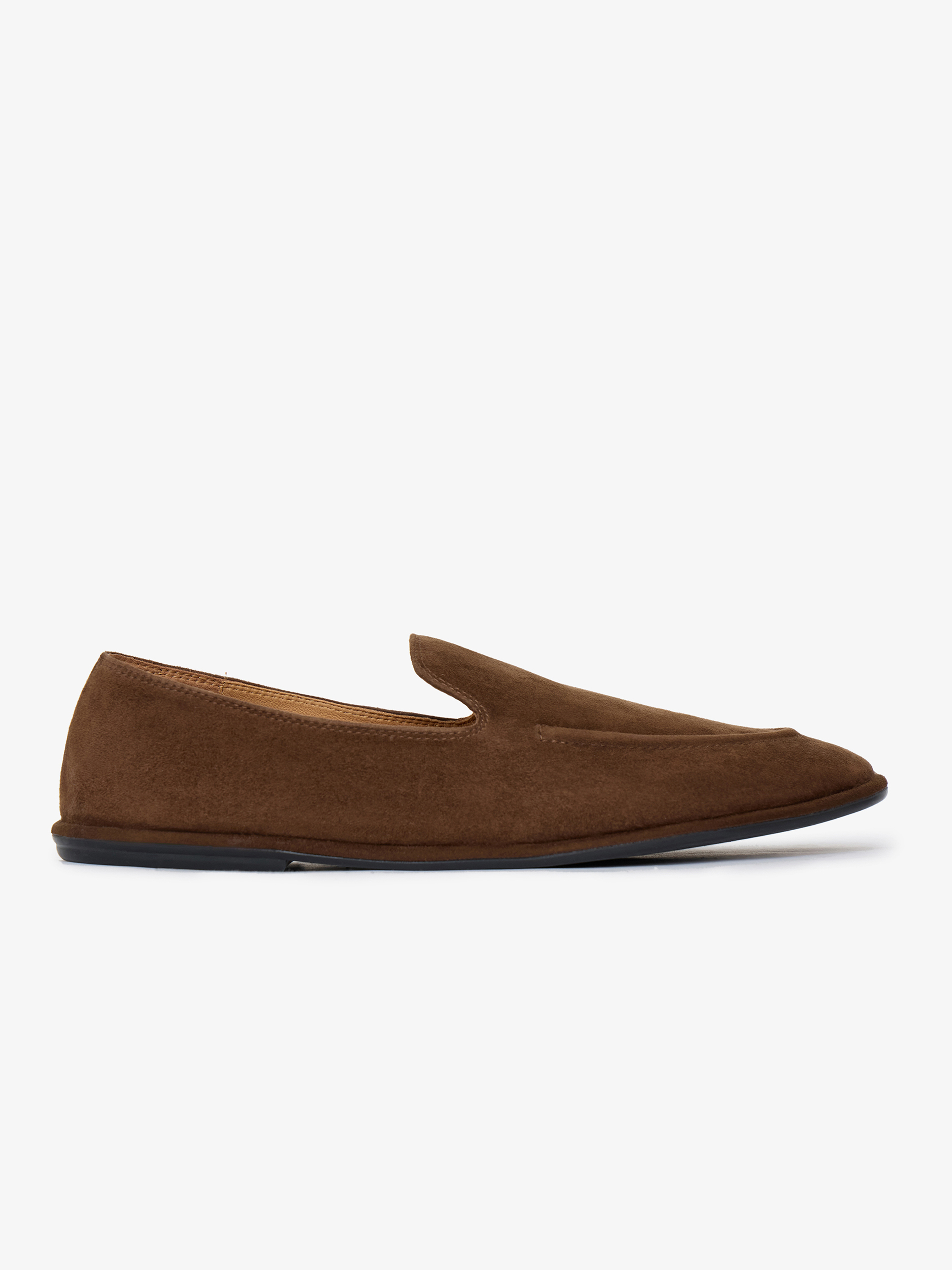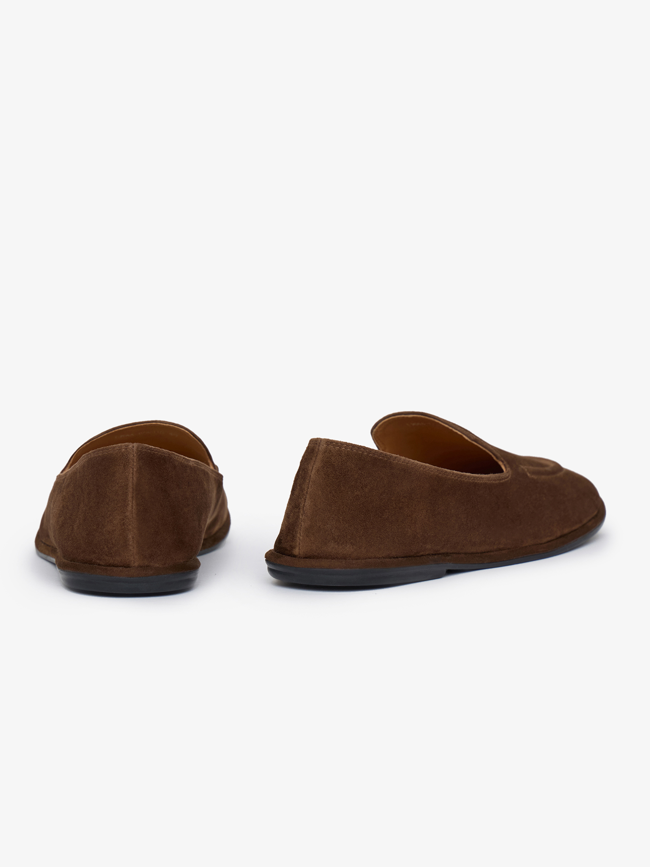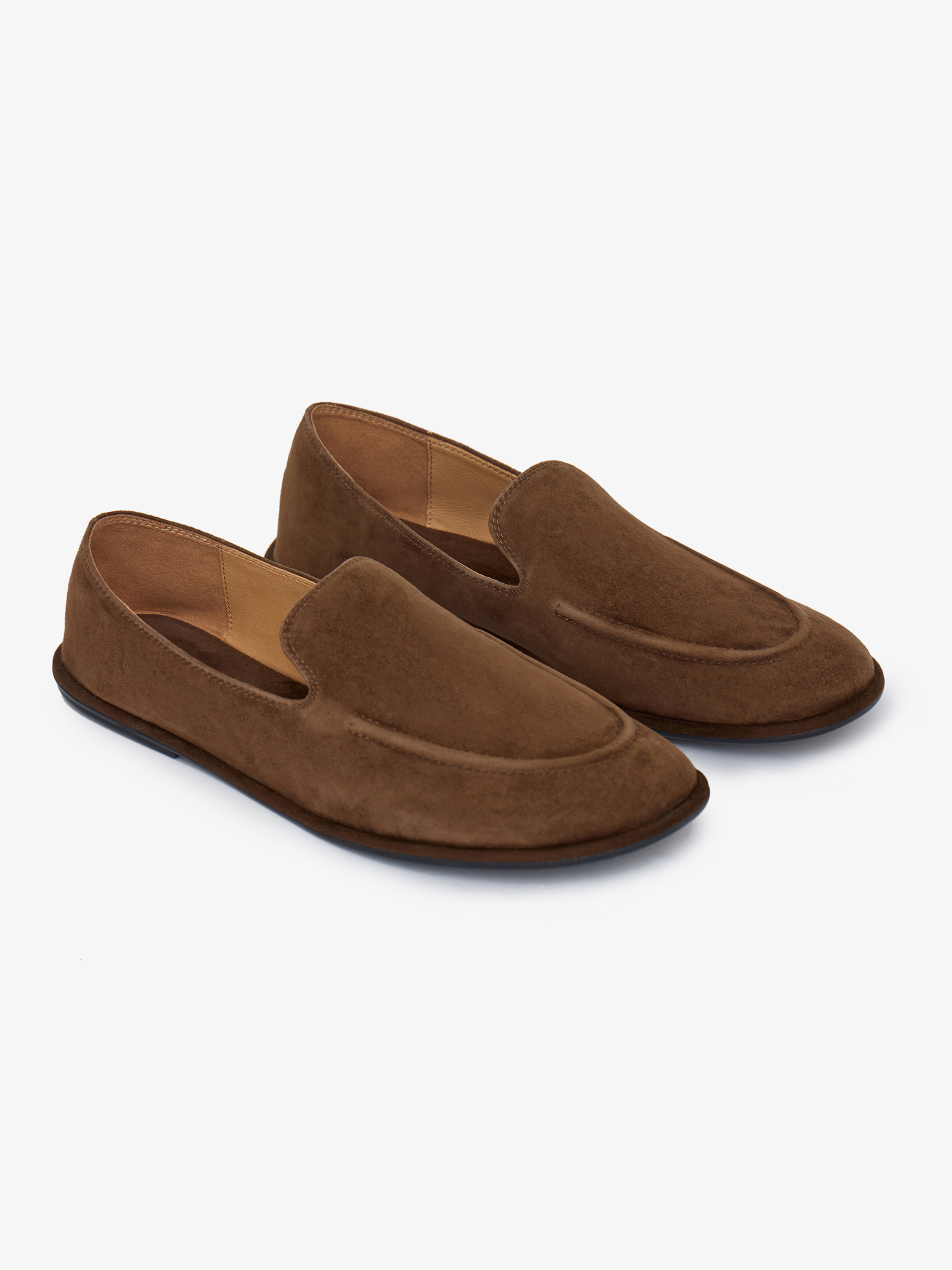 Лоферы выполнены из натуральной замши с бархатистой, равномерной фактурой и мягким визуальным эффектом. Материал пластичный, постепенно принимает форму стопы и сохраняет аккуратный внешний вид при регулярном ношении. Подкладка из натуральной кожи обеспечивает комфорт при контакте с ногой и способствует естественной циркуляции воздуха. Классическая конструкция с закрытым мысом и лаконичным верхом подчеркивает универсальный характер модели. Резиновая подошва добавляет устойчивость и практичность в повседневном использовании. Лоферы подходят для сочетаний с брюками, юбками и трикотажными изделиями, легко вписываясь в повседневный гардероб.