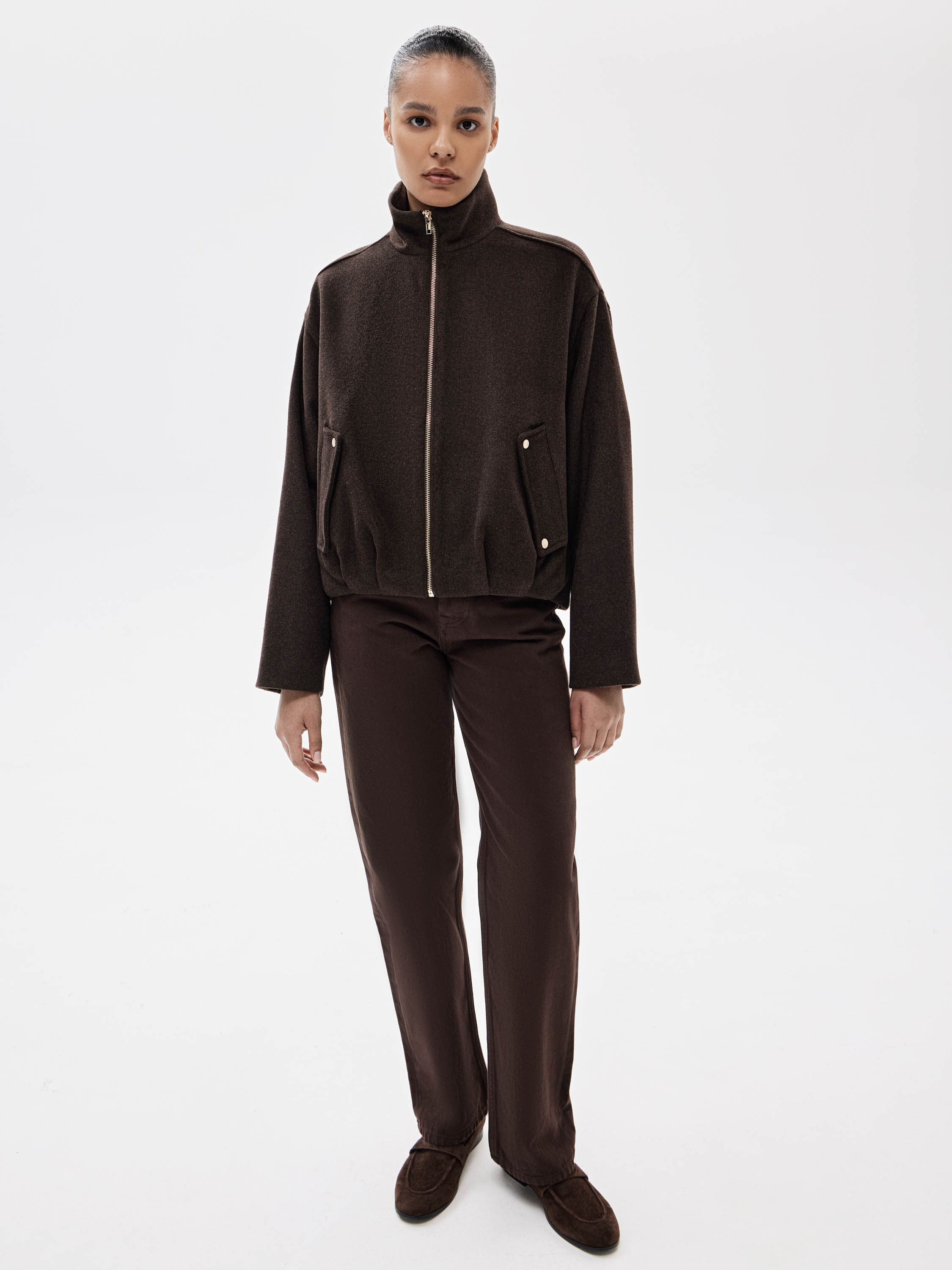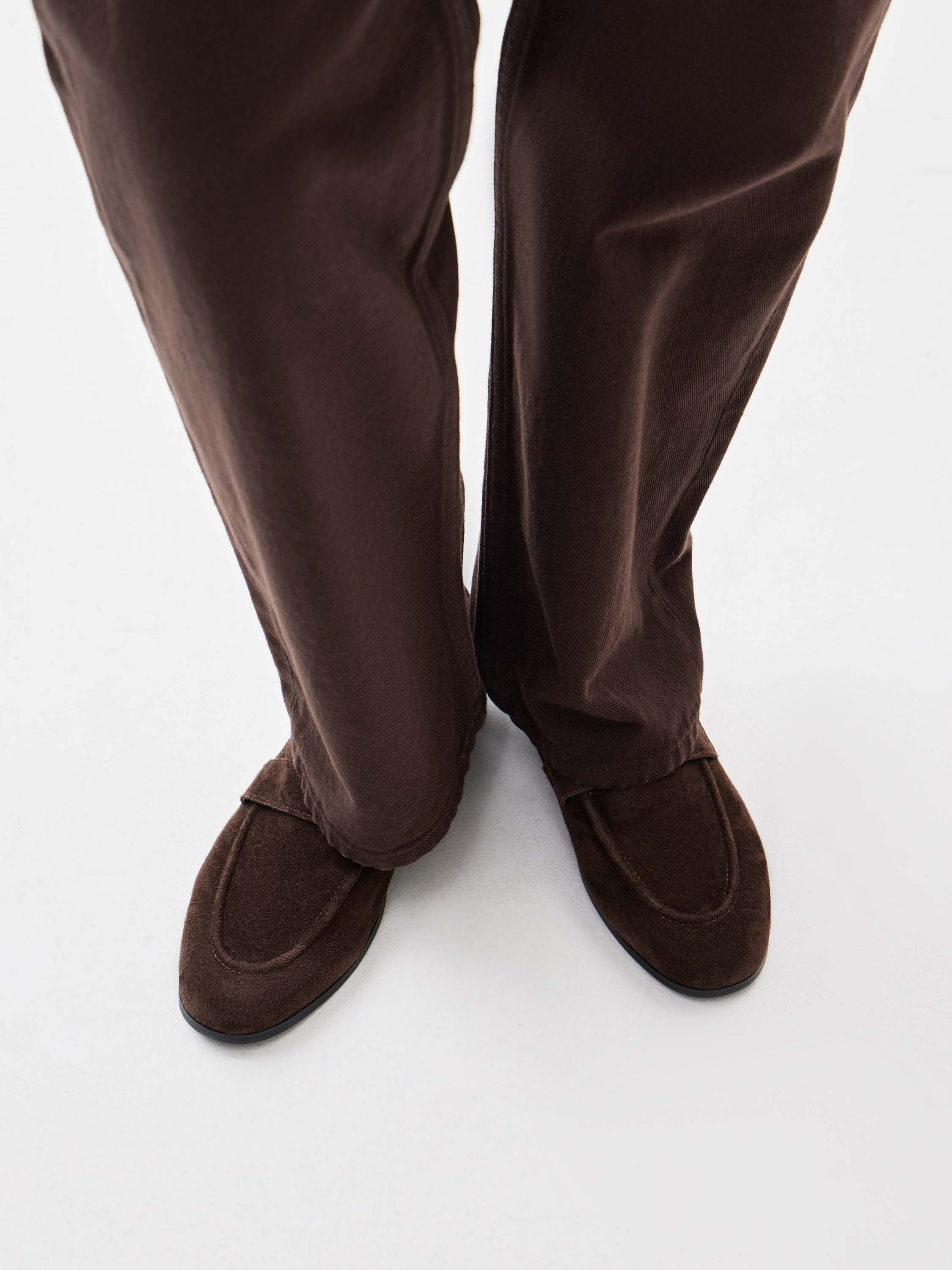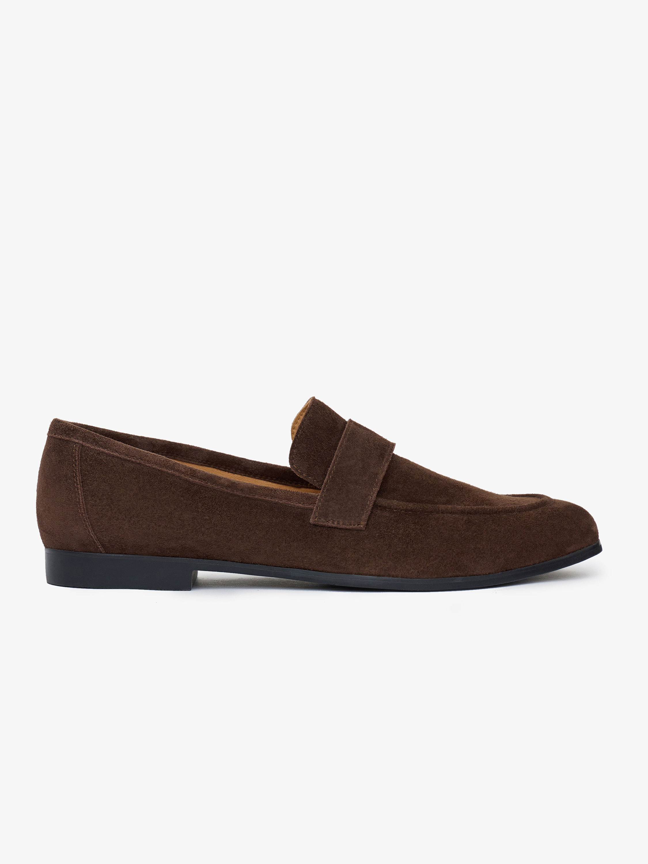 Лоферы выполнены из натуральной замши с плотной, равномерной фактурой и мягким бархатистым эффектом. Материал пластичный, хорошо адаптируется к форме стопы и сохраняет аккуратный внешний вид при регулярном ношении. Подкладка из натуральной кожи обеспечивает комфорт при контакте с ногой и способствует естественной циркуляции воздуха. Конструкция без декоративных элементов подчеркивает лаконичную форму модели и универсальность силуэта. Резиновая подошва добавляет практичности и уверенного контакта с поверхностью. Лоферы подходят для сочетаний с брюками, юбками и трикотажными изделиями, органично вписываясь в повседневный гардероб.