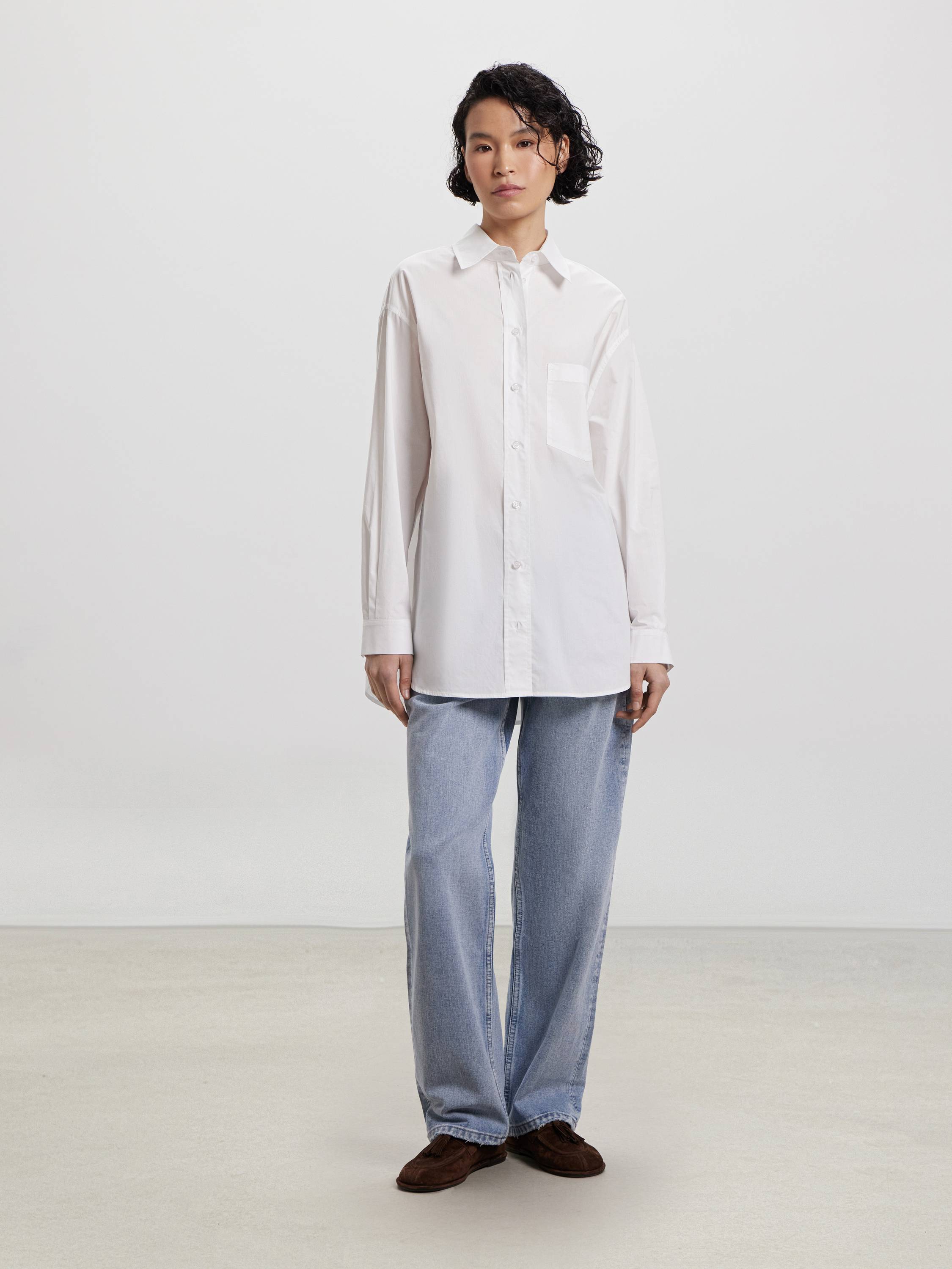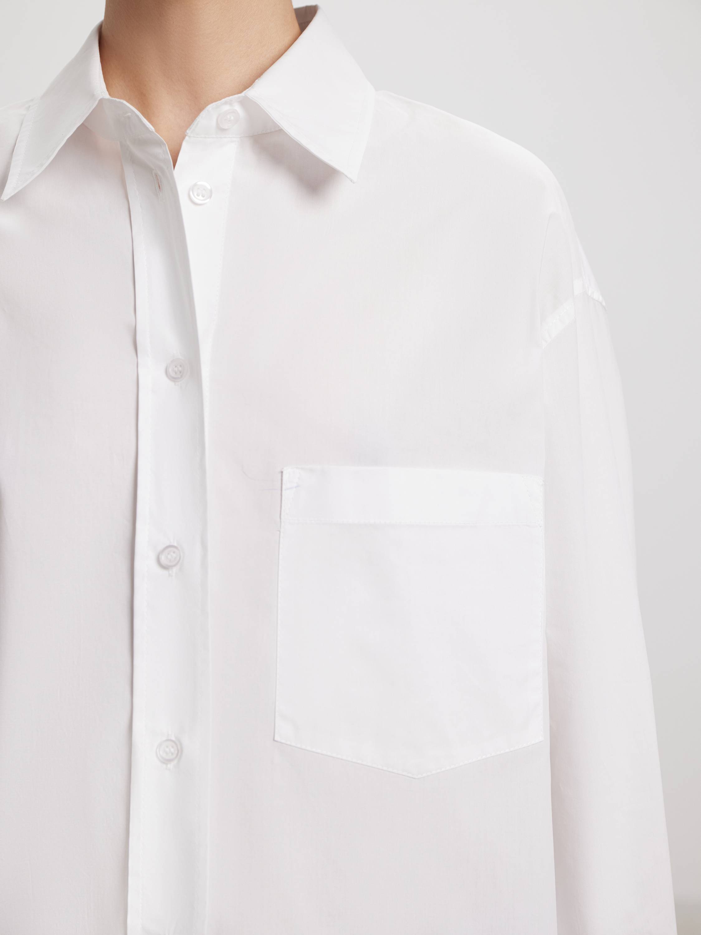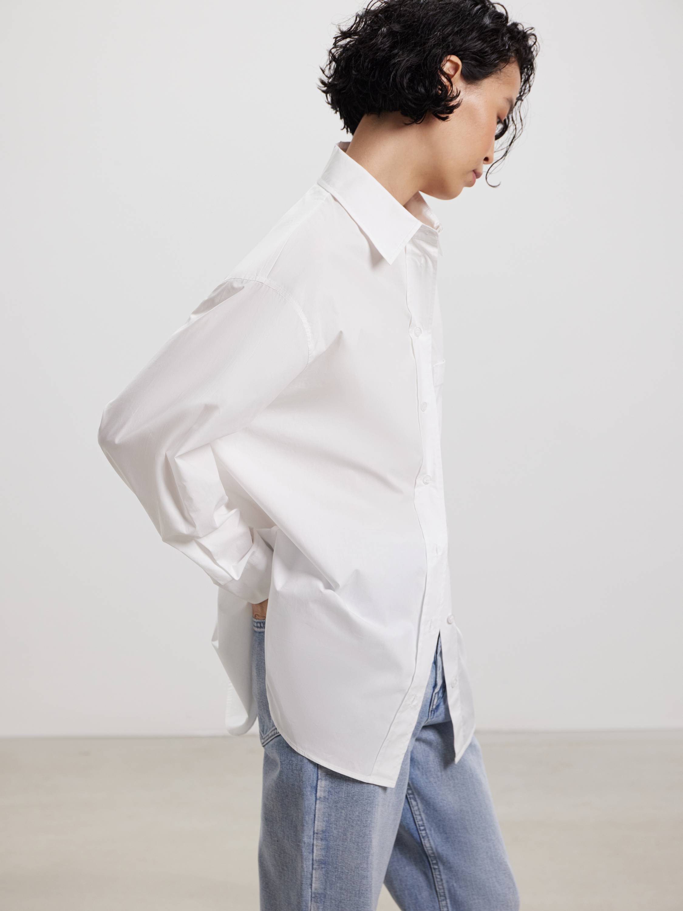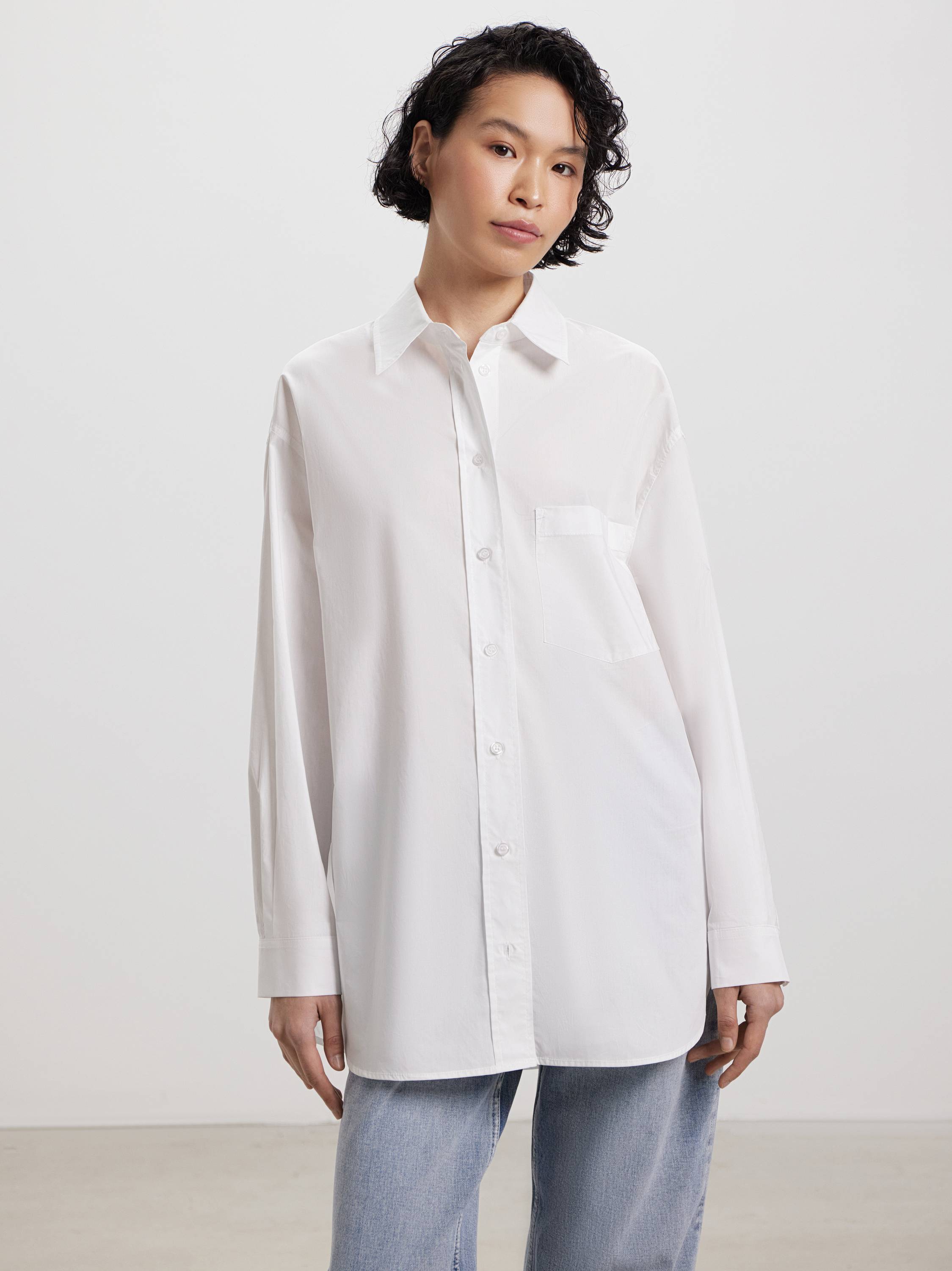 Рубашка свободного кроя из чистого хлопка — современная интерпретация классики с акцентом на комфорт и функциональность. Плотный, но мягкий материал дышит, приятно ощущается на теле и сохраняет аккуратный силуэт в течение дня. Отложной воротник и накладной карман на груди подчеркивают архитектуру модели, а заниженная линия плеч и закругленный низ добавляют расслабленного звучания. Это вещь, которая легко адаптируется под повседневный ритм: сочетайте с денимом, юбками-миди или костюмными брюками — образ получится сдержанным, но живым.