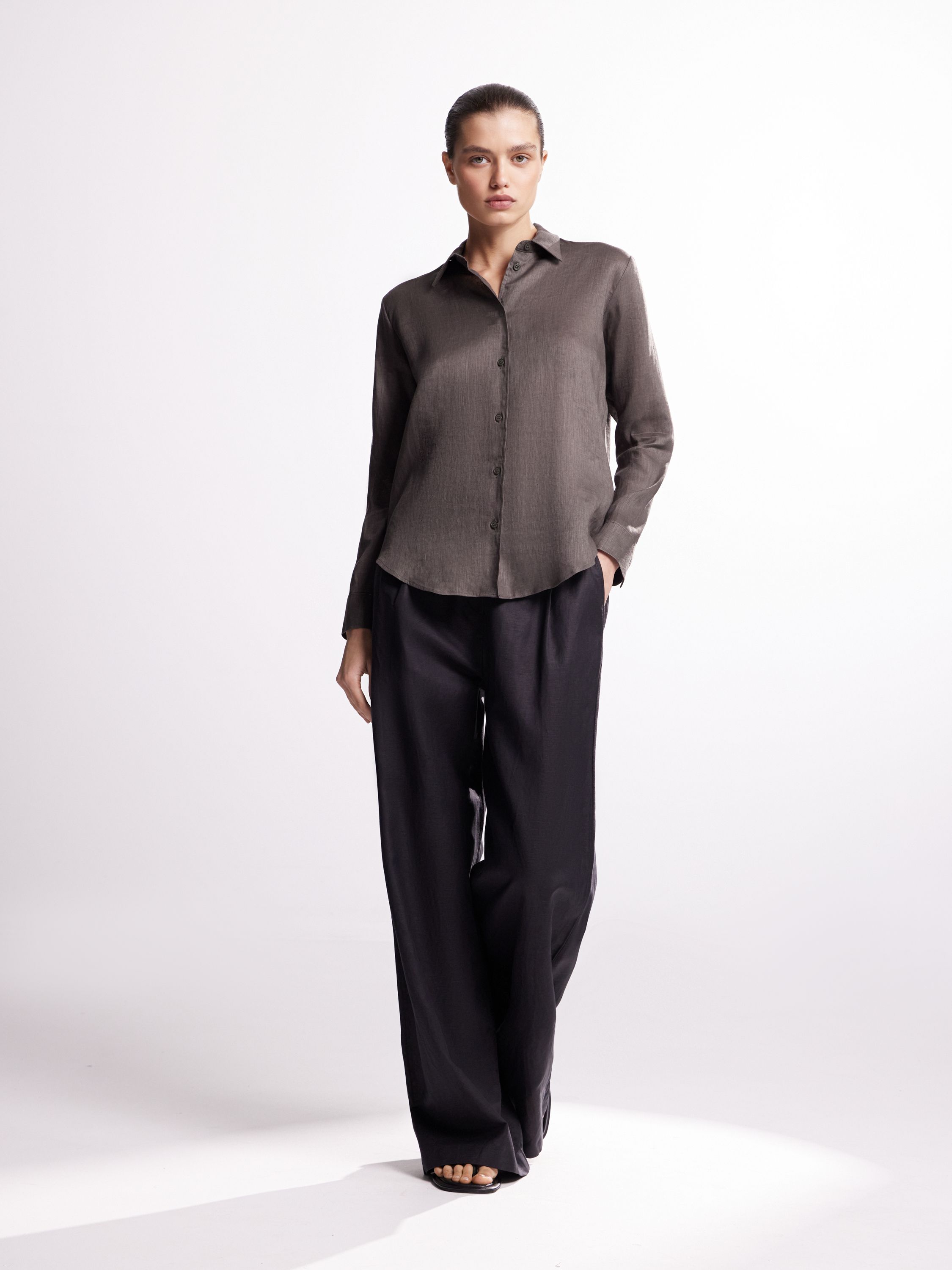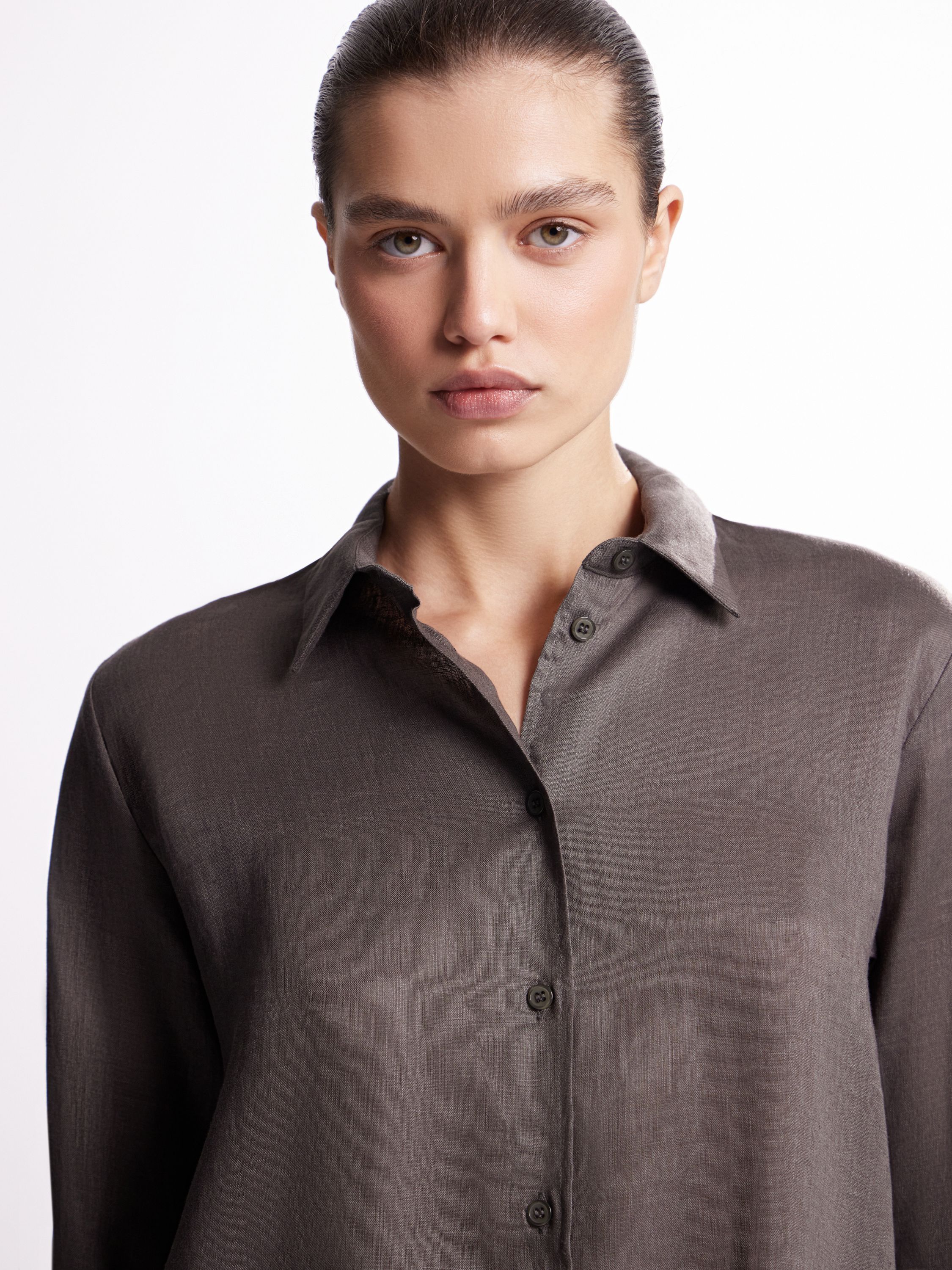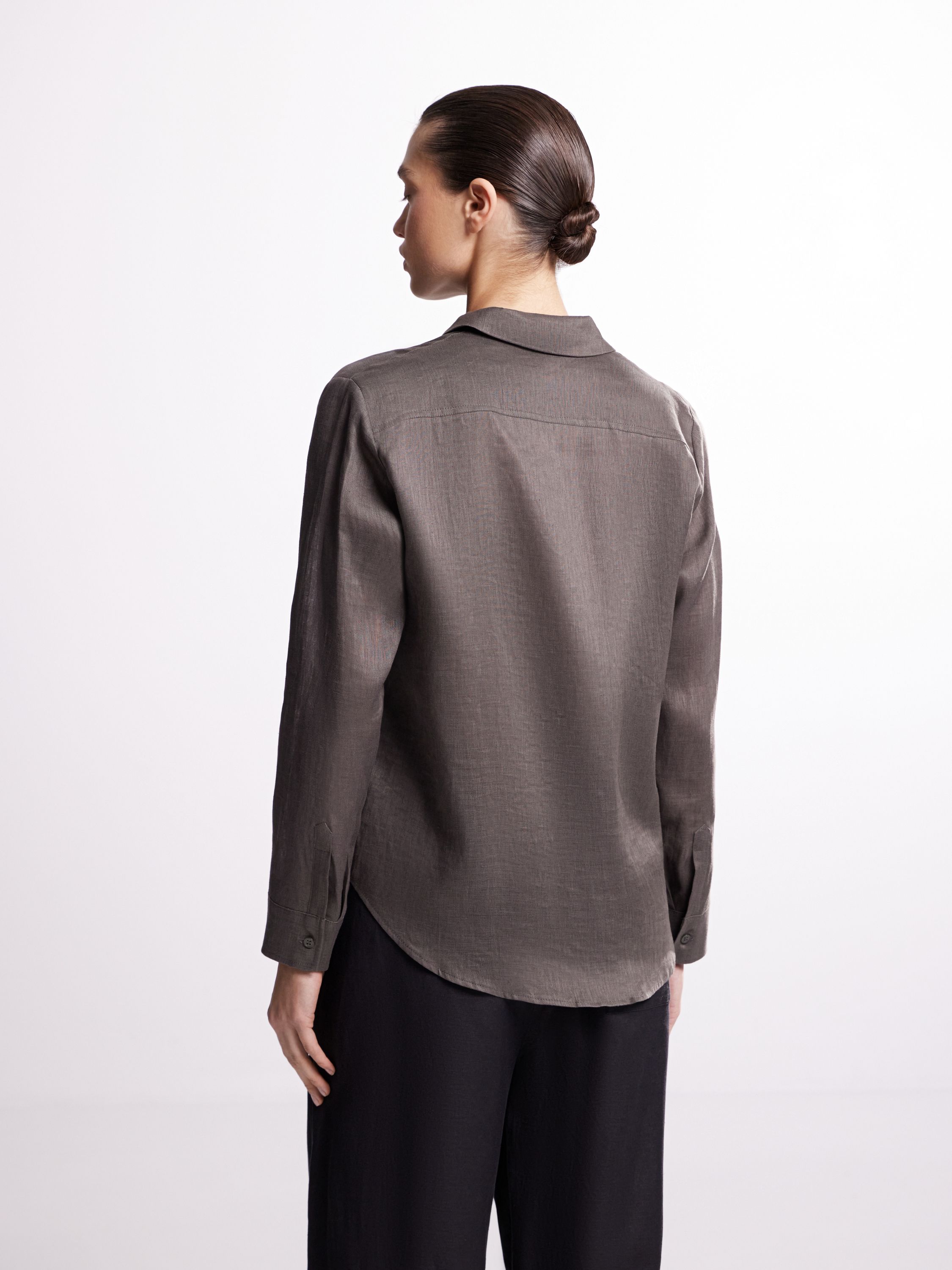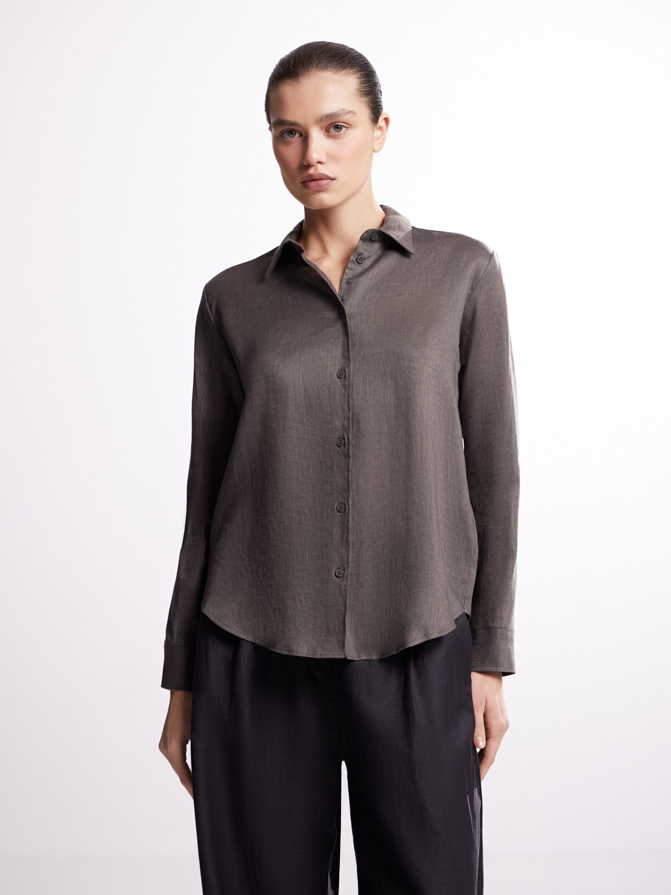 Классическая блуза изо льна — базовая вещь с летним характером. Легкая, дышащая, с мягко выраженной фактурой, она создает ощущение прохлады даже в жару. Прямой силуэт, отложной воротник и длинные рукава с манжетами формируют чистый, собранный образ без излишней строгости. Линия плеча чуть приспущена, а нижний край скруглен — это позволяет носить модель навыпуск или заправленной, адаптируя ее под разный стиль и ситуацию. В коллекции представлена в трех оттенках — акцентом цитрусовом, небесно-голубом и глубоком шоколадном. Каждый — самодостаточный, но легко сочетается с вещами нейтральной палитры.