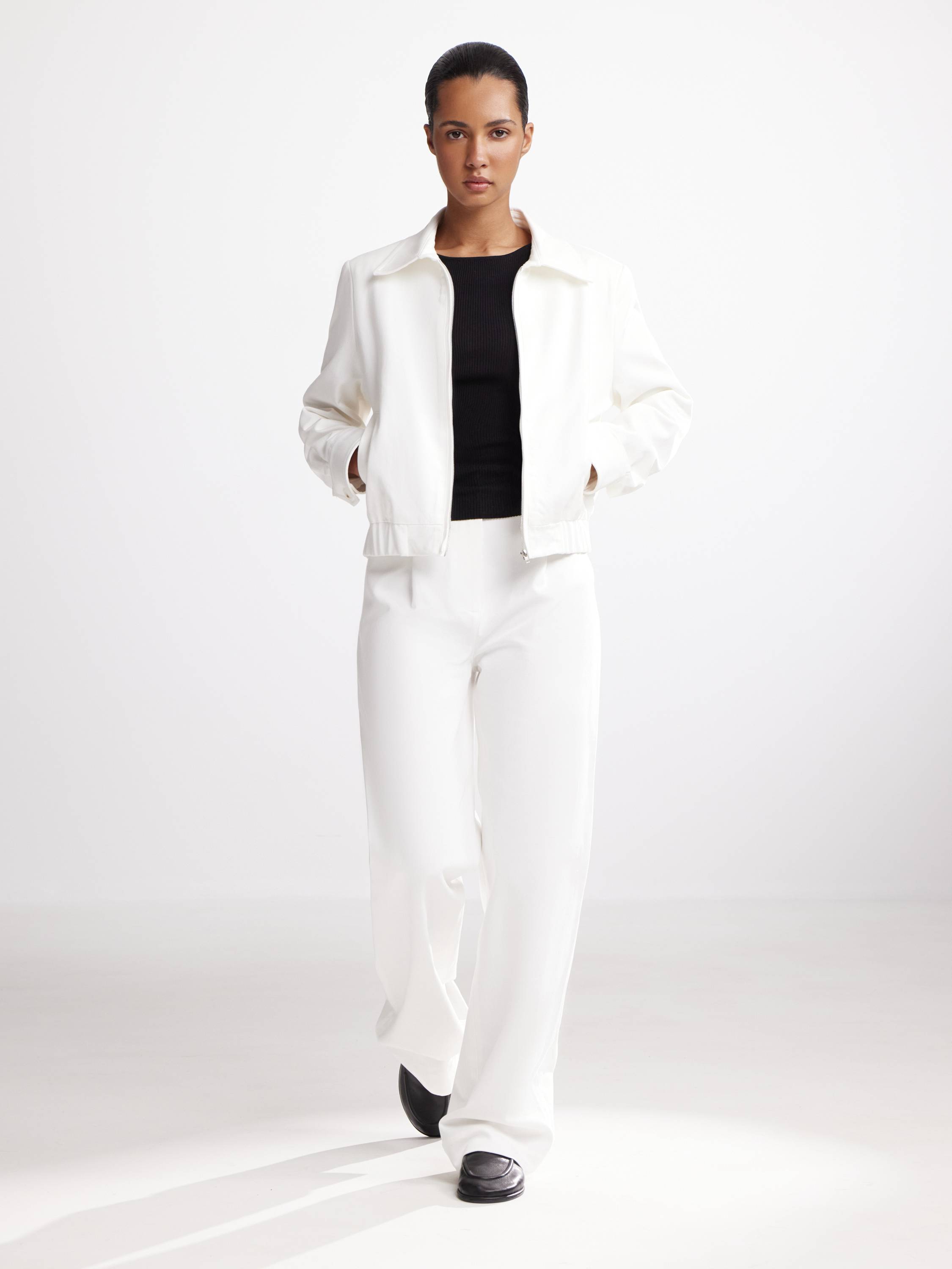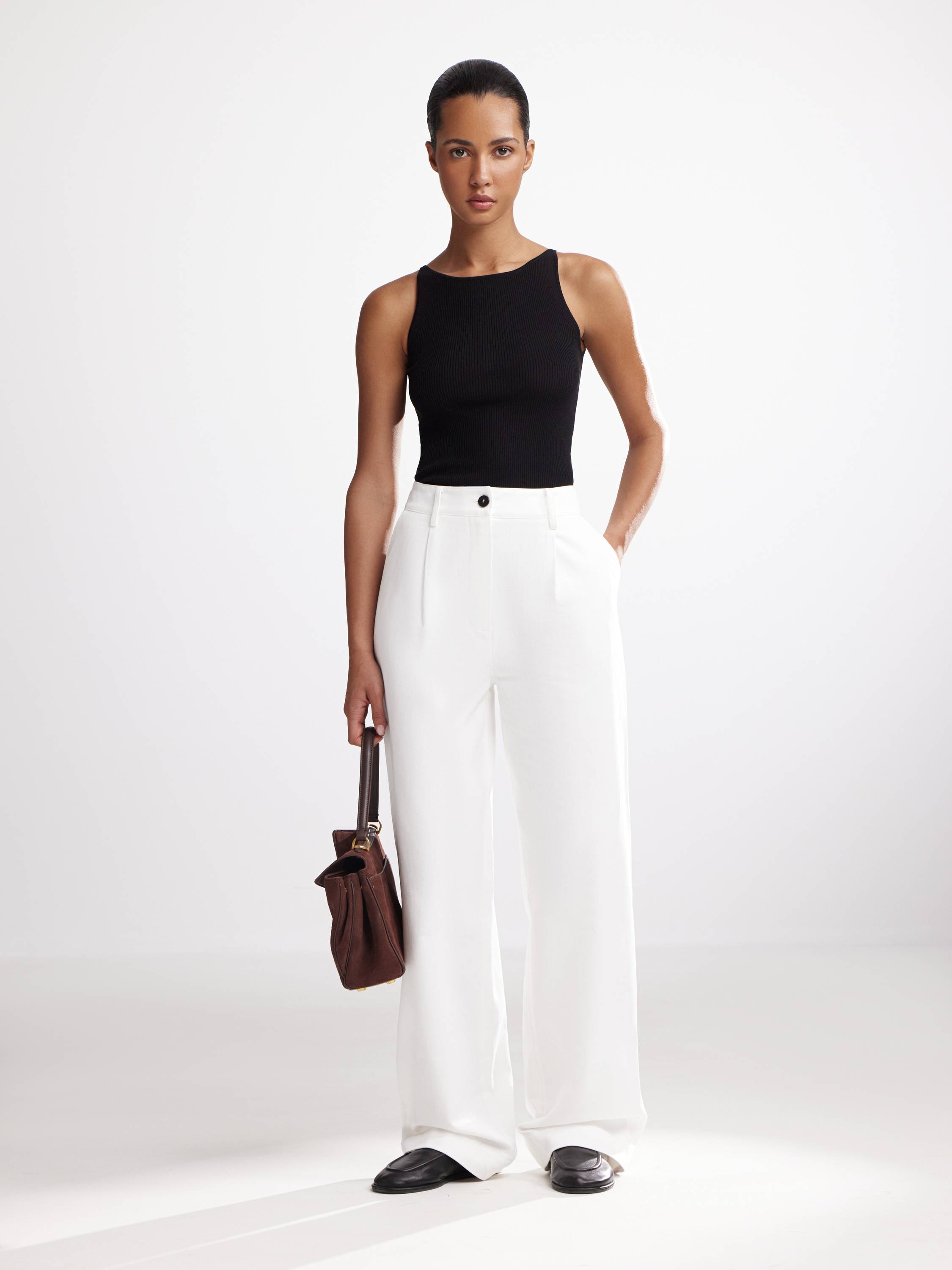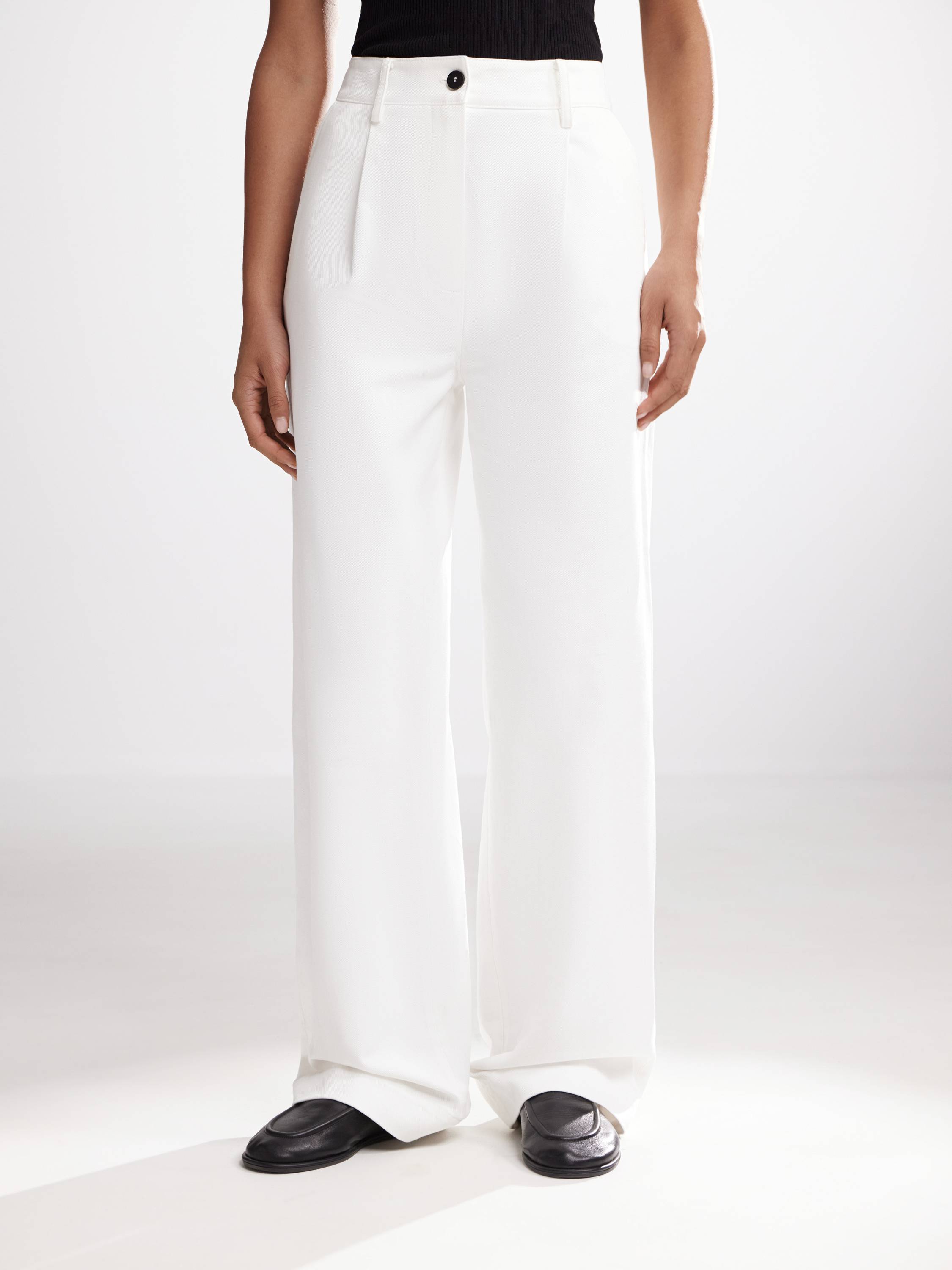 Прямые брюки из плотного хлопкового денима — лаконичная модель с собранным силуэтом и архитектурной чистотой линий. Материал отличается стабильной текстурой, приятен на ощупь и хорошо держит форму, при этом не теряя пластики в движении. Чистый молочный оттенок подчеркивает свежесть образа и делает акцент на фактуре ткани. Высокая посадка, аккуратные защипы и минималистичная конструкция с пятью карманами отсылают к классике, но читаются современно. Эта пара станет универсальной базой — и для городских образов в духе smart casual, и для расслабленных летних сочетаний с хлопковыми топами и кожаными минималистичными сандалиями.
