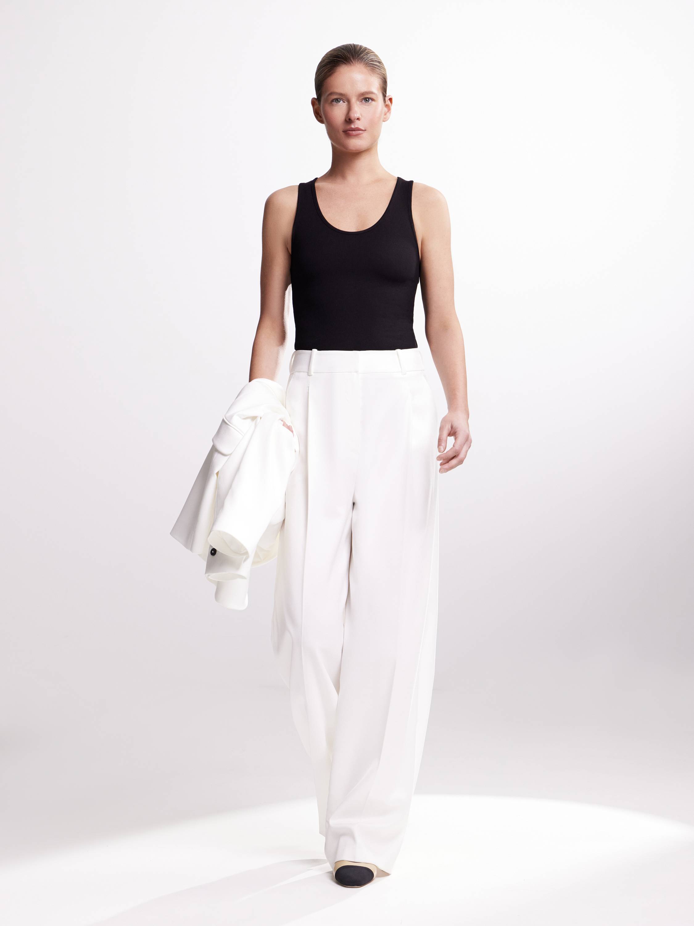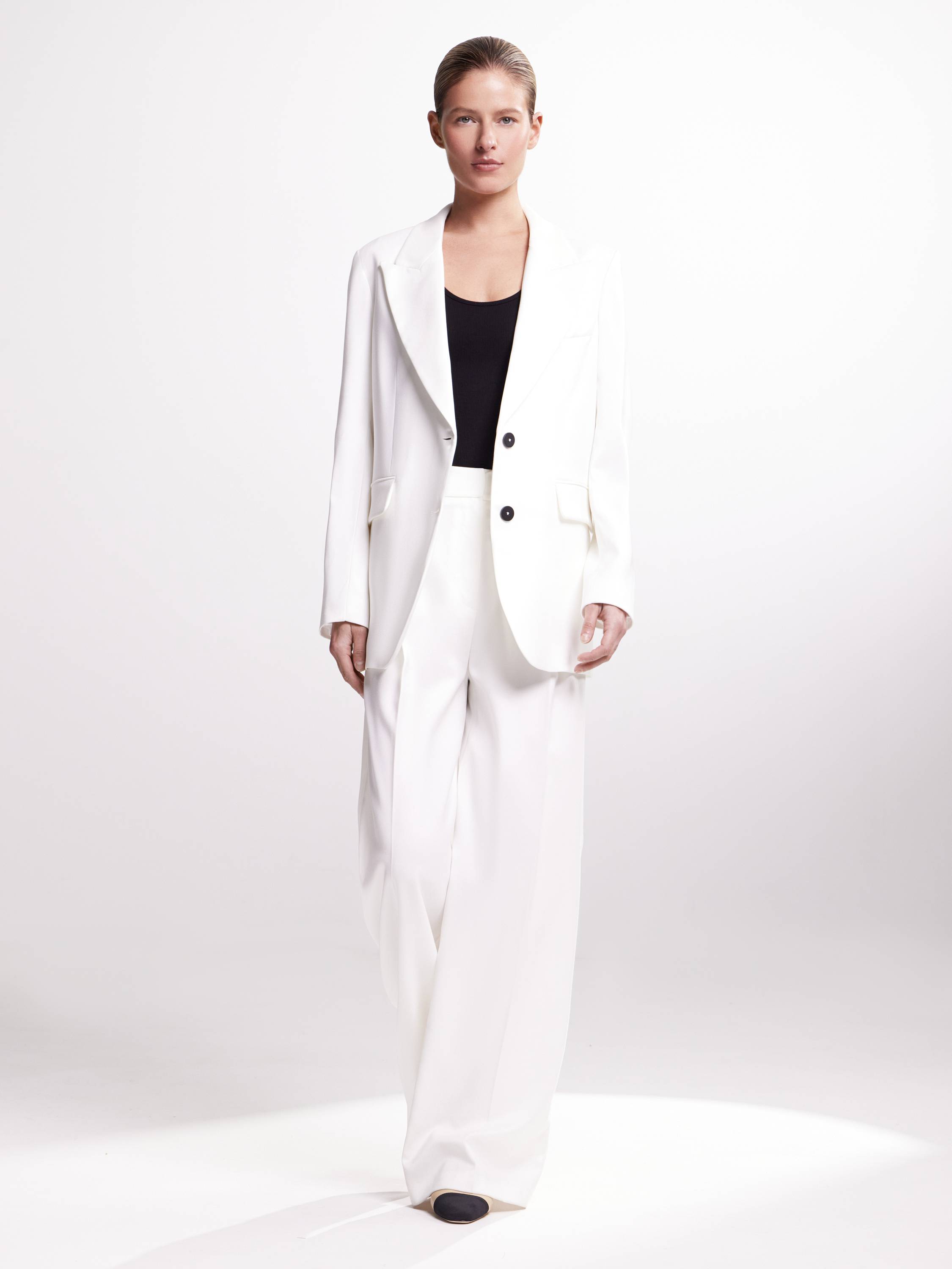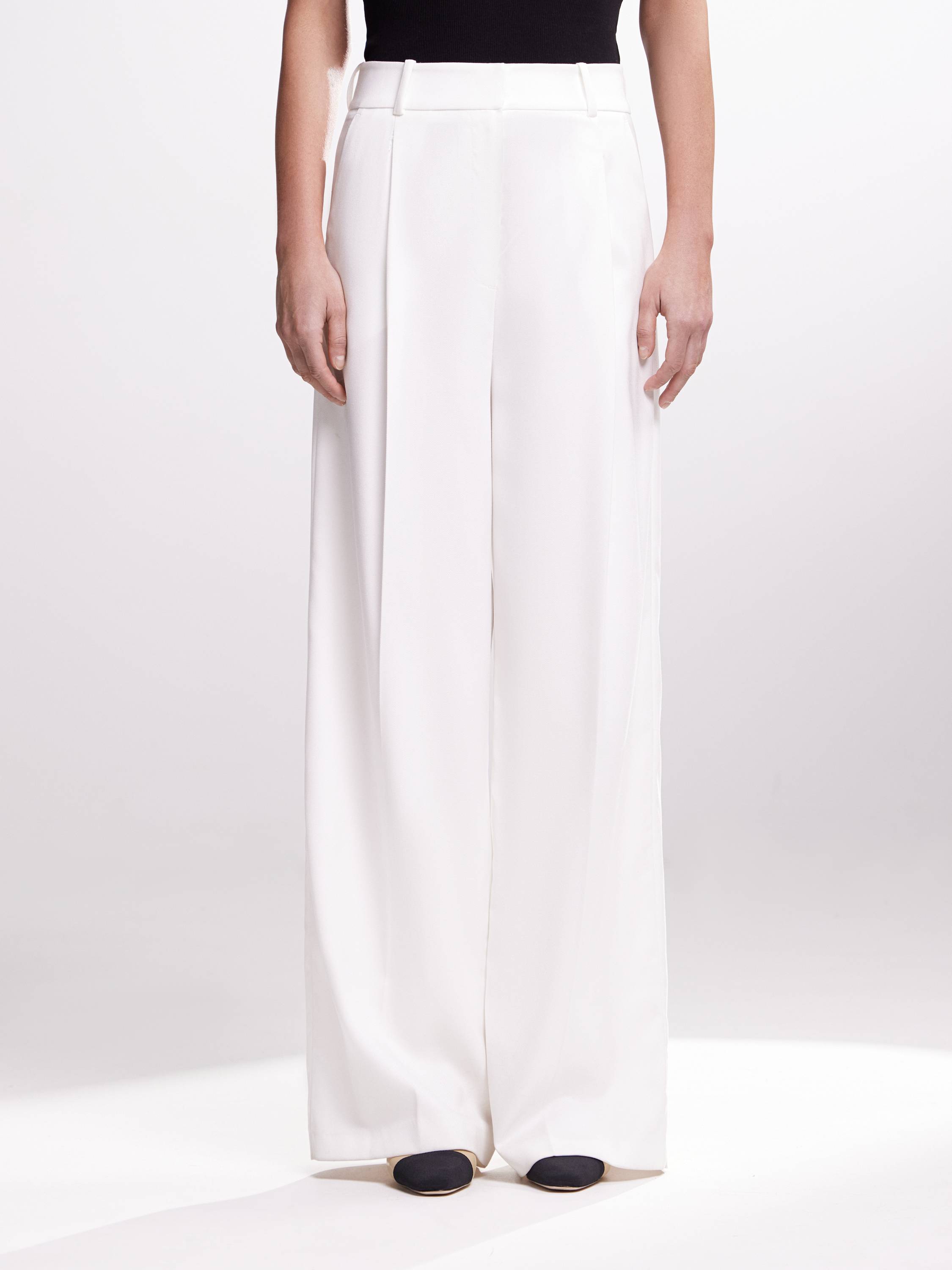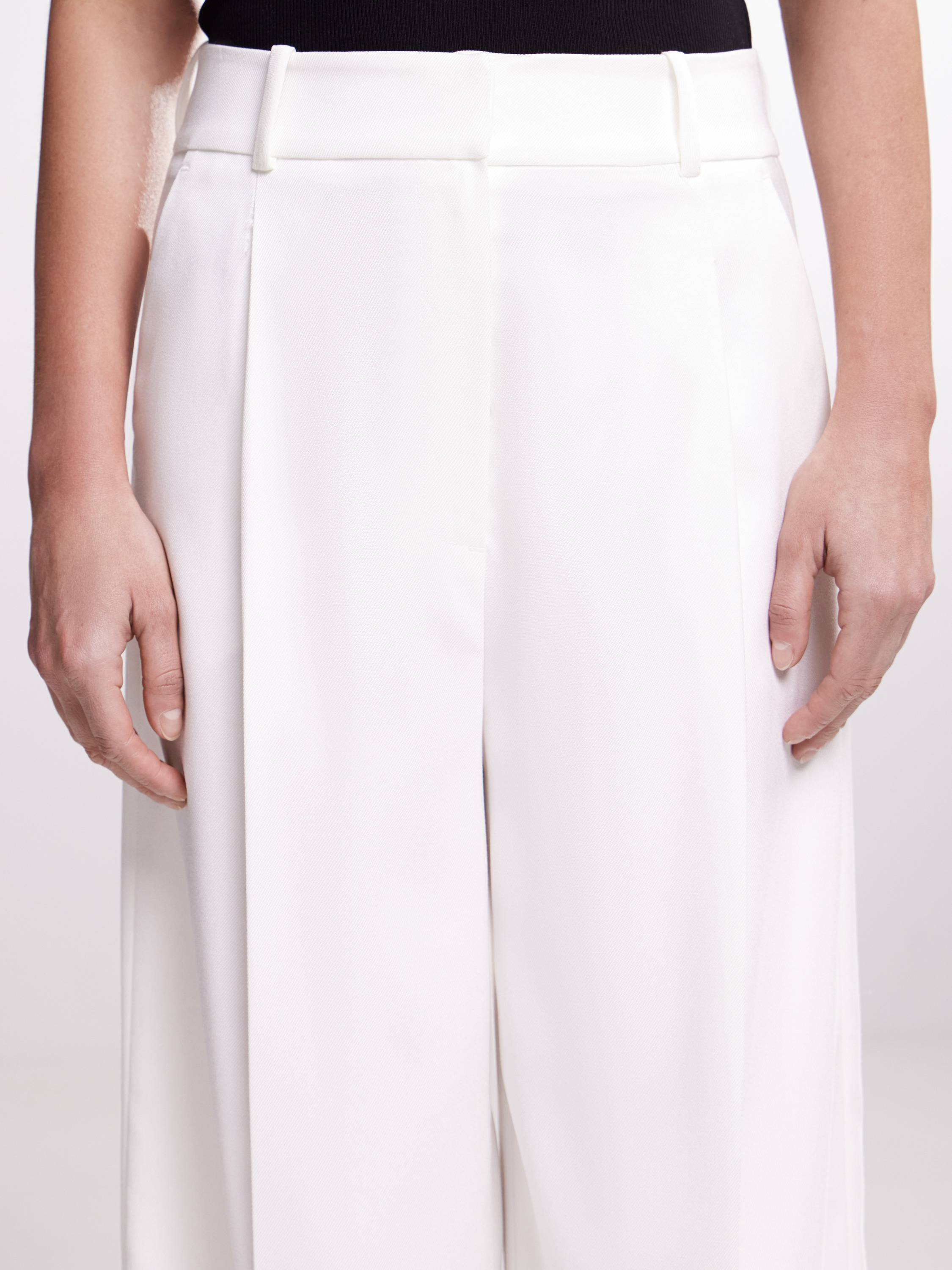 Брюки-палаццо с приталенным силуэтом — образец сдержанной элегантности, в которой сочетаются выверенная посадка и плавная архитектура линий. Выполненные из приятного на ощупь смесового полотна, они мягко облегают талию, подчеркивая изгибы, и свободно ниспадают к низу, создавая изящную вертикаль. Материал держит форму, не теряя при этом пластичности — за счет чего силуэт получается и четким, и живым. Застроченные стрелки визуально удлиняют ноги. Брюки можно вписать как в строгий комплект с жакетом, так и в более расслабленный образ с топом или жилетом. Идеальны для тех, кто ценит одежду, подчеркивающую фигуру, не прибегая к обтягивающим формам.