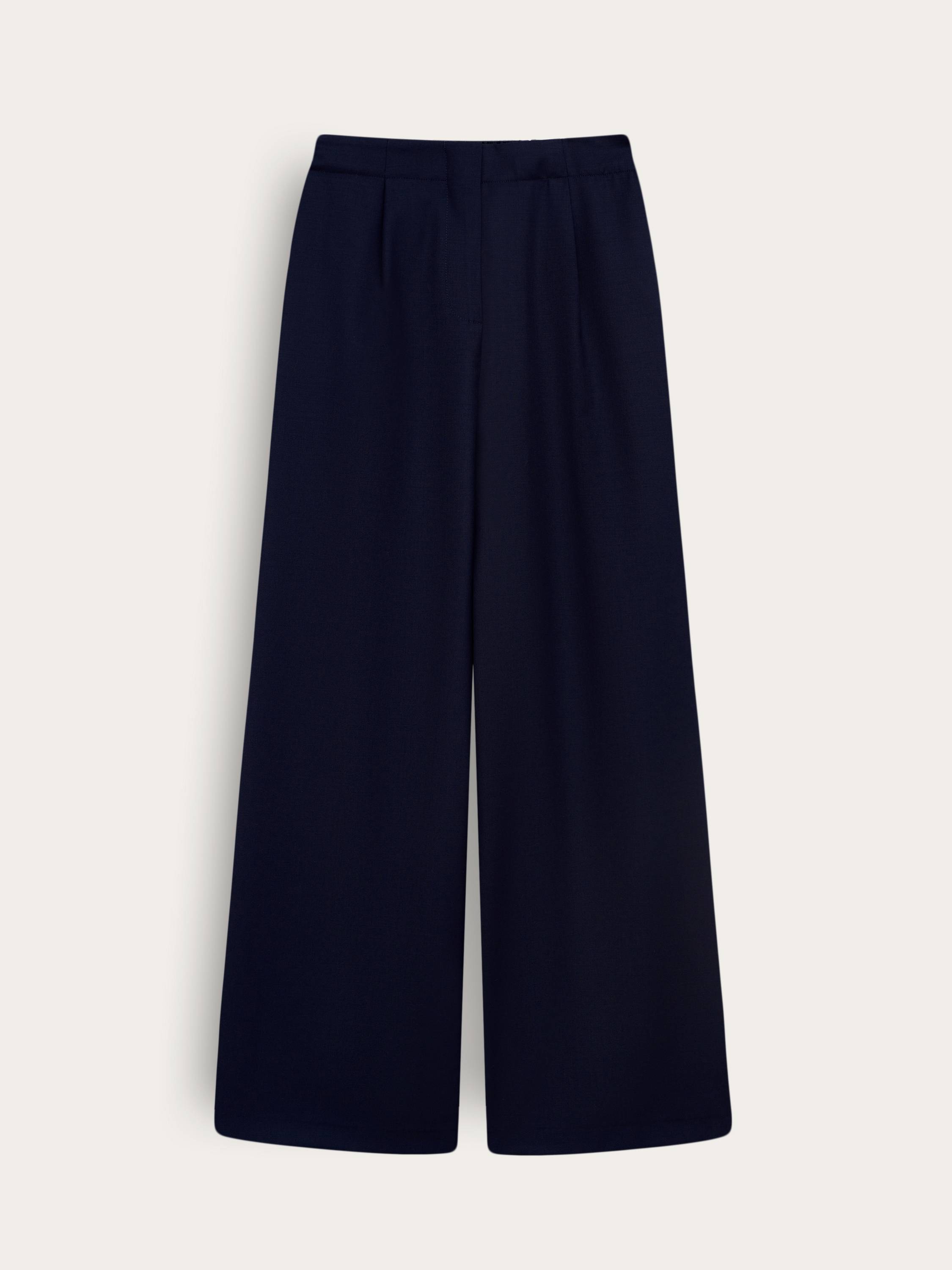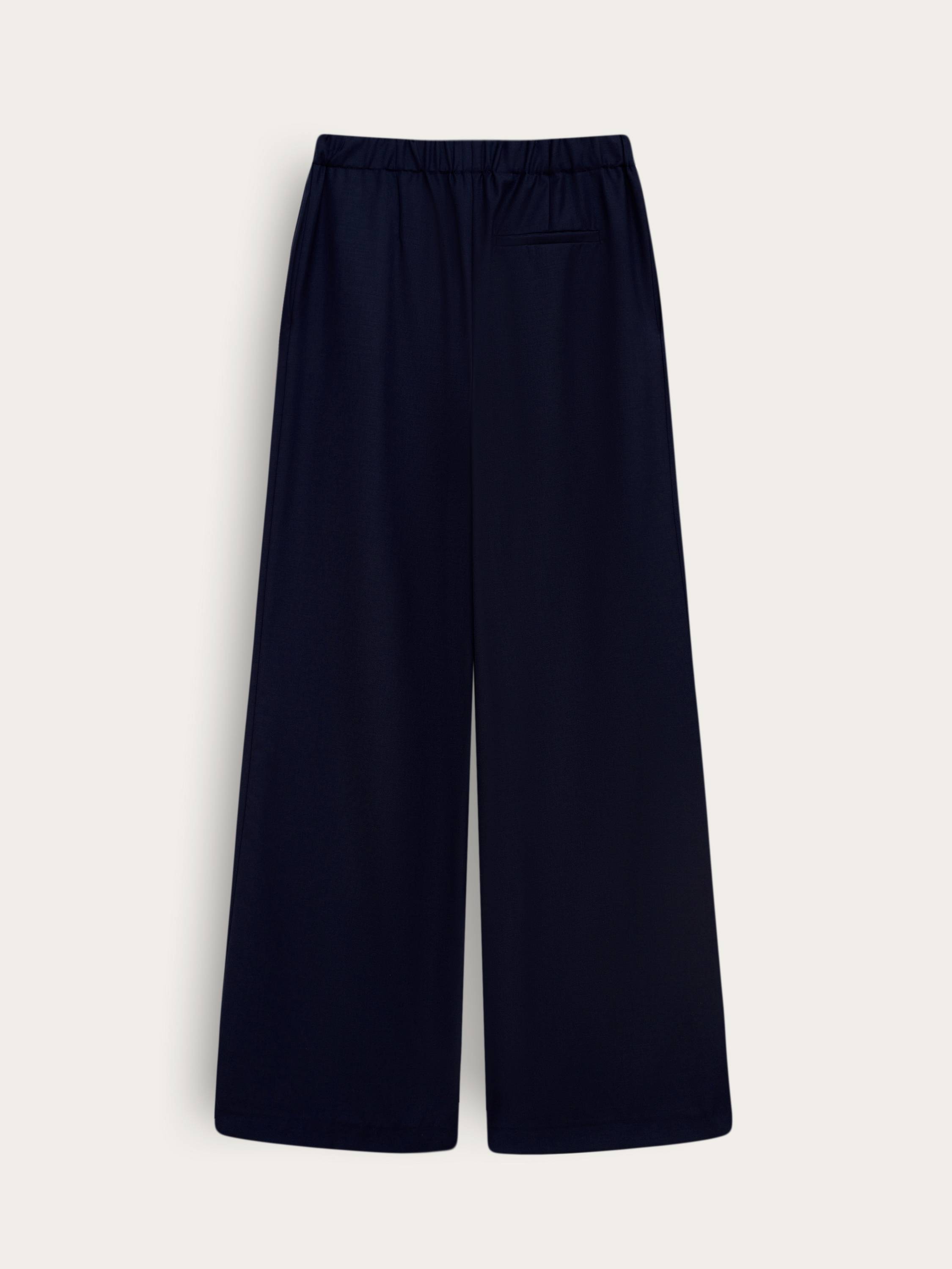 Брюки из смесовой шерсти в насыщенном темно-синем оттенке — универсальная основа гардероба с акцентом на комфорт и выверенный силуэт. Материал с добавлением полиэстера сочетает в себе мягкость и фактурность шерсти с практичностью и износостойкостью синтетических волокон. Свободная посадка, эластичная вставка на спинке пояса и стрелки спереди формируют образ, уравновешенный между строгостью и расслабленностью. Чистые линии, скрытая застежка и минималистичное исполнение делают эту модель подходящей как для повседневных комплектов, так и для более собранных образов в стиле smart casual.