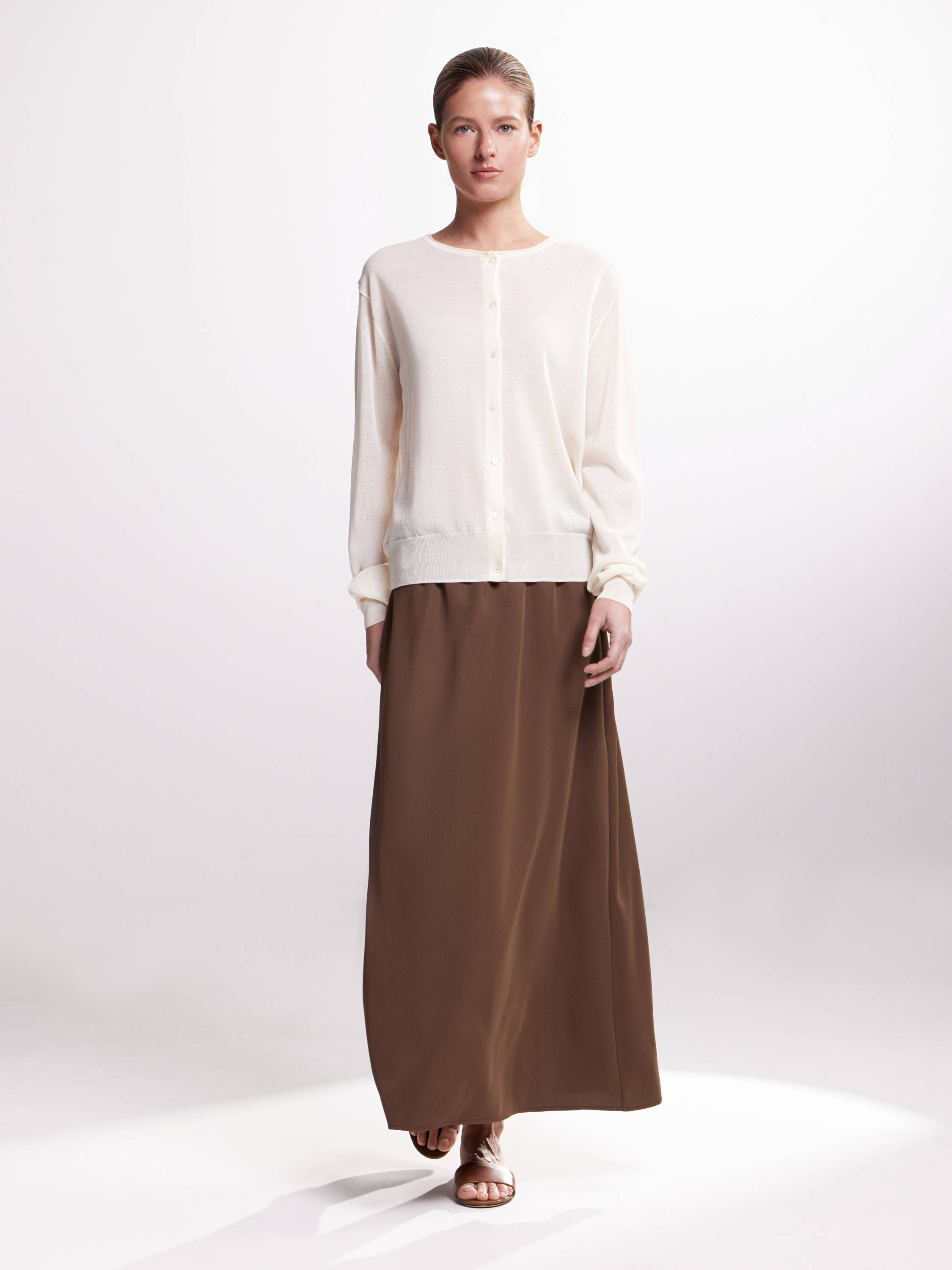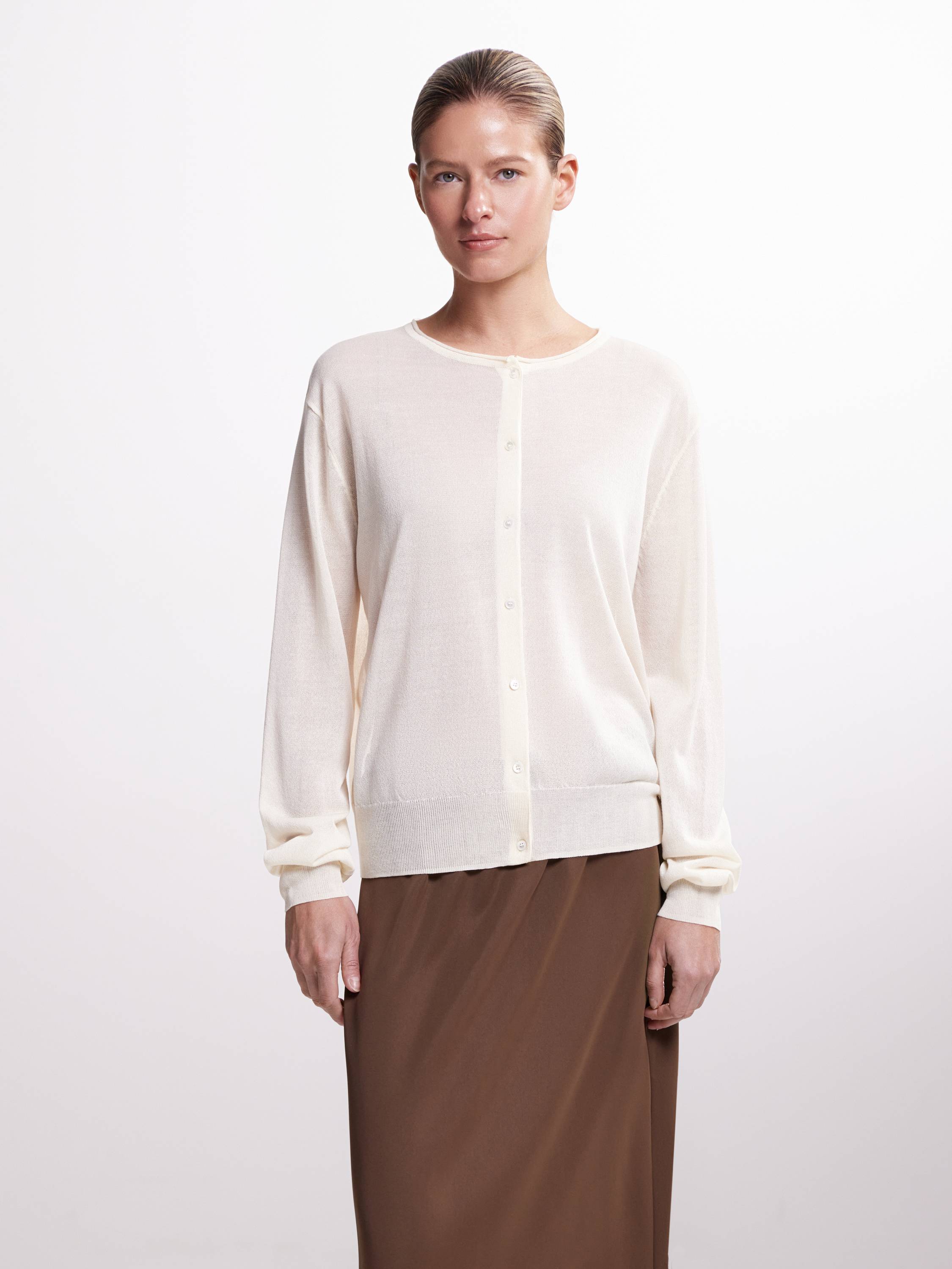 Полупрозрачный кардиган из тонкого трикотажа — воздушный и универсальный. Прямой крой с мягкой линией плеч создает расслабленный силуэт, а широкая планка и аккуратные пуговицы делают образ собранным. Полотно на основе лиоцелла приятно к телу, дышит и красиво драпируется, подчеркивая текучесть движения. Модель представлена в двух оттенках — насыщенном темно-синем и выразительном красном. Такой кардиган можно носить как самостоятельно, так и в составе многослойных летних образов.