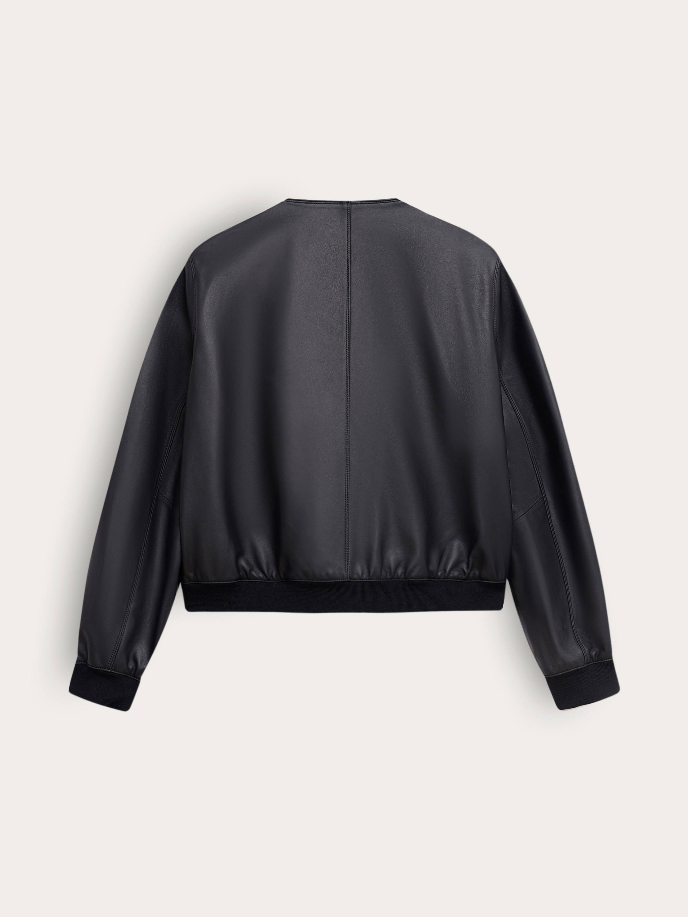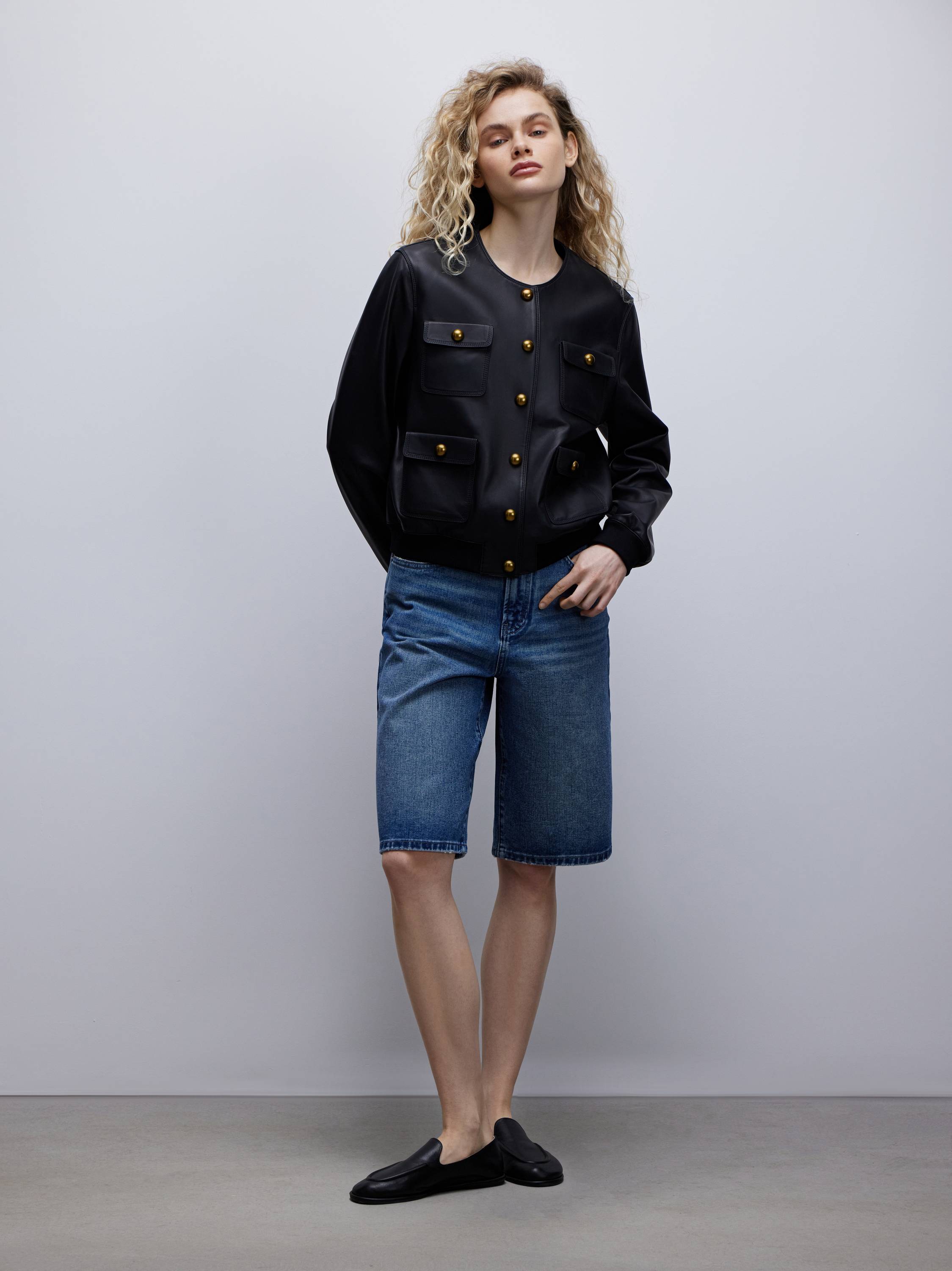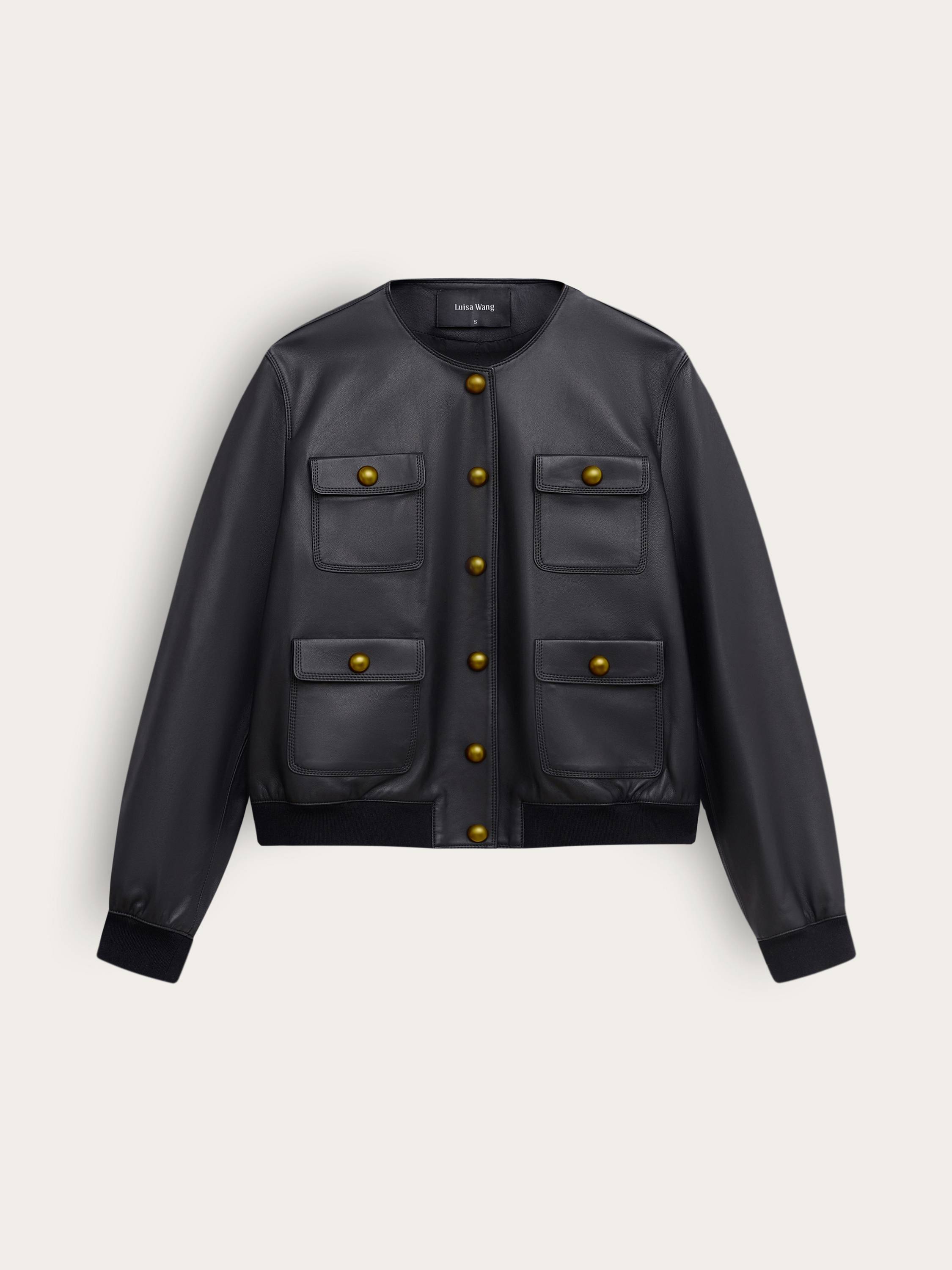 Куртка из 100% натуральной кожи в стиле современной классики. Матовая поверхность с едва уловимым блеском подчеркивает графику кроя и делает акцент на четкости линий. Модель выполнена в лаконичном силуэте без воротника, с округлым вырезом и золотистой фурнитурой, которая придает образу нотки элегантности. Четыре накладных кармана с винтажным акцентом создают сдержанную геометрию и при этом делают вещь практичной. Эластичные манжеты и низ обеспечивают комфортную посадку и мягко структурируют форму. Такая модель работает как самостоятельный акцент и органично вписывается в любой повседневный гардероб.