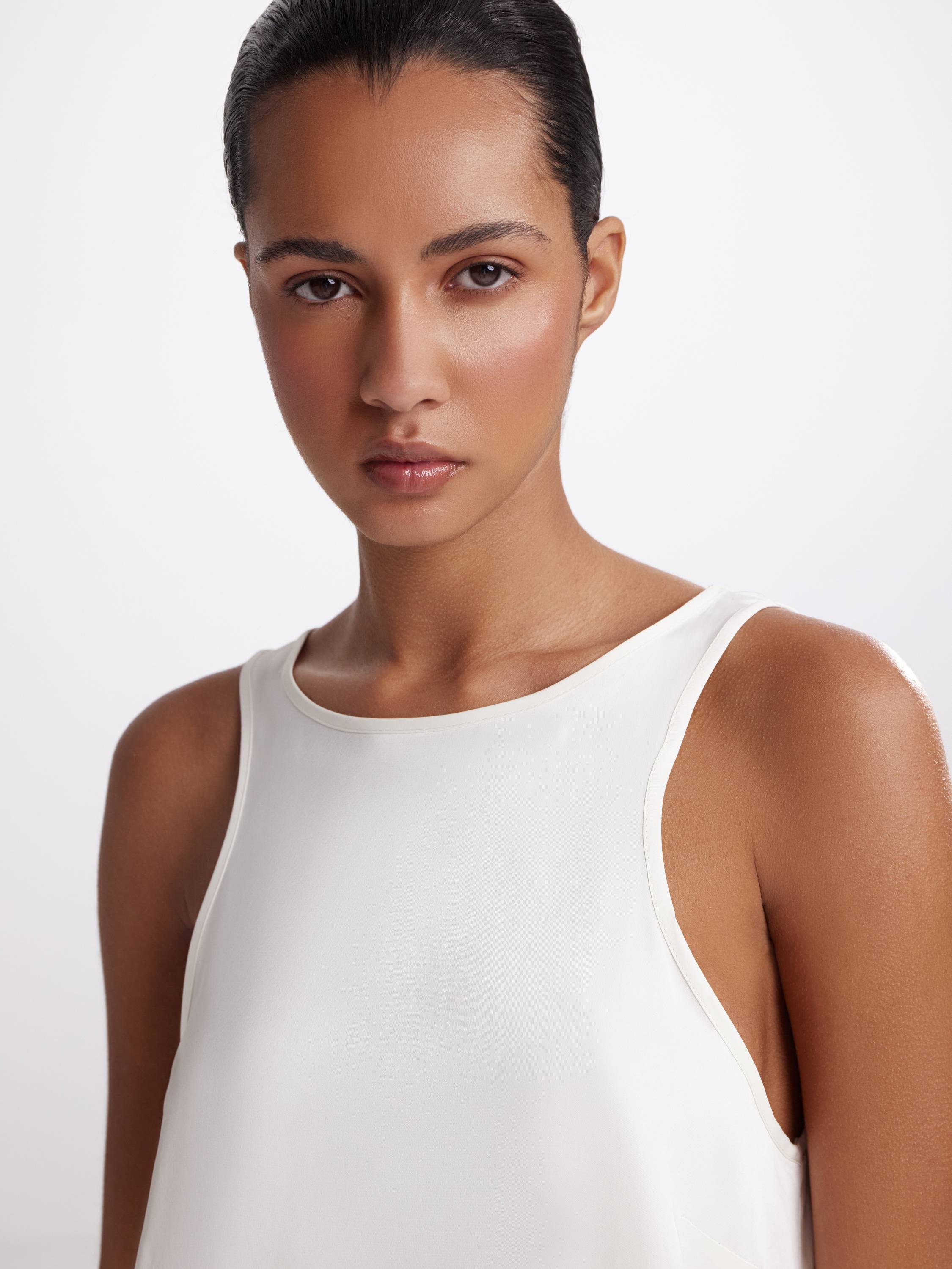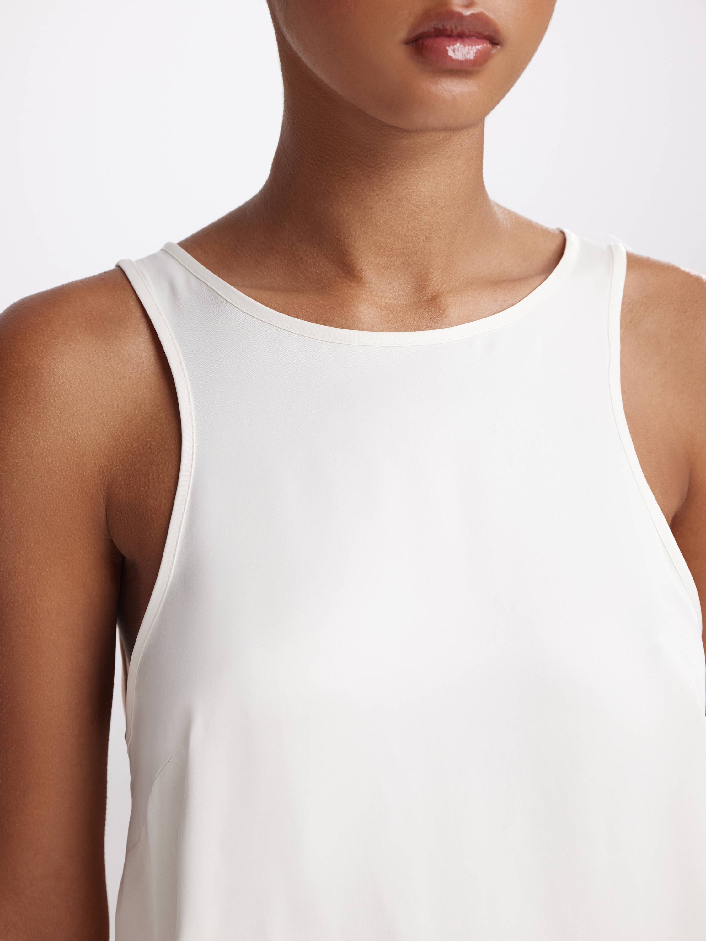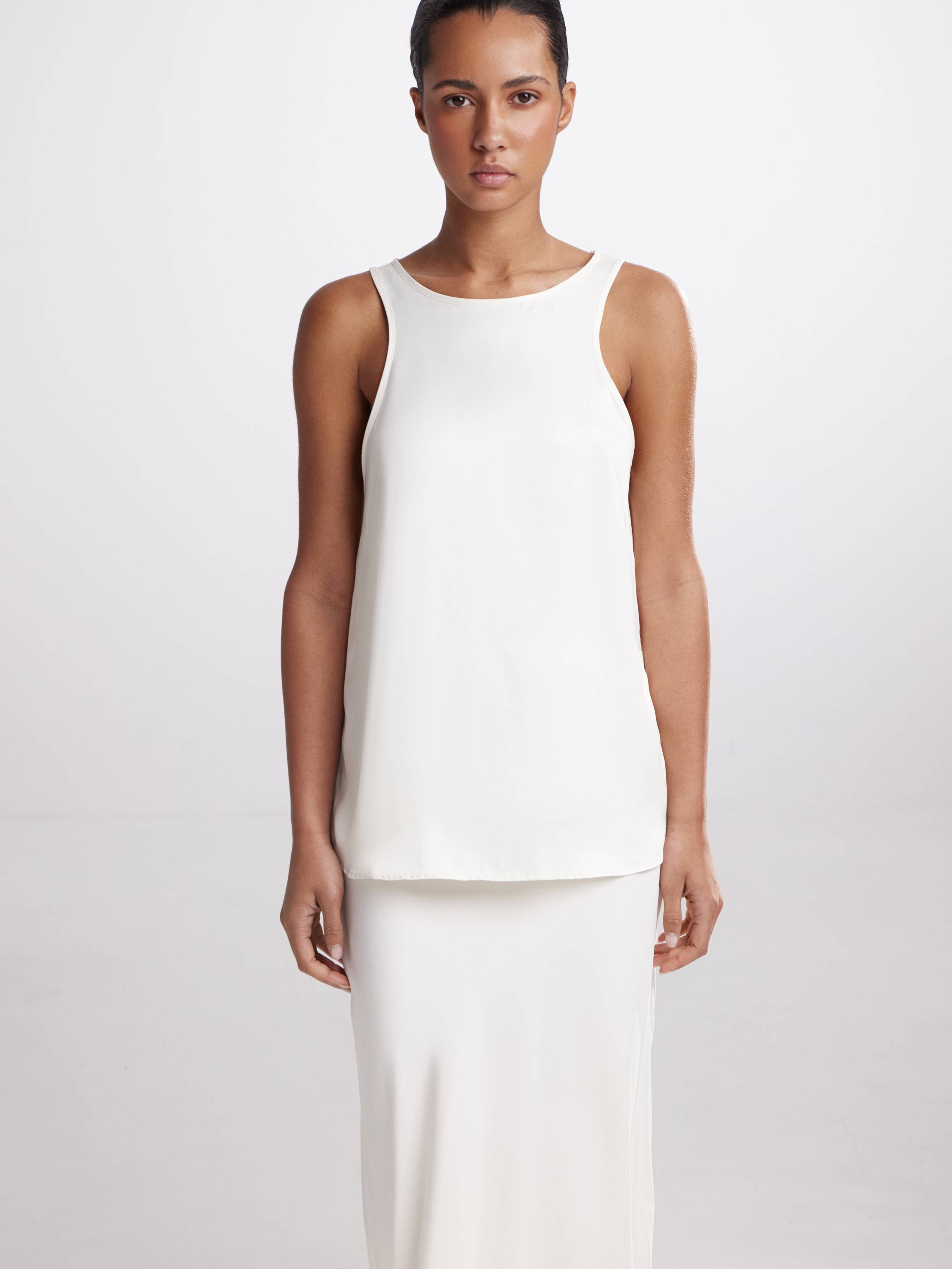 Минималистичный топ из 100% района — это пример продуманной лаконичности, где каждая деталь работает на эстетику движения и комфорта. Материал обладает шелковистой поверхностью и характерным мягким блеском, который придает образу утонченность без излишнего нарочитого сияния. Район дарит прохладу в жаркую погоду, приятно ложится по телу и деликатно повторяет силуэт. Округлый вырез и открытые плечи создают чистую геометрию верха, а слегка удлиненный задний край добавляет динамики. Универсальные оттенки усиливают выразительность формы и делает топ функциональной основой для дневных и вечерних комплектов.