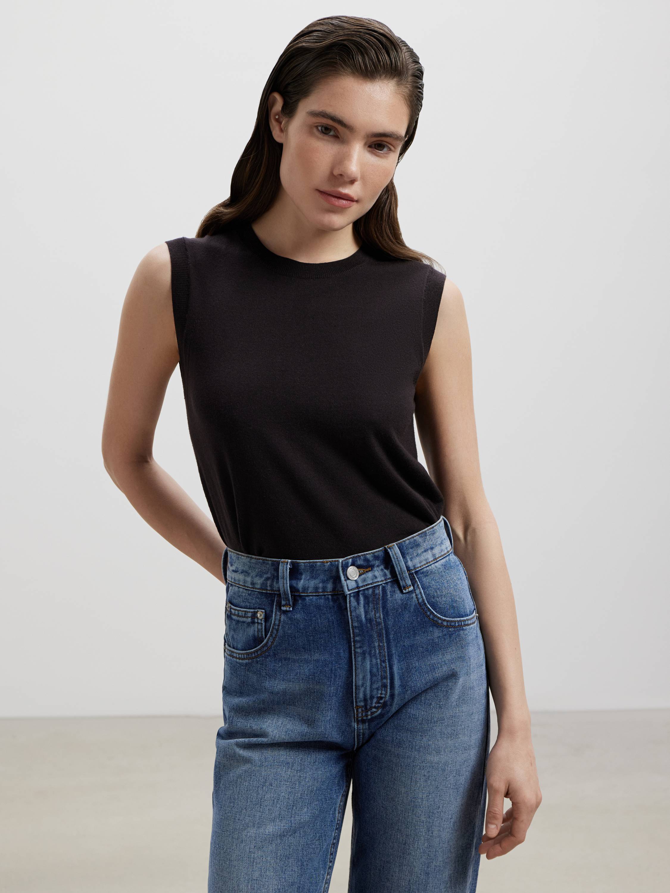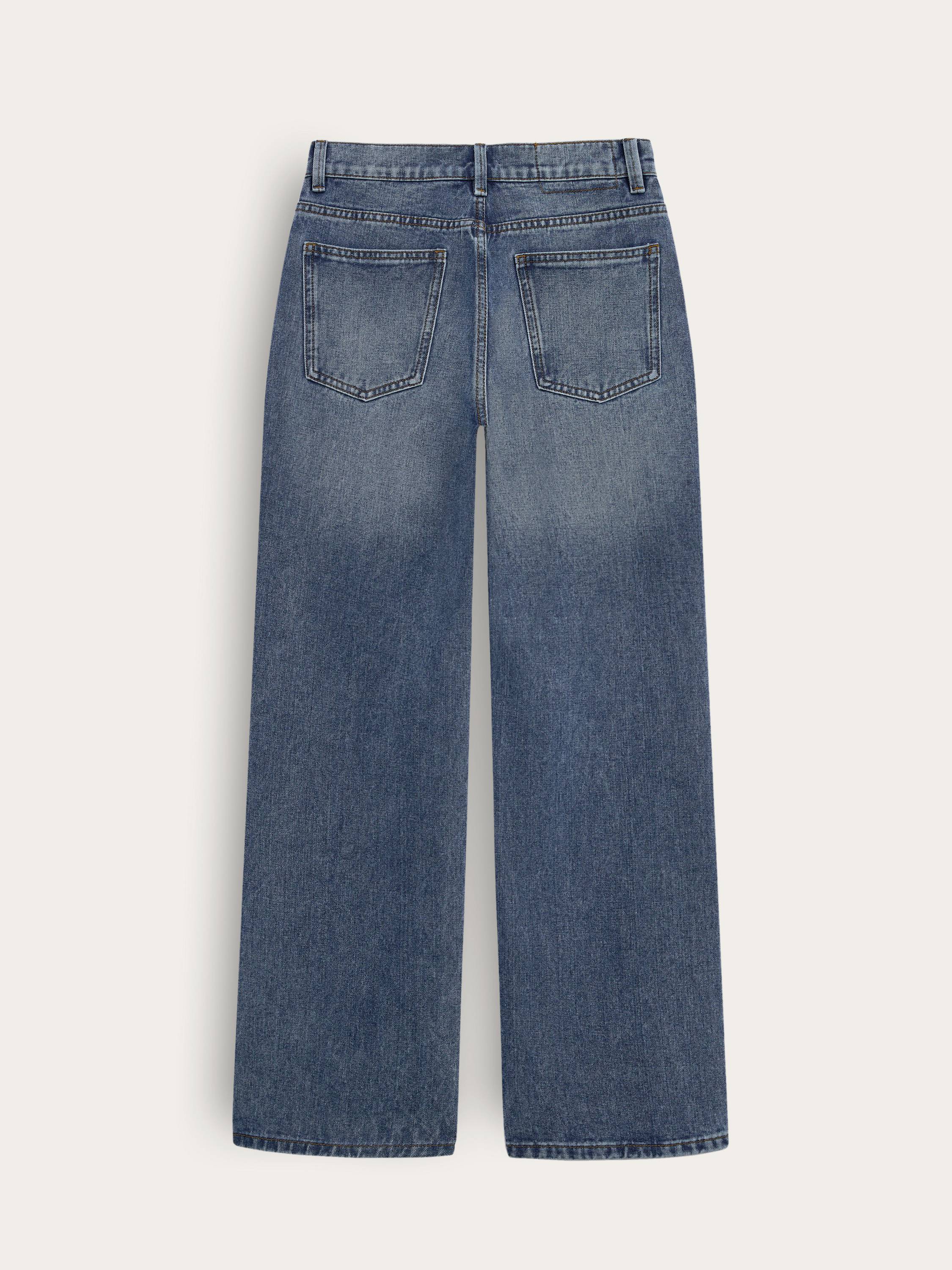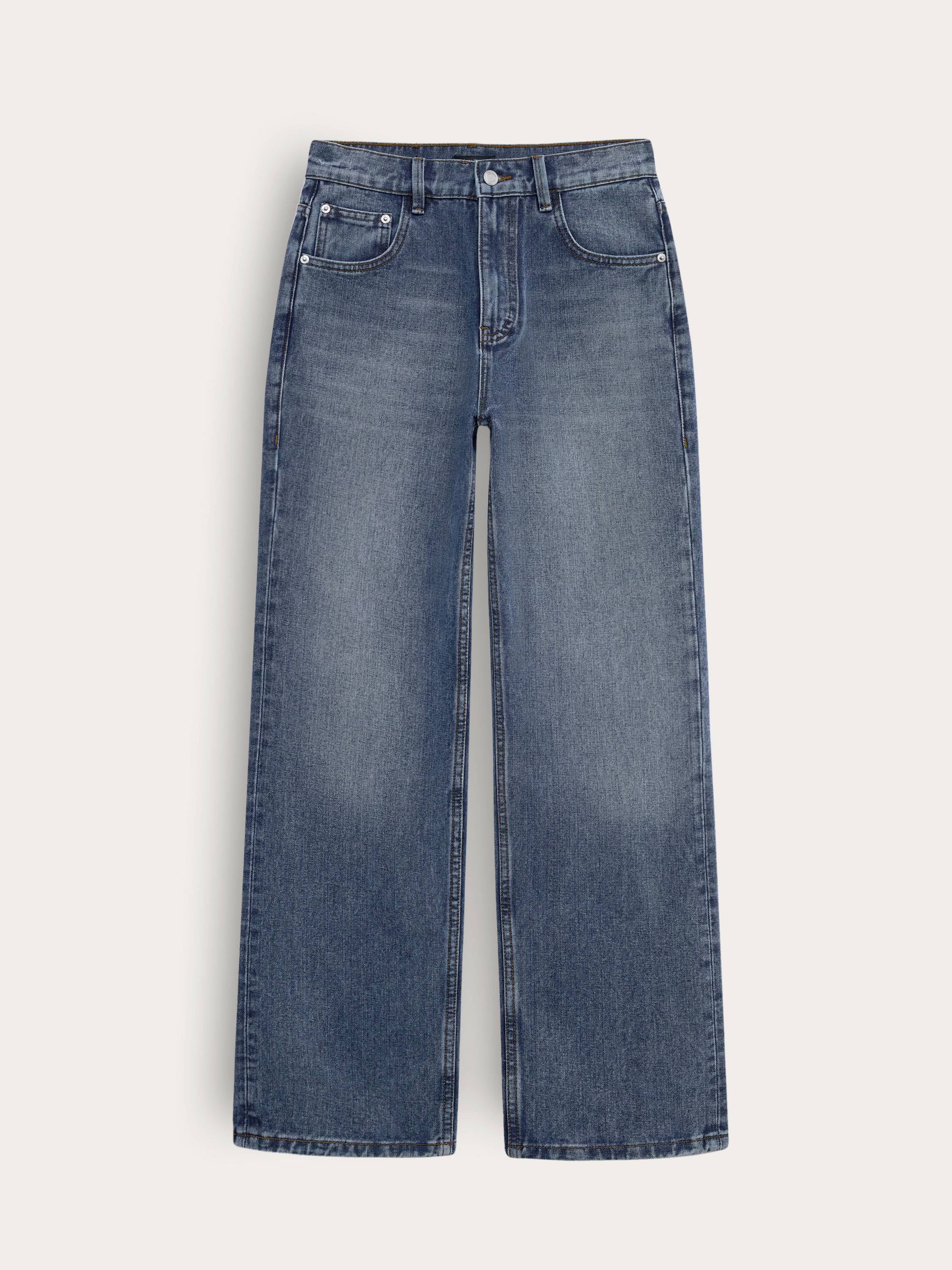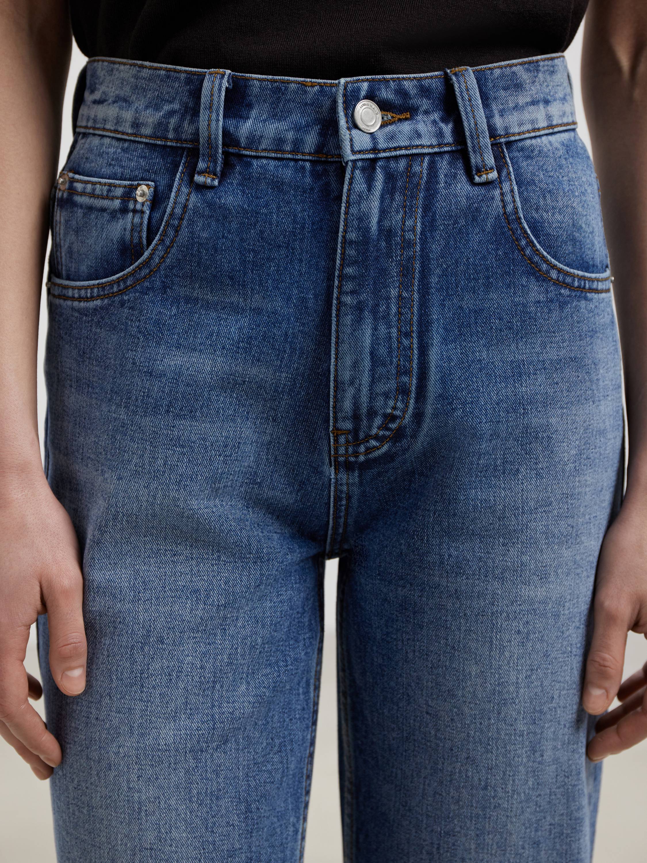 Джинсы из плотного денима с прямым силуэтом и высокой посадкой. Материал — смесовое хлопковое полотно: дышит, держит форму, со временем адаптируется к фигуре. Классическая посадка на талии визуально удлиняет ноги и подчеркивает линию бедер, а прямой крой создает сбалансированный силуэт без акцента на объеме. Аккуратные шлевки, потайная застежка на молнию и металлическая пуговица — в лучших традициях денима. Темно-синий оттенок с эффектом легкой выварки универсален: его легко сочетать как с белой рубашкой и лоферами, так и с базовым трикотажем и сандалиями. Незаменимая пара на каждый день — для тех, кто ценит конструктивную простоту и утонченную лаконичность.