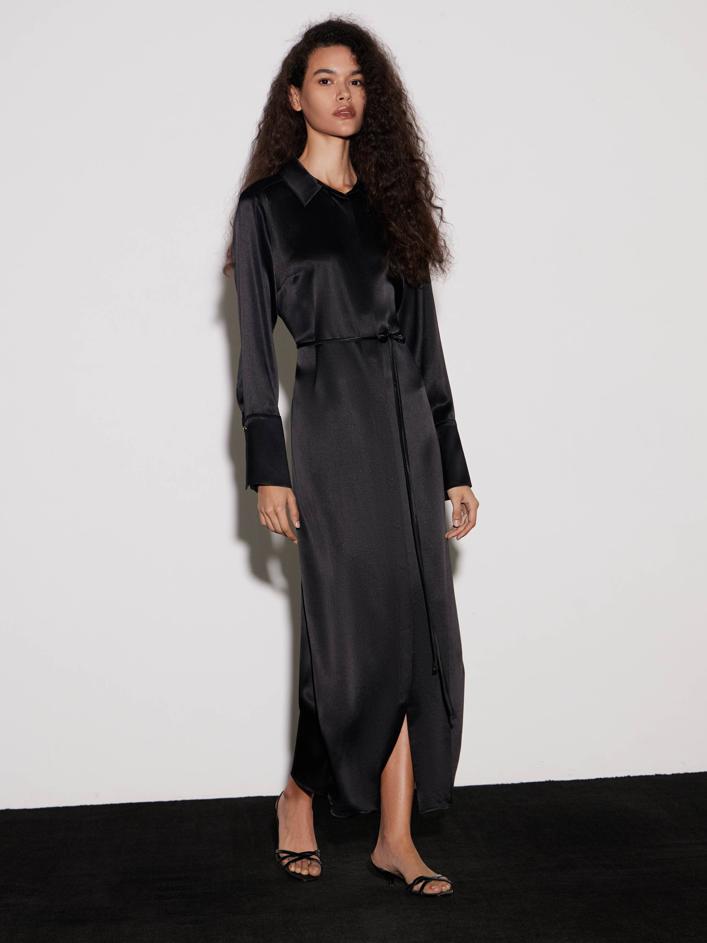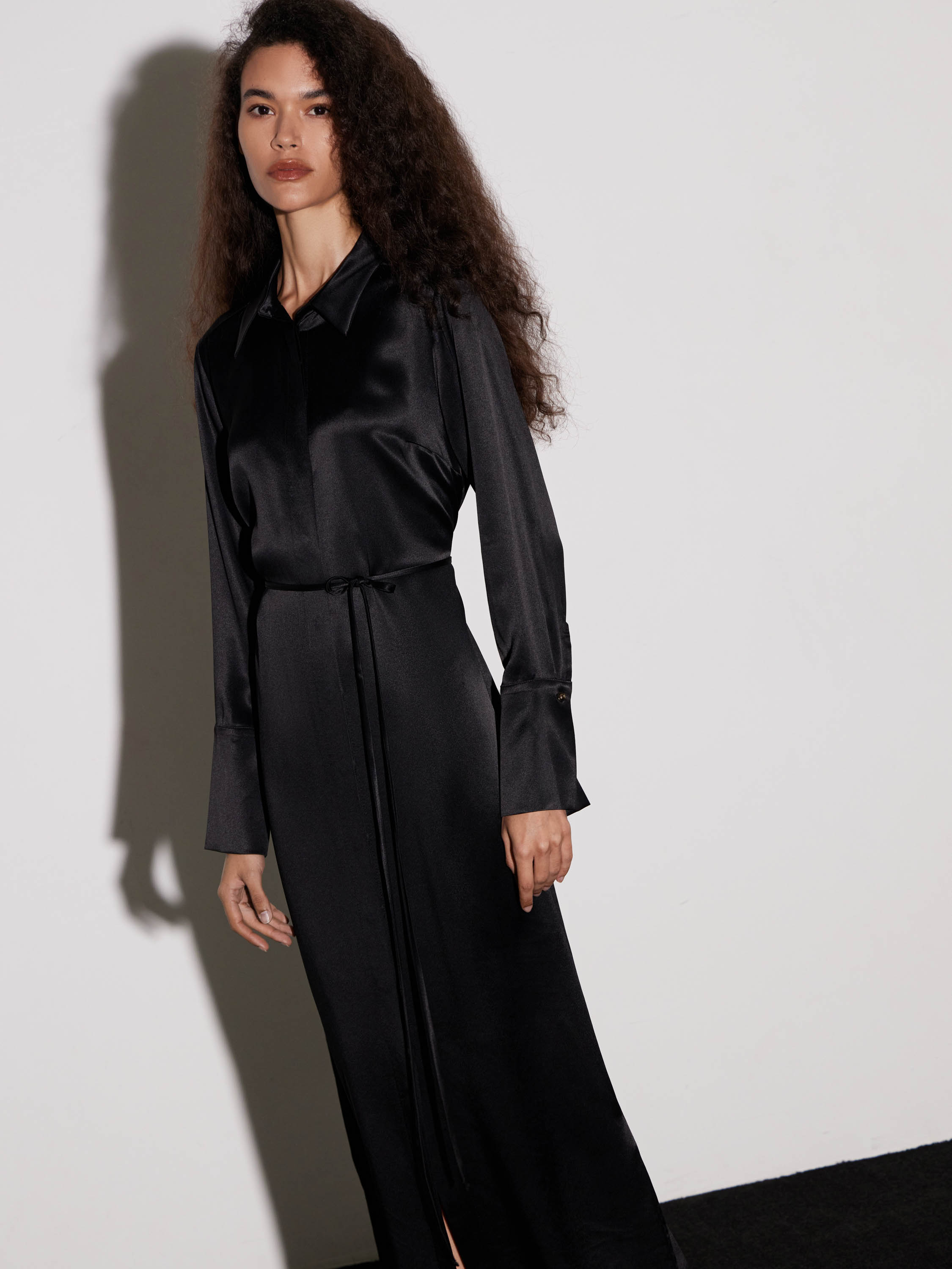 Платье-рубашка макси с поясом