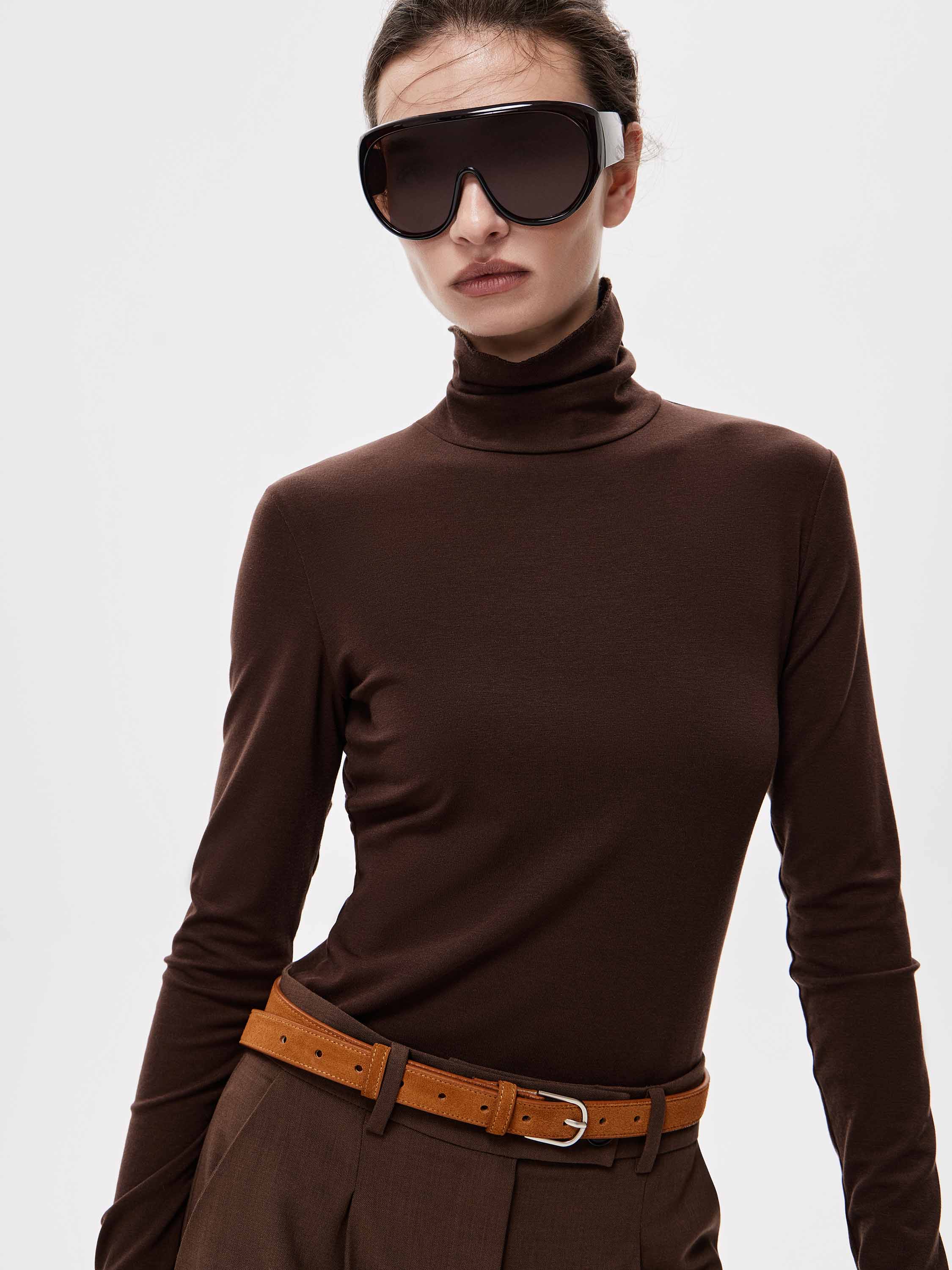Ремень из плотной гладкой замши с овальной пряжкой в оттенке матового золота. Минимальные детали, выверенные пропорции, благородный блеск фурнитуры. Он добавляет четкость силуэту, работает как акцент и сохраняет лаконичность образа — будь то джинсы, костюмные брюки или платье из плотной ткани.