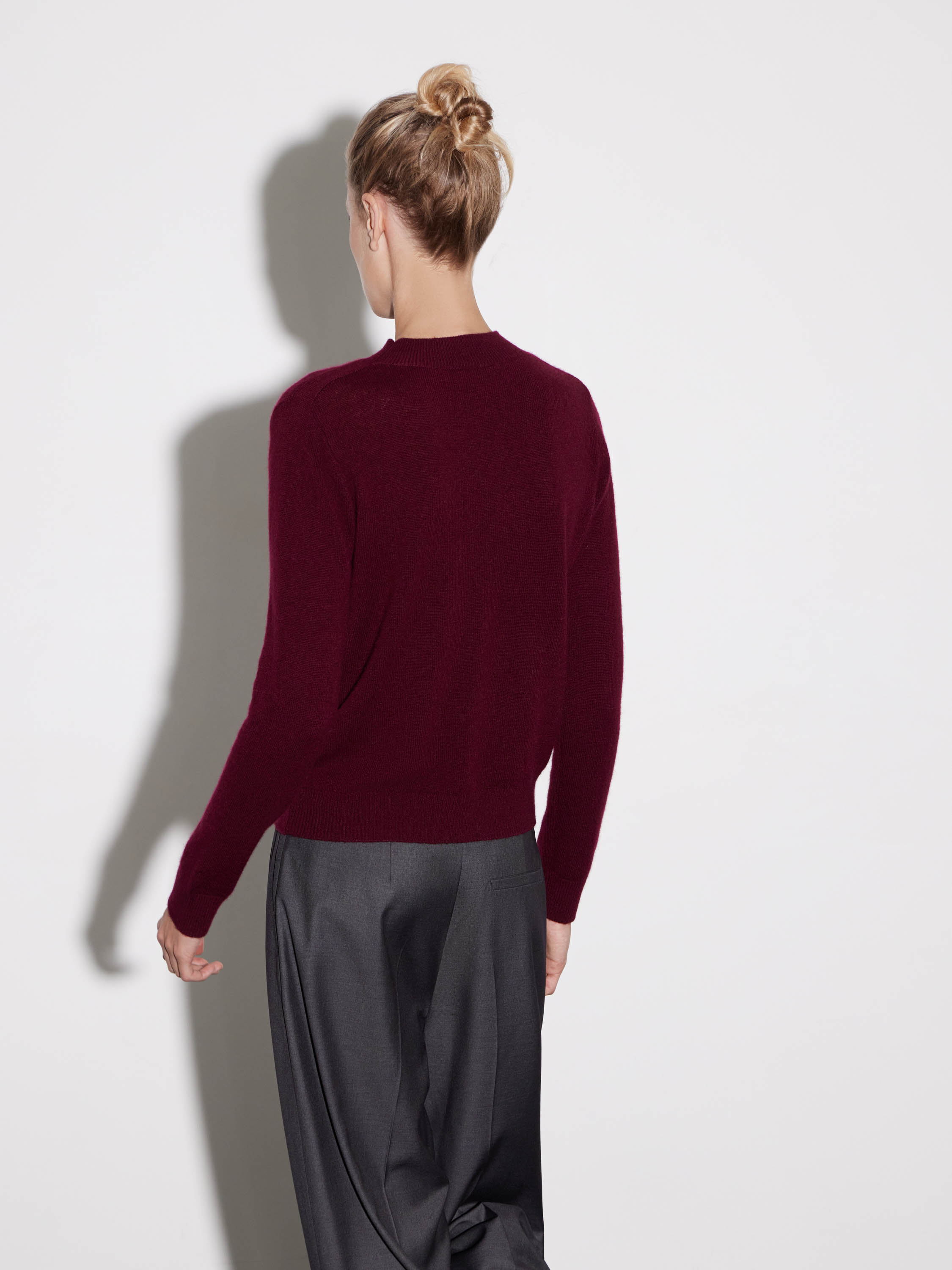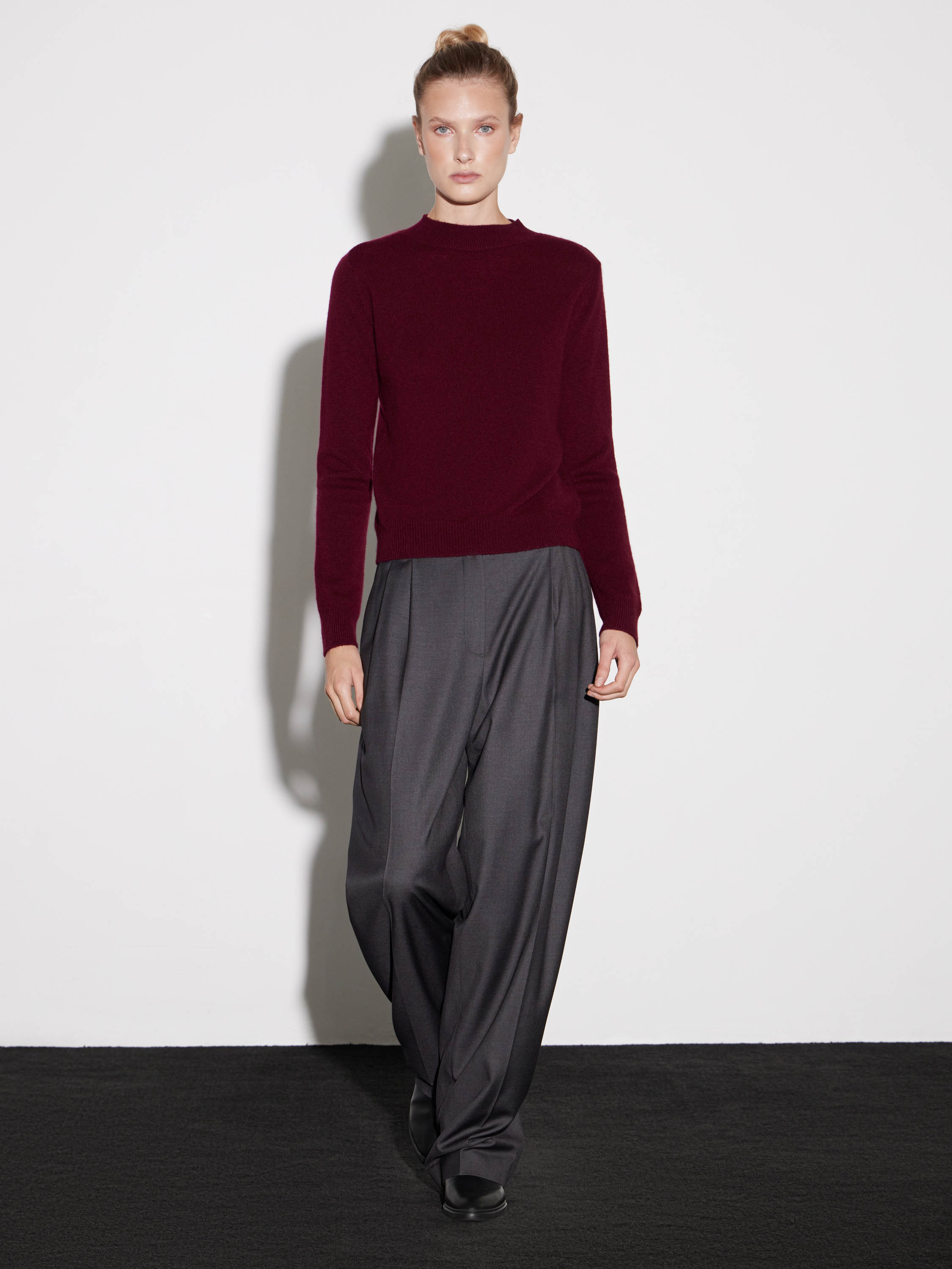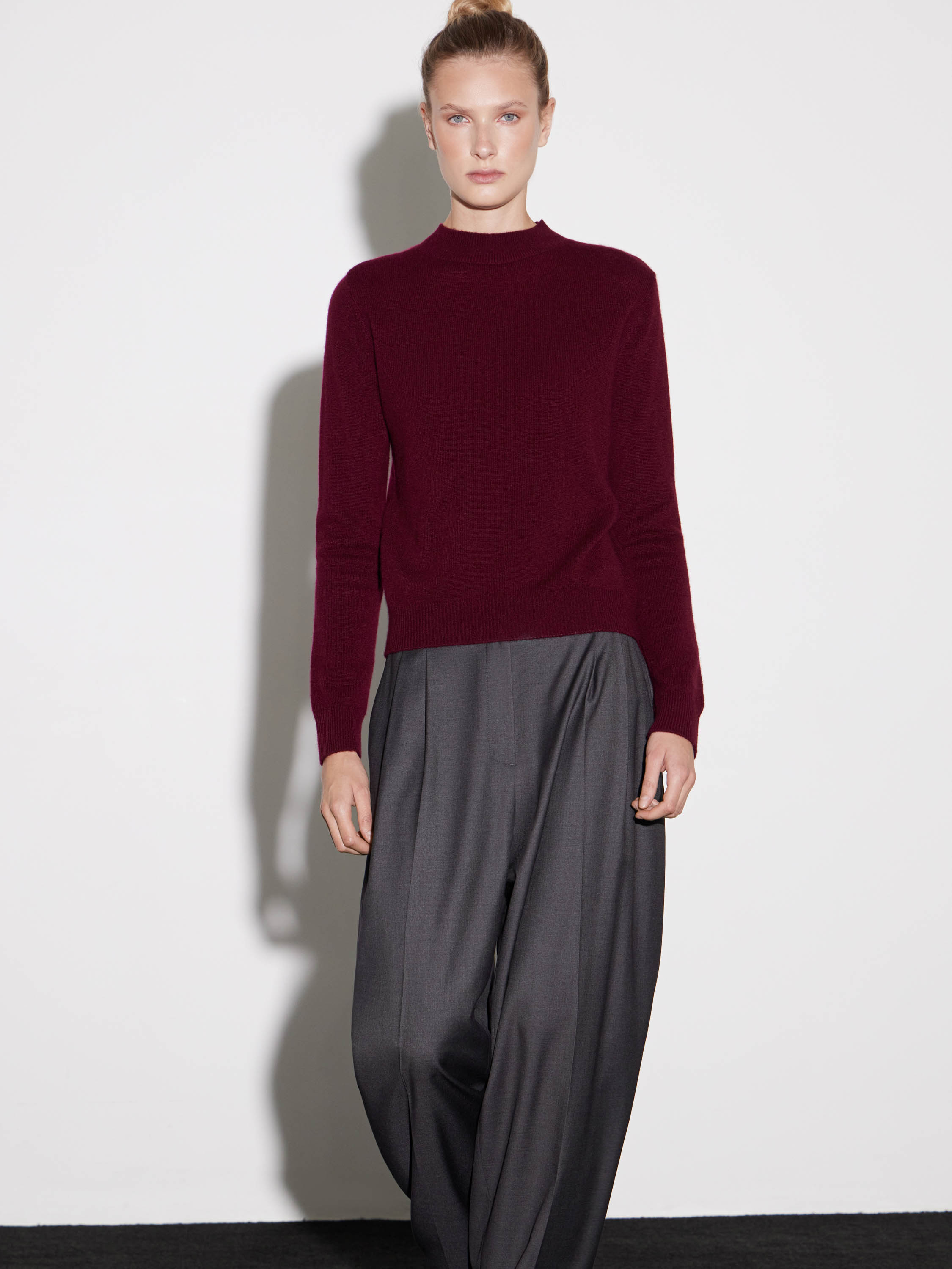 Джемпер из мягкого кашемира с классическим круглым вырезом и длинными рукавами. Лаконичный прямой силуэт обеспечивает комфортную посадку и универсальность модели. Тонкая вязка придает вещи деликатную текстуру, сохраняя при этом тепло и легкость. Плотный, но при этом воздушный материал приятно ощущается на коже и хорошо держит форму. Модель легко интегрируется в повседневный или деловой гардероб, сочетаясь с юбками, брюками или джинсами.