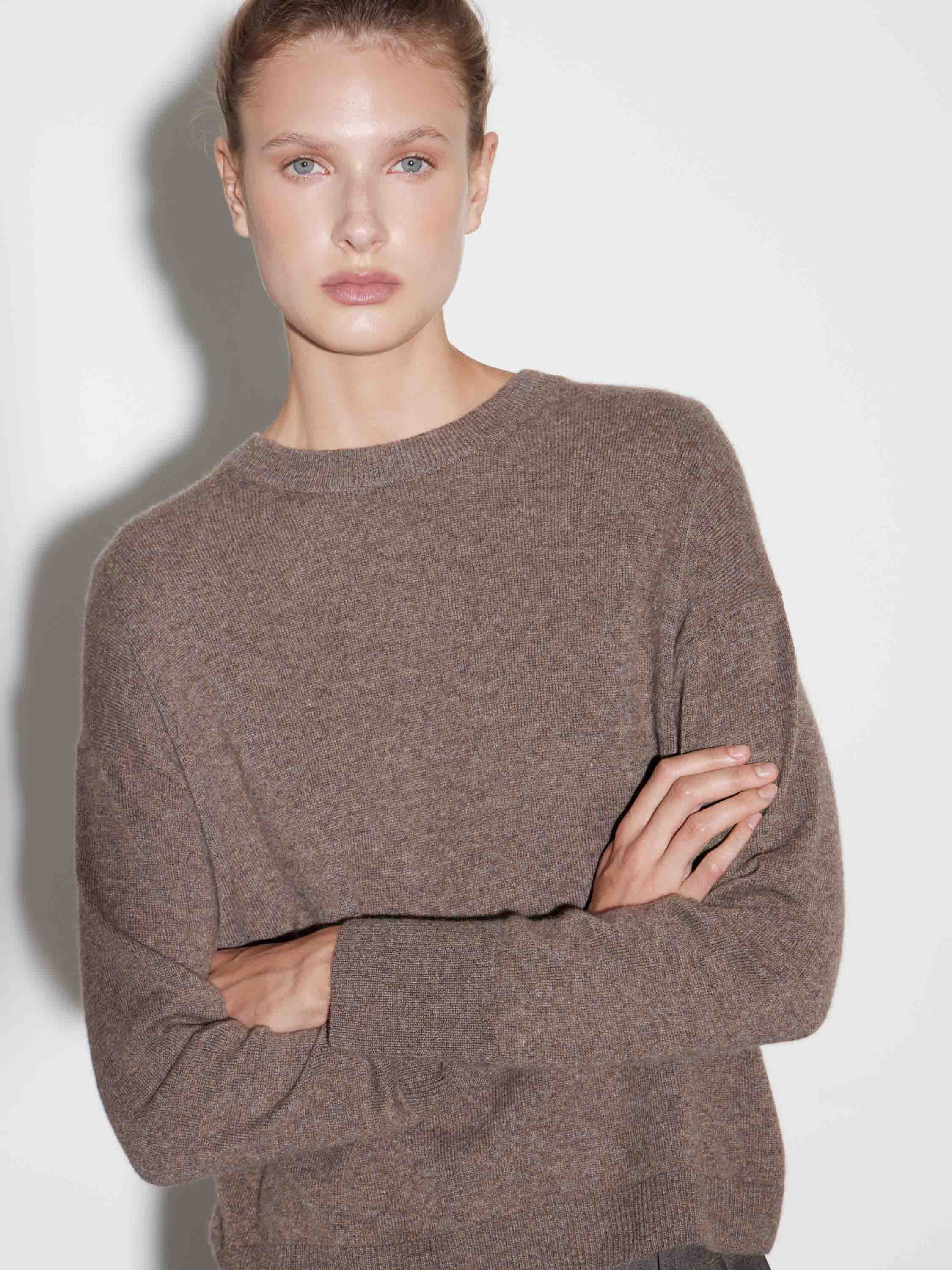 Джемпер из кашемира с мягкой, шелковистой на ощупь фактурой и лаконичным кроем. Модель с круглым вырезом, спущенной линией плеч и длинными рукавами выполнена в теплом терракотовом оттенке, который придает образу выразительность и гармонично сочетается с нейтральной или глубокожемной палитрой. Кашемир ценится за легкость, природную терморегуляцию и исключительную нежность к коже, обеспечивая комфорт в прохладную погоду без утяжеления. Волокна отличаются прочностью и сохраняют форму, позволяя вещи долго оставаться безупречной.