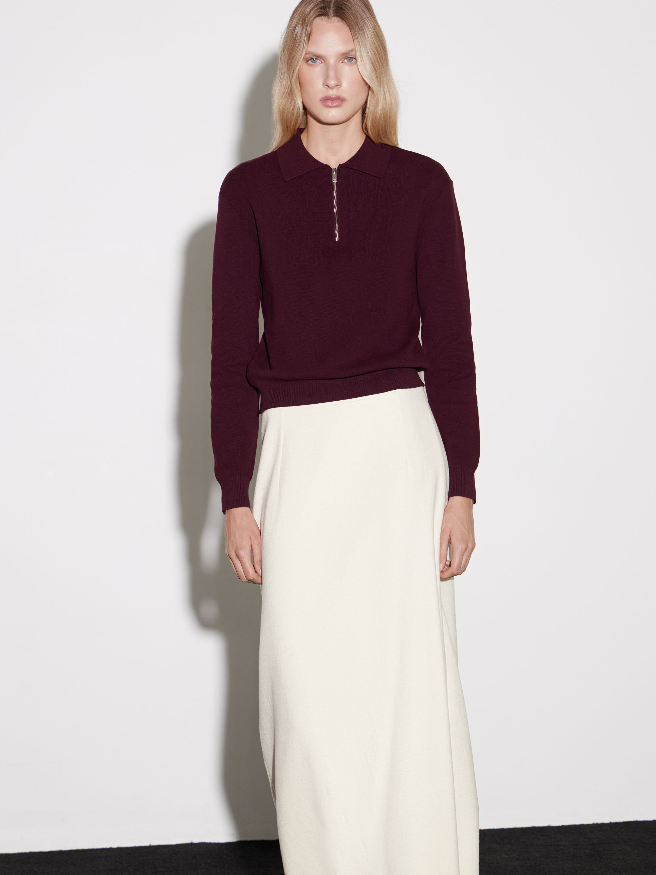 Джемпер из чистого хлопка отличается мягкостью и комфортом, оставаясь дышащим и практичным в носке. Прямой крой с воротником-поло и застежкой на молнию формирует современный силуэт и добавляет функциональности. Длинные рукава с манжетами и эластичная резинка по низу создают аккуратную посадку. Натуральное полотно приятно к телу и сохраняет форму при носке. Лаконичный дизайн делает модель универсальной: джемпер легко сочетать с джинсами, брюками и юбками, а также использовать в многослойных комплектах с жакетами и пальто.
