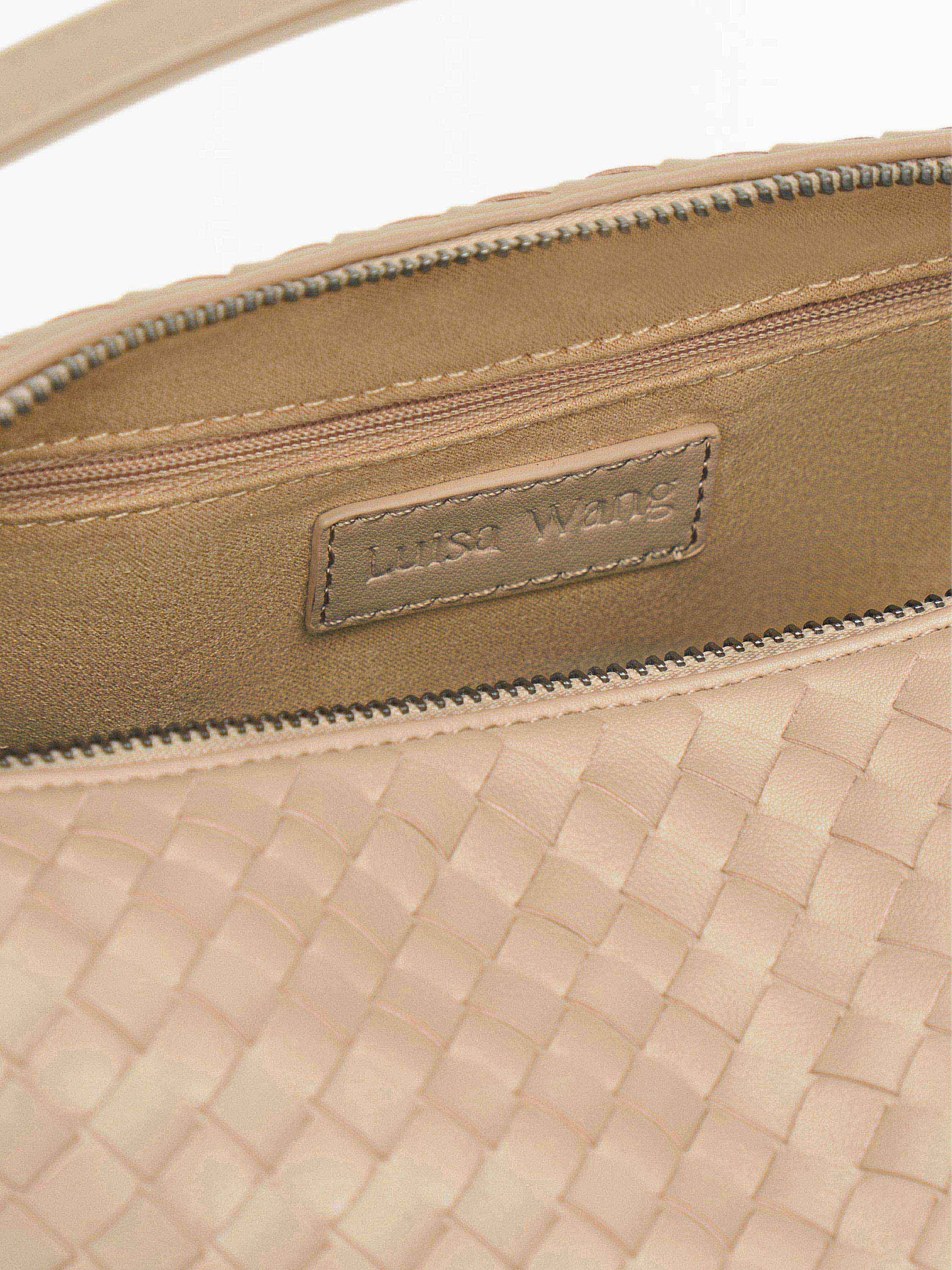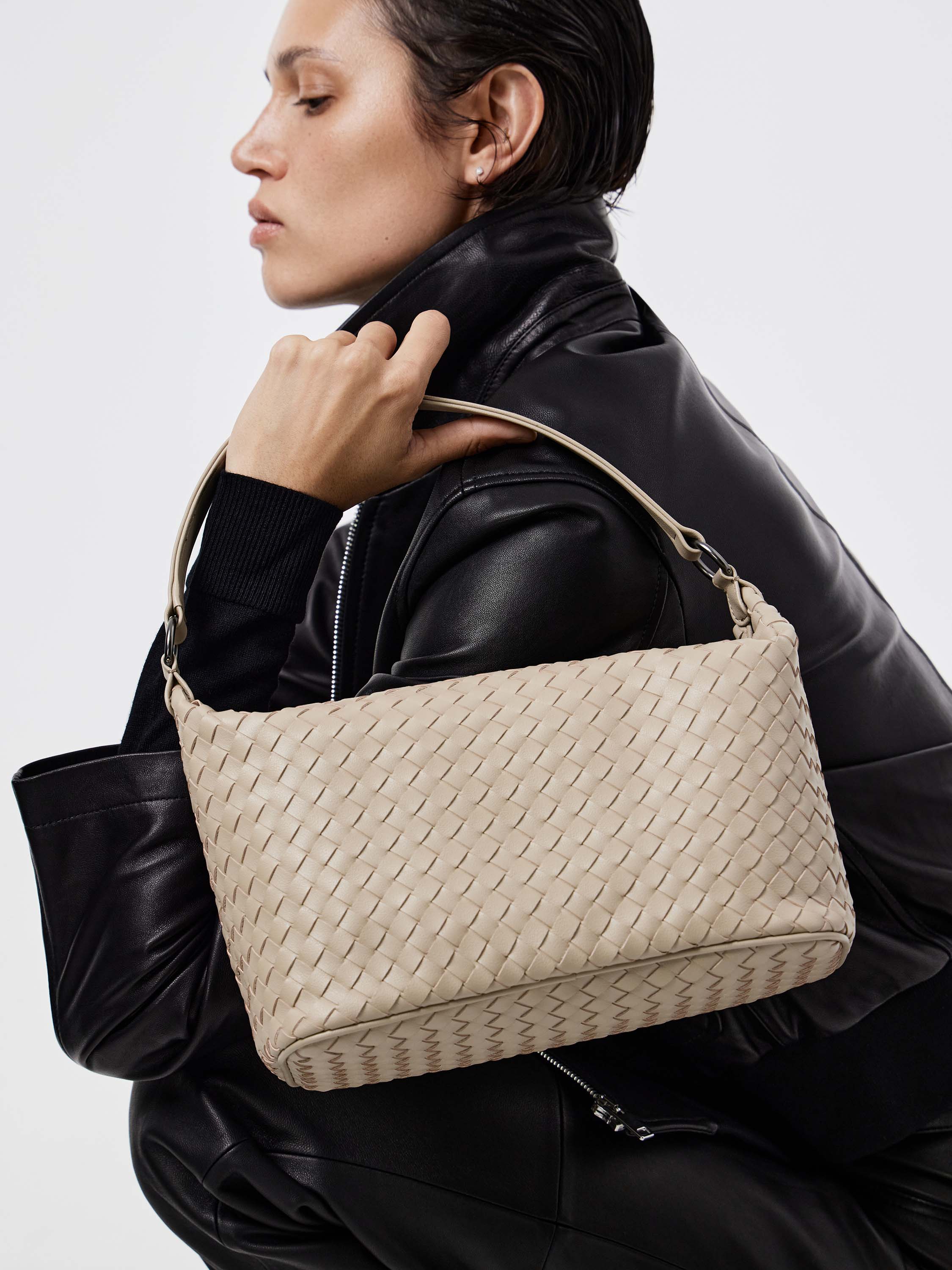 Сумка из 100% натуральной кожи с выразительным плетеным рисунком. Мягкая форма и компактные размеры делают ее удобной для повседневного использования, а короткая ручка позволяет носить модель в руке или на сгибе локтя. Кожа плотная и фактурная, подчеркивающая качество исполнения. Лаконичный дизайн без лишних деталей делает аксессуар универсальным — он гармонично дополнит как строгие, так и более расслабленные образы.