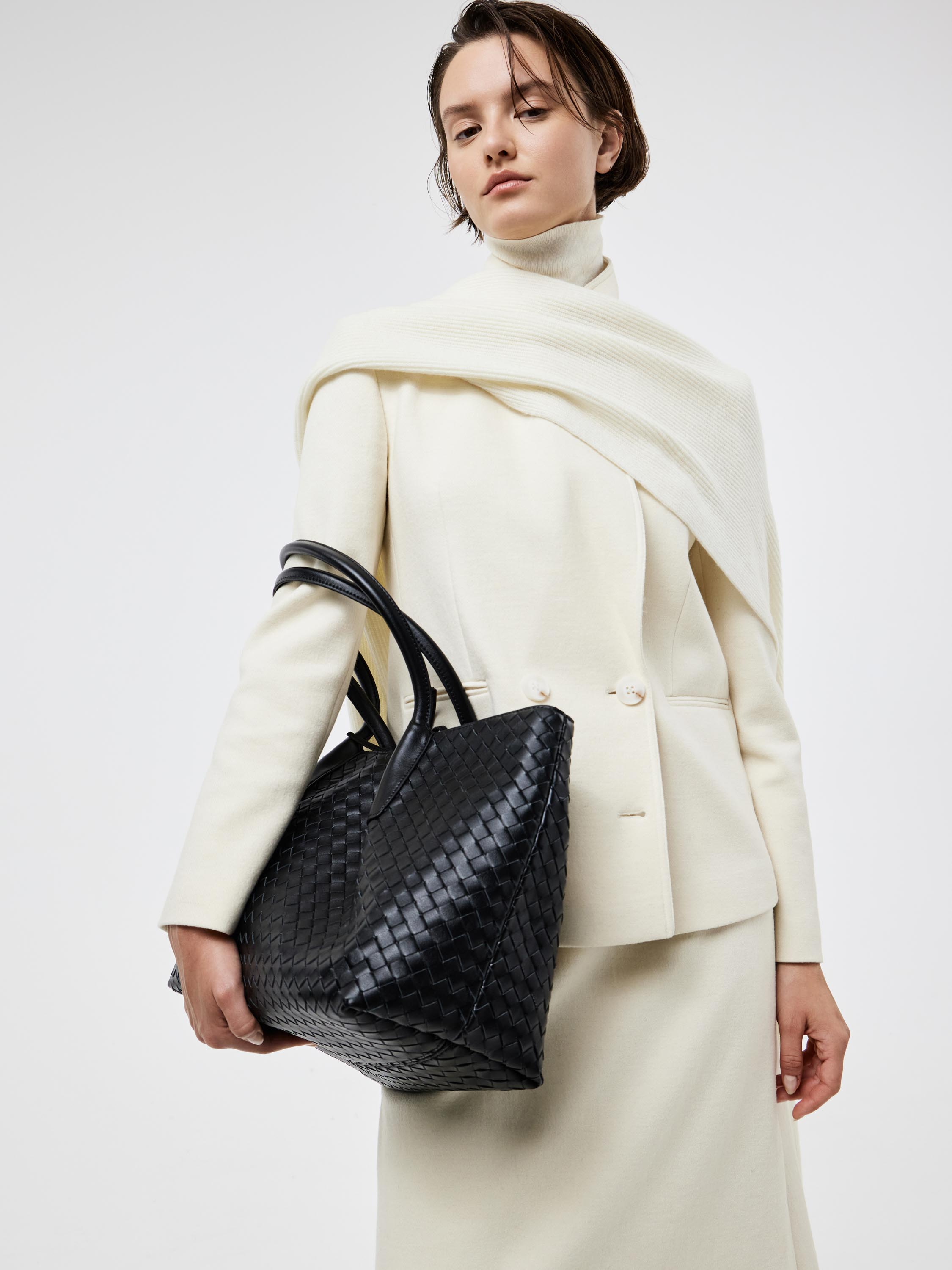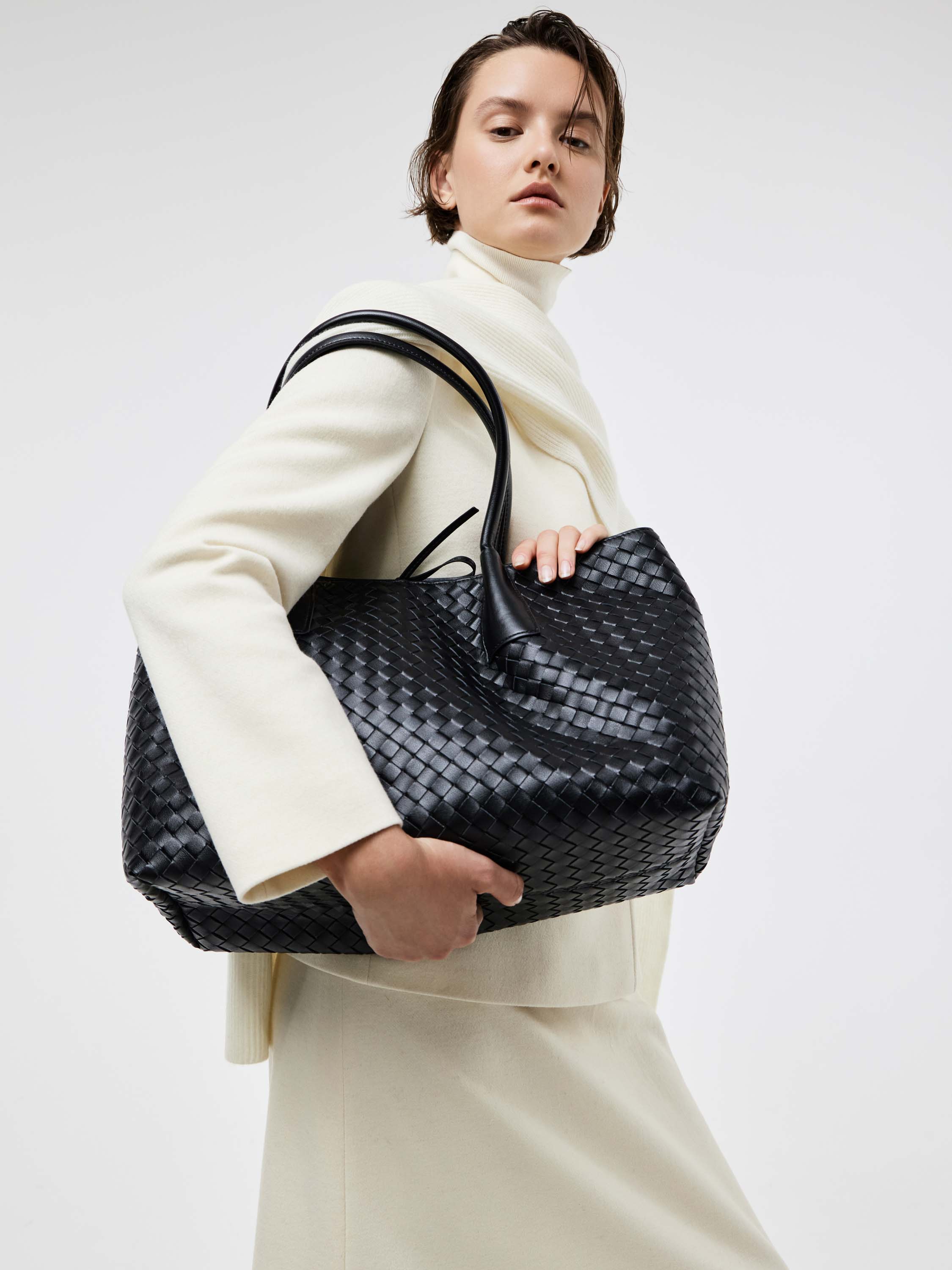 Шоппер выполнен из 100% натуральной кожи с выразительным плетением, создающим фактурный рельеф. Просторная форма позволяет вместить все необходимое, а длинные ручки обеспечивают удобство при носке как в руке, так и на плече. Кожа плотная и при этом пластичная, что делает изделие практичным и долговечным. Лаконичный силуэт и минимализм деталей подчеркивают современный характер модели, позволяя сумке органично вписываться как в деловой, так и в повседневный гардероб.