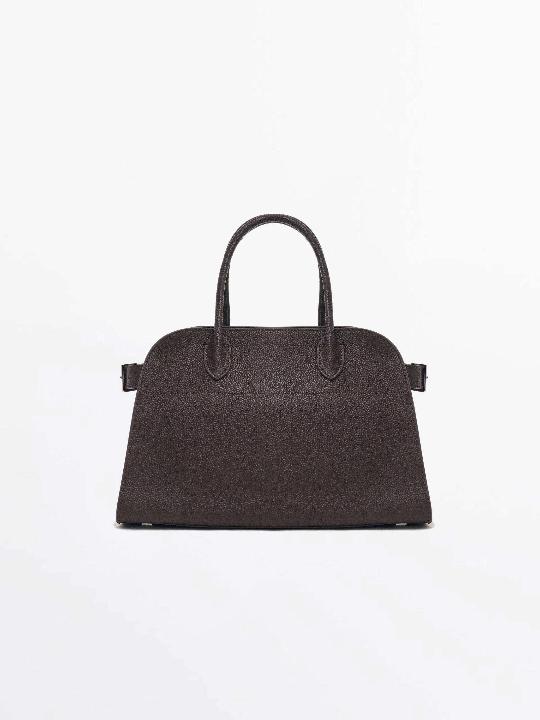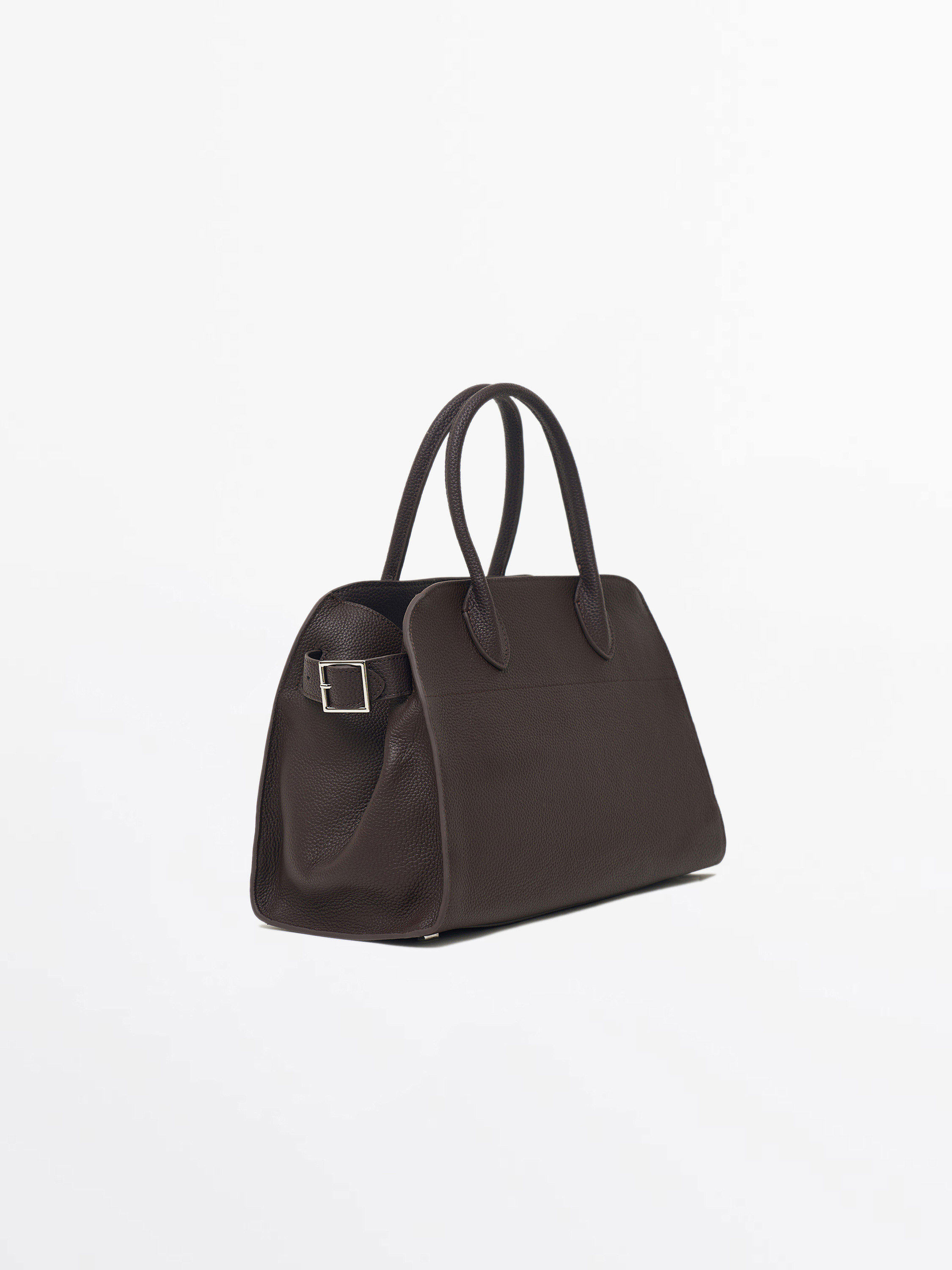 Сумка из натуральной кожи с четкой архитектурой силуэта. Модель выполнена в лаконичном дизайне с двумя устойчивыми ручками и боковыми ремешками на пряжках, которые позволяют регулировать ширину и подчеркивают продуманный характер аксессуара. Плотная зернистая фактура кожи придает изделию выразительность и держит форму, сохраняя аккуратный вид даже при активном использовании. Универсальный формат подходит для делового и повседневного гардероба, а нейтральный оттенок легко вписывается в современный минимализм.