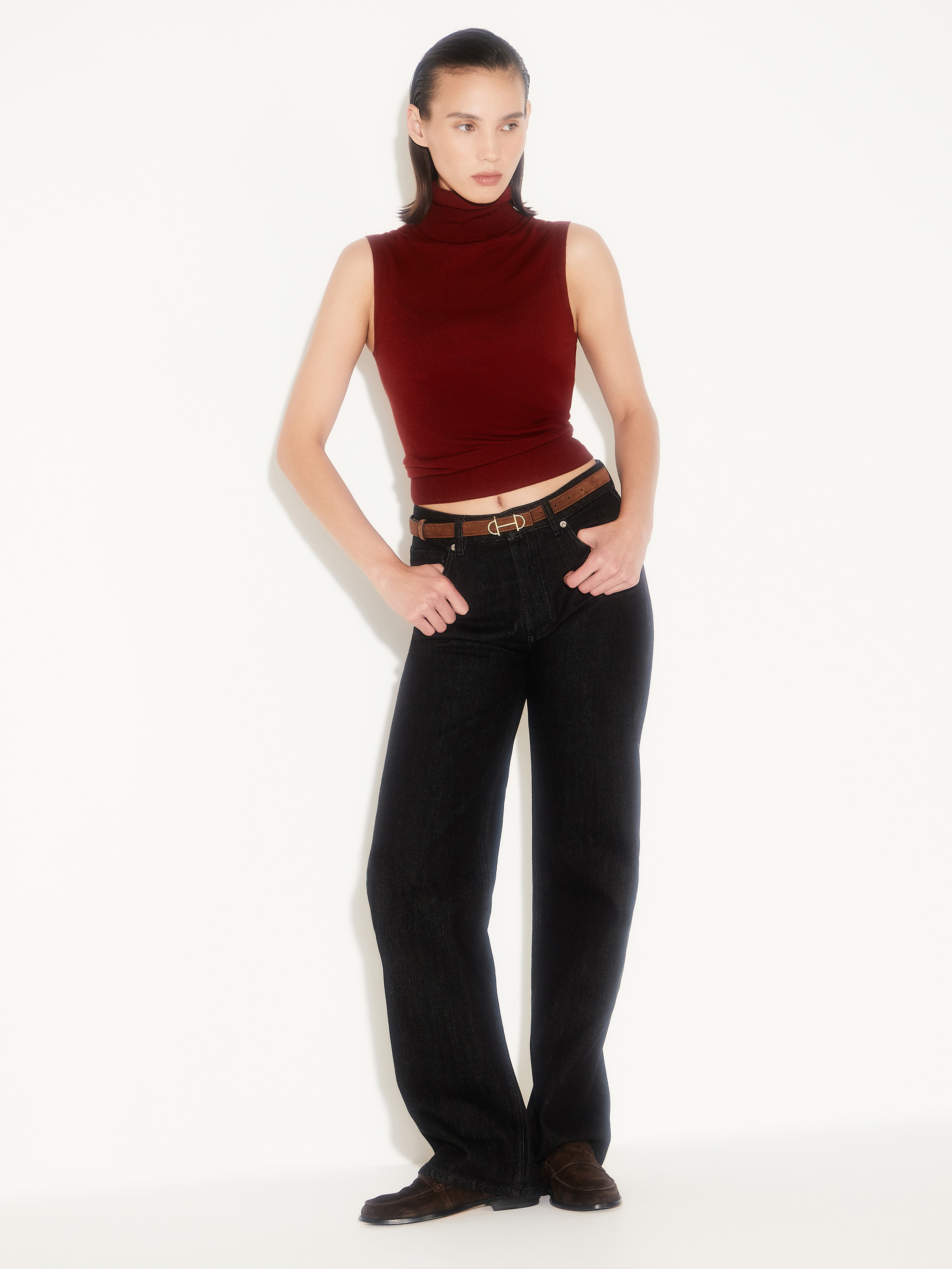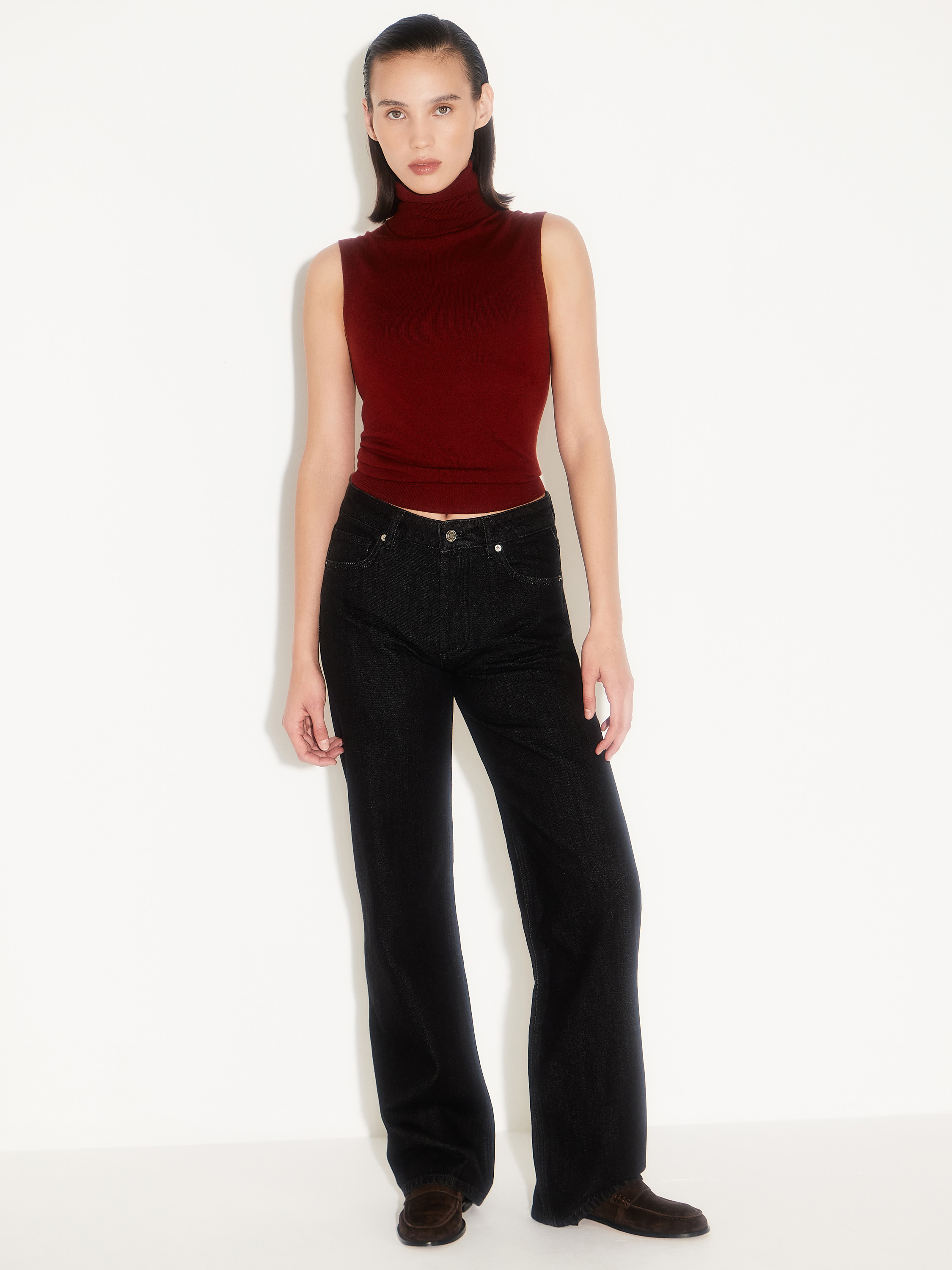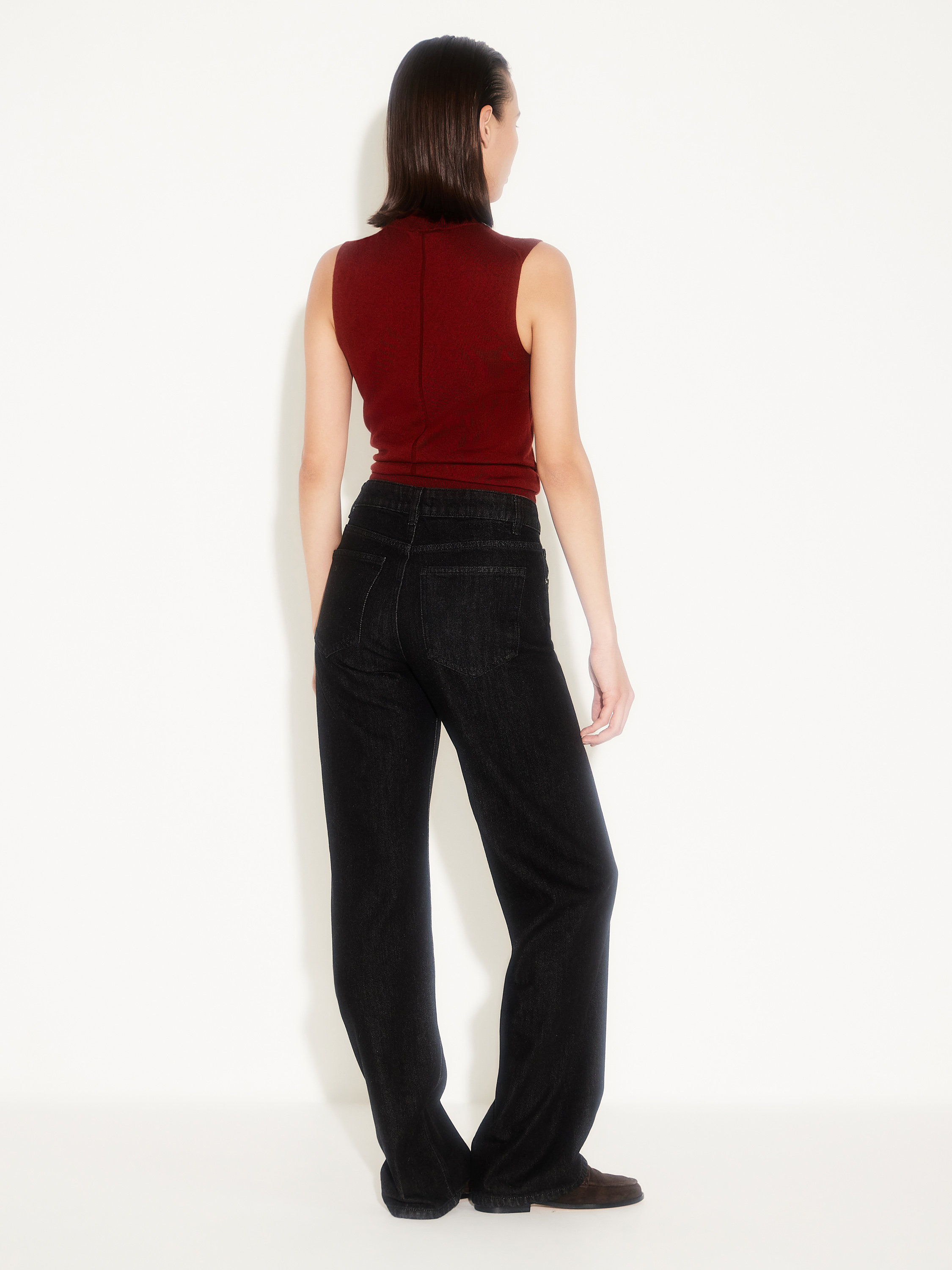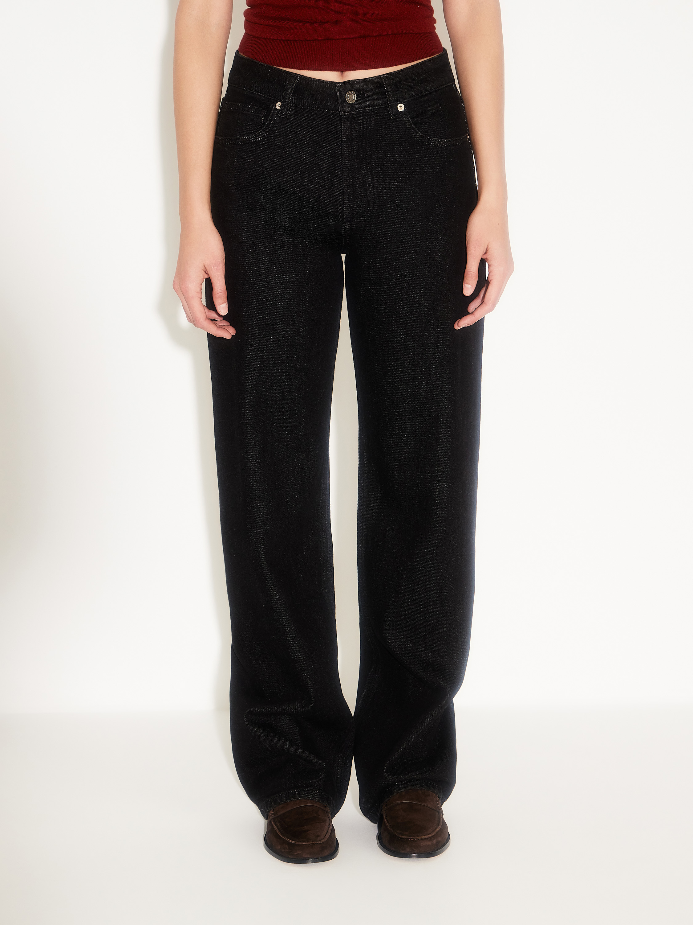 Джинсы из плотного хлопкового денима с естественной фактурой ткани. Прямой удлиненный крой формирует чистую линию силуэта и подчеркивает вертикаль фигуры. Средняя посадка обеспечивает комфорт и удобную фиксацию на талии. Классическая конструкция с пятью карманами подчеркивает лаконичность дизайна и делает модель универсальной основой гардероба. Джинсы уместны как в минималистичных повседневных образах, так и в более собранных сочетаниях.