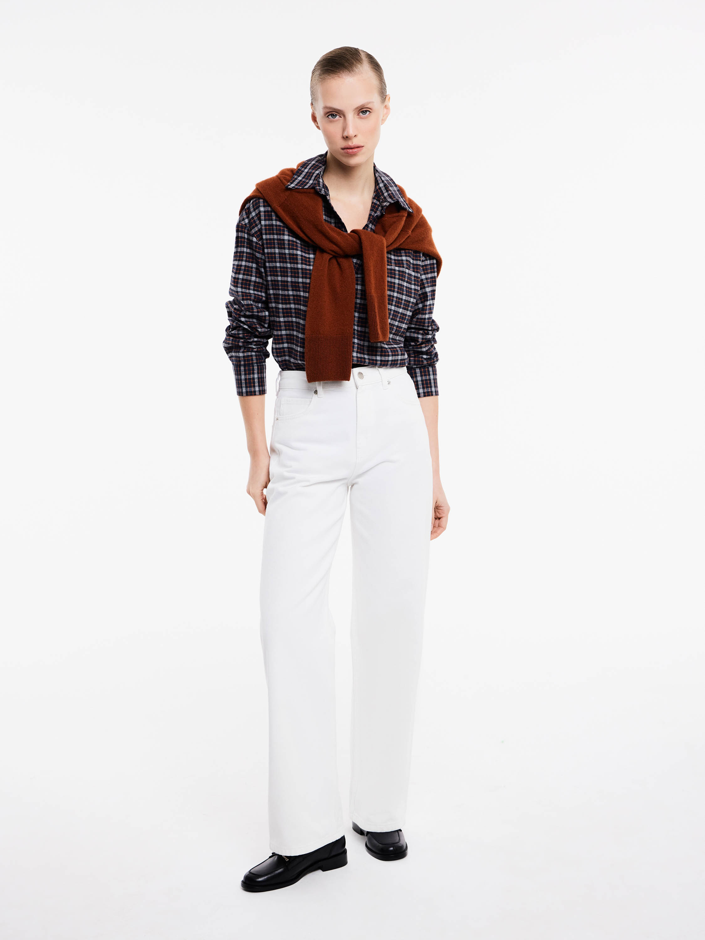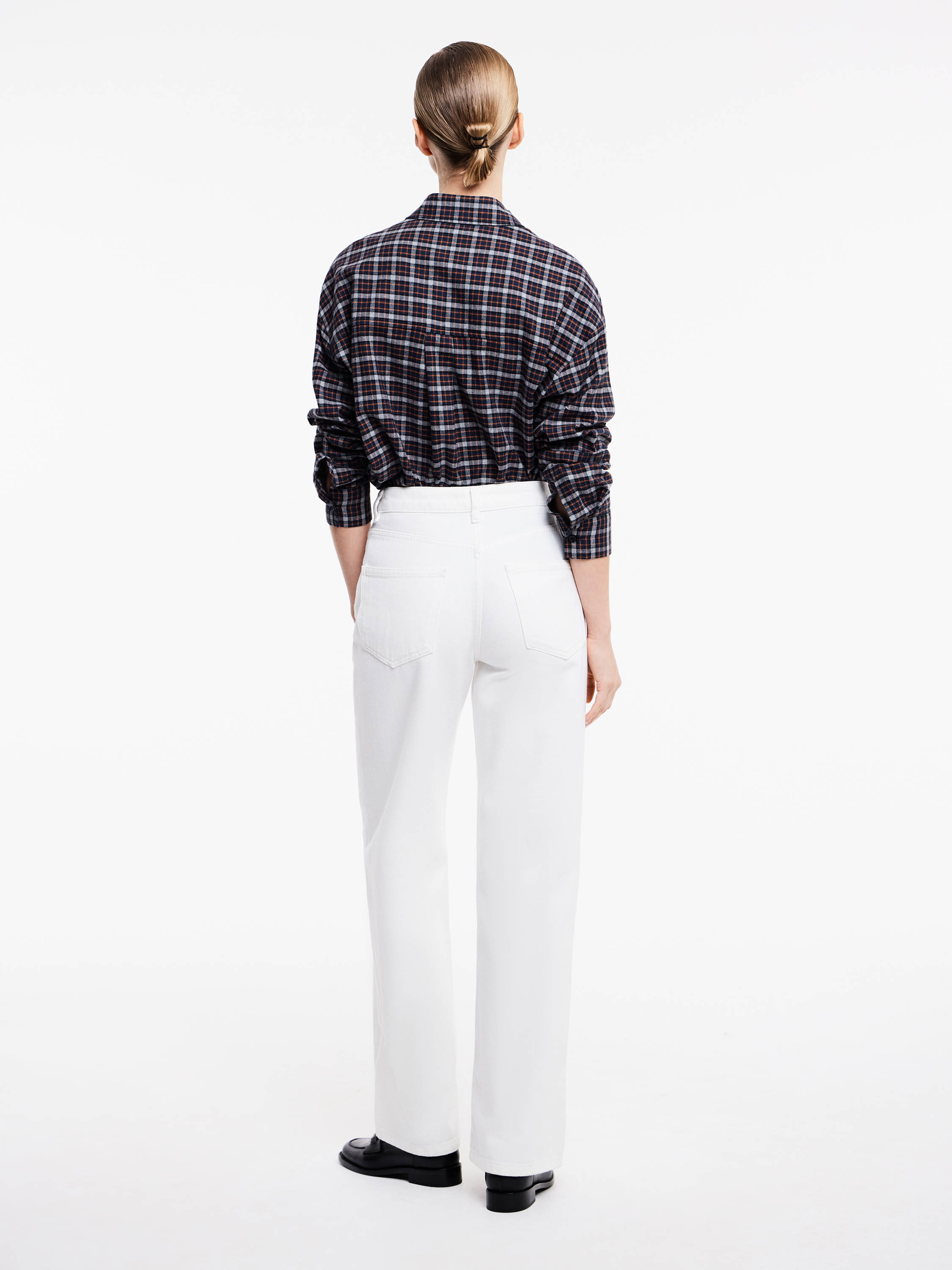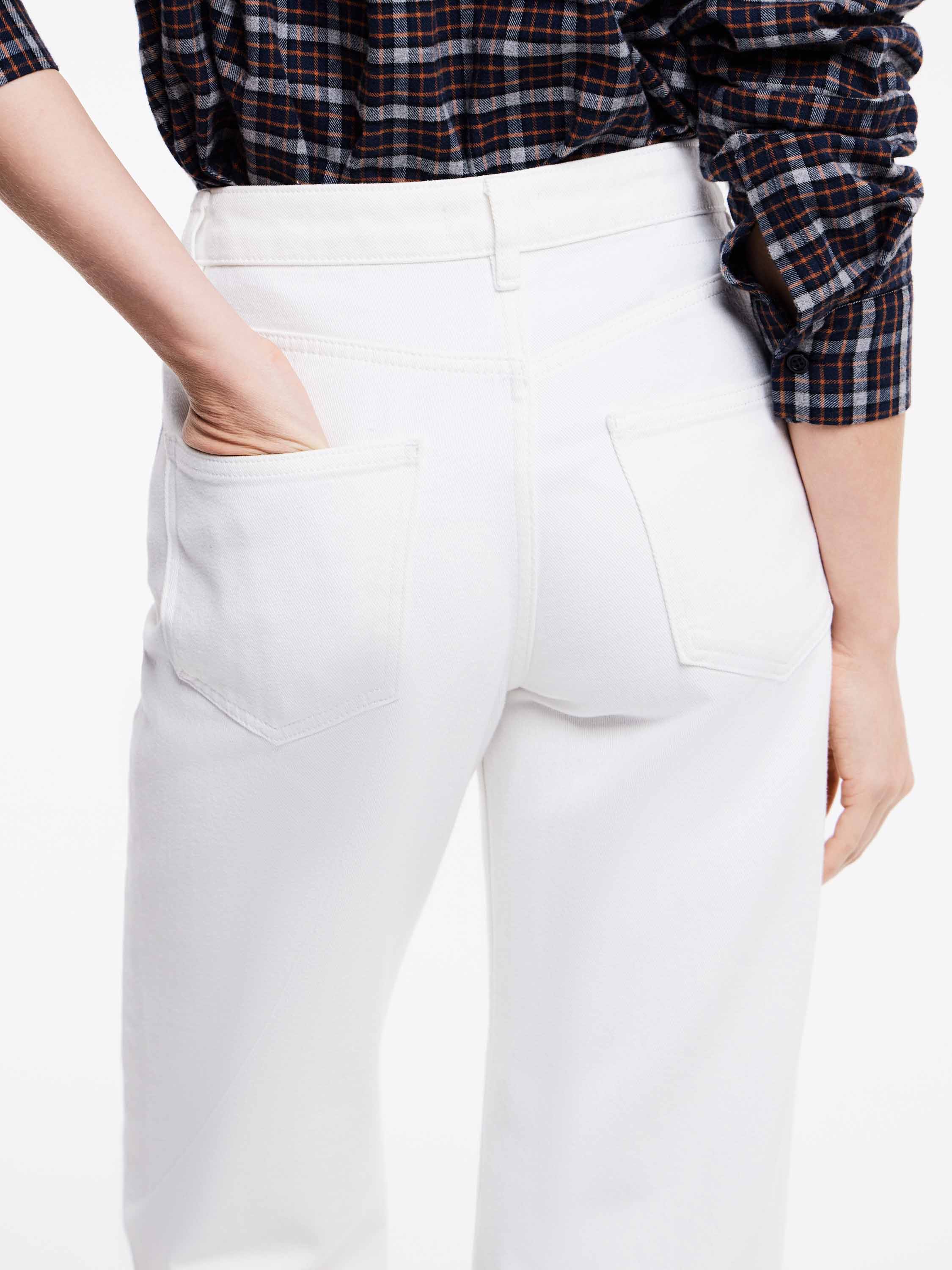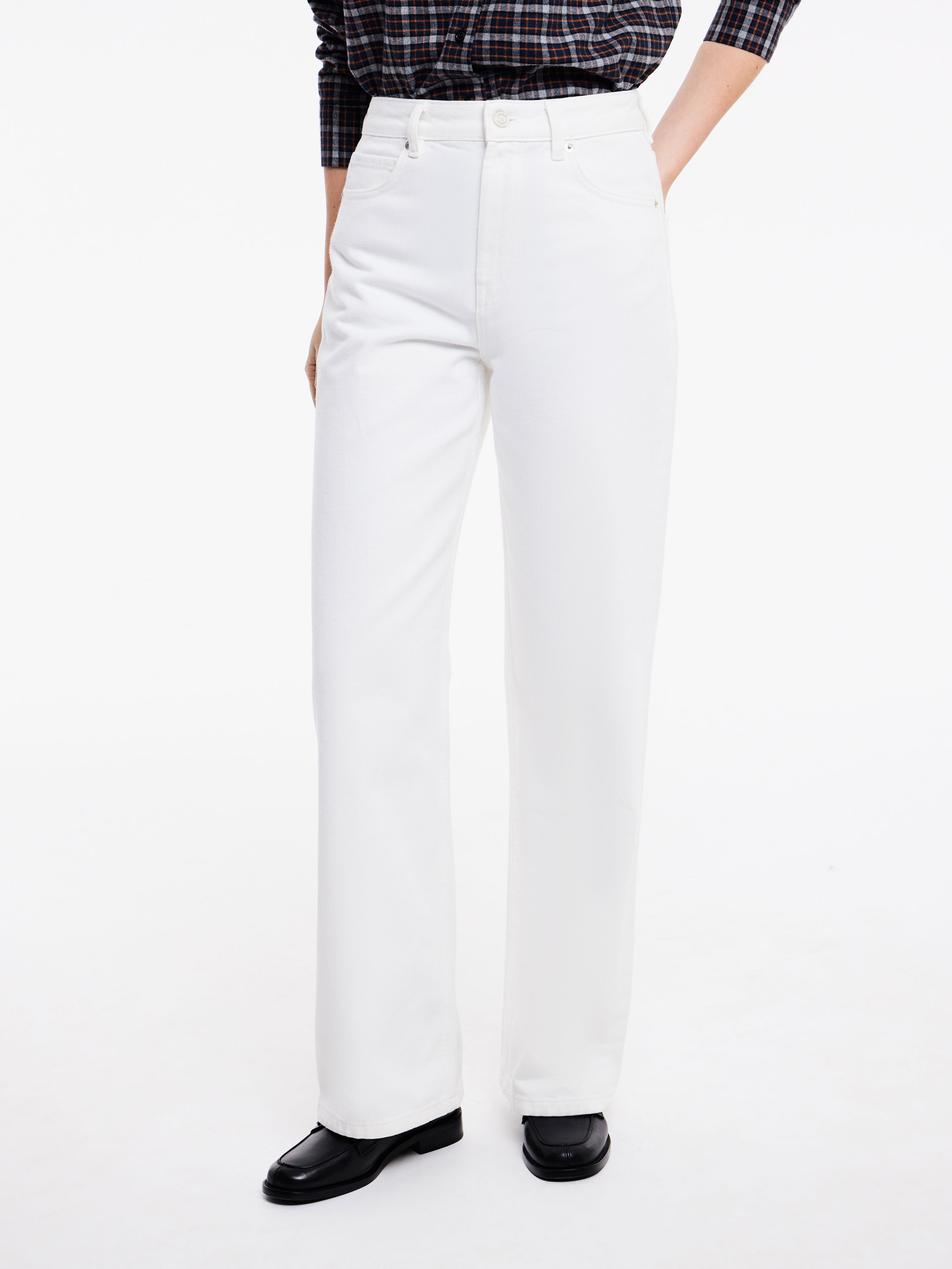 Джинсы из 100% хлопка с плотной, но мягкой на ощупь фактурой. Классический прямой крой подчеркивает фигуру и создает чистый, современный силуэт. Высокая посадка визуально удлиняет ноги, а светлый оттенок добавляет образу свежести и легкости. Универсальная модель, которая уместна в любое время года — с объемными свитерами, рубашками или лаконичными футболками. Отличный выбор для тех, кто ценит комфорт и сдержанную эстетику.