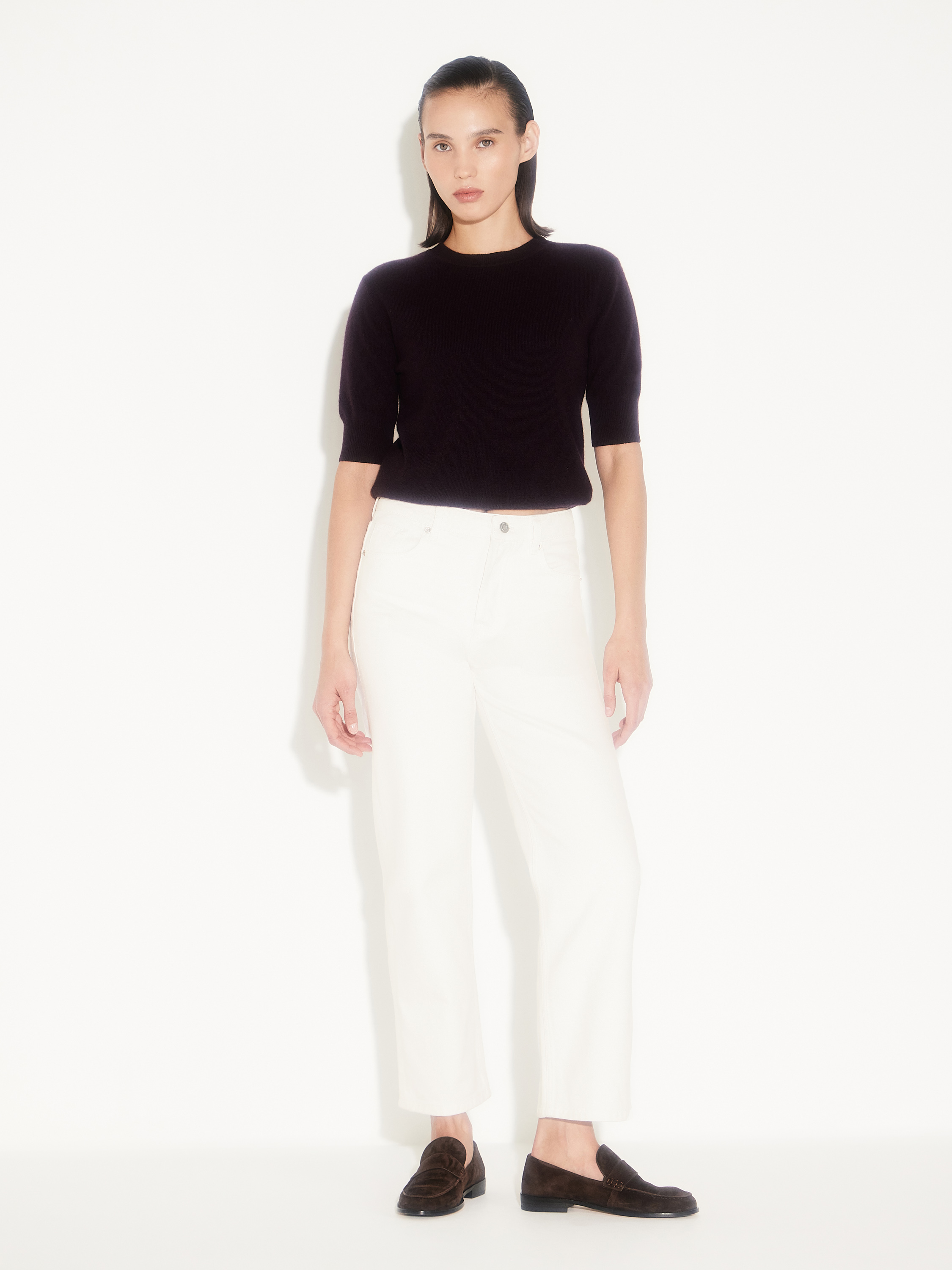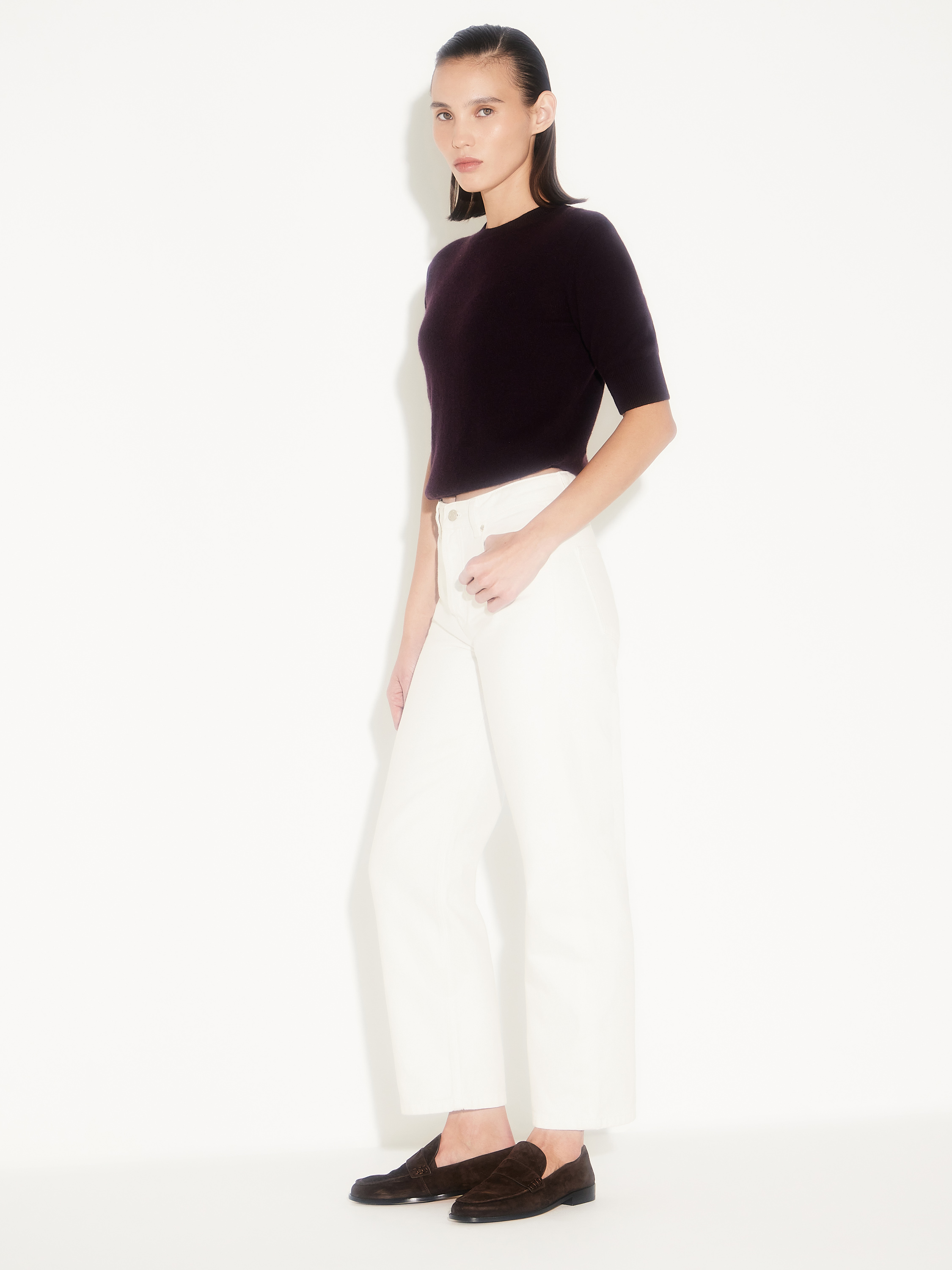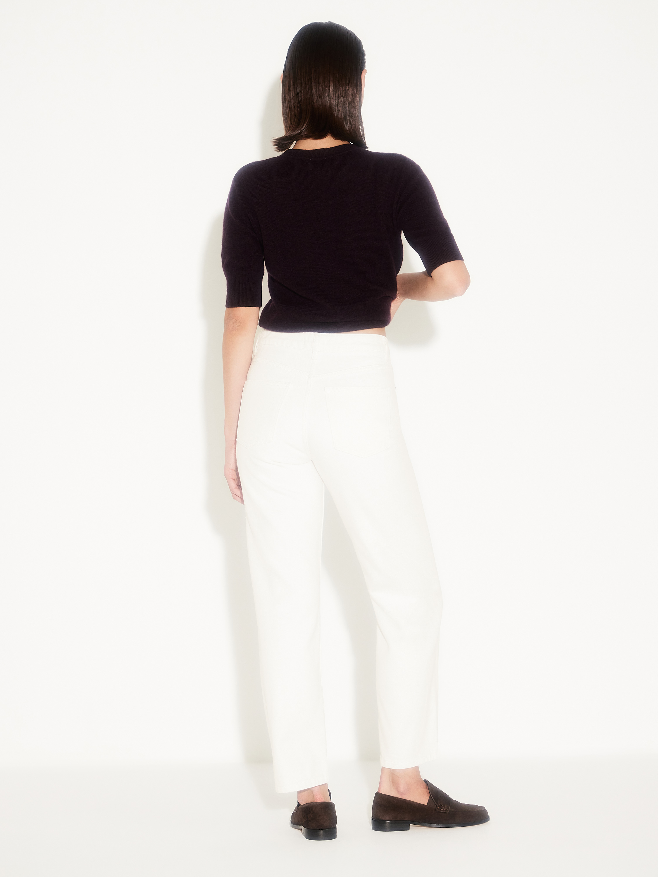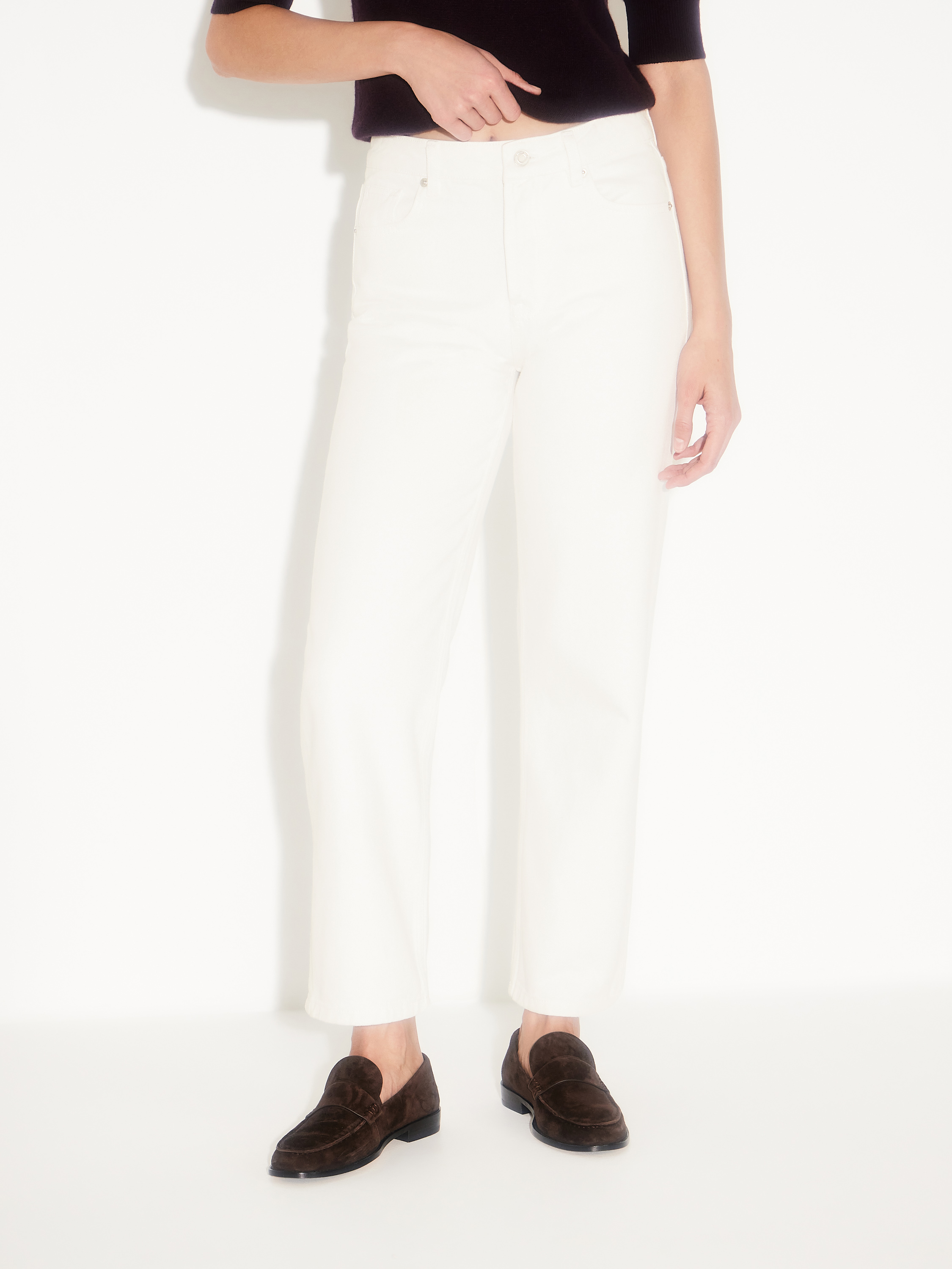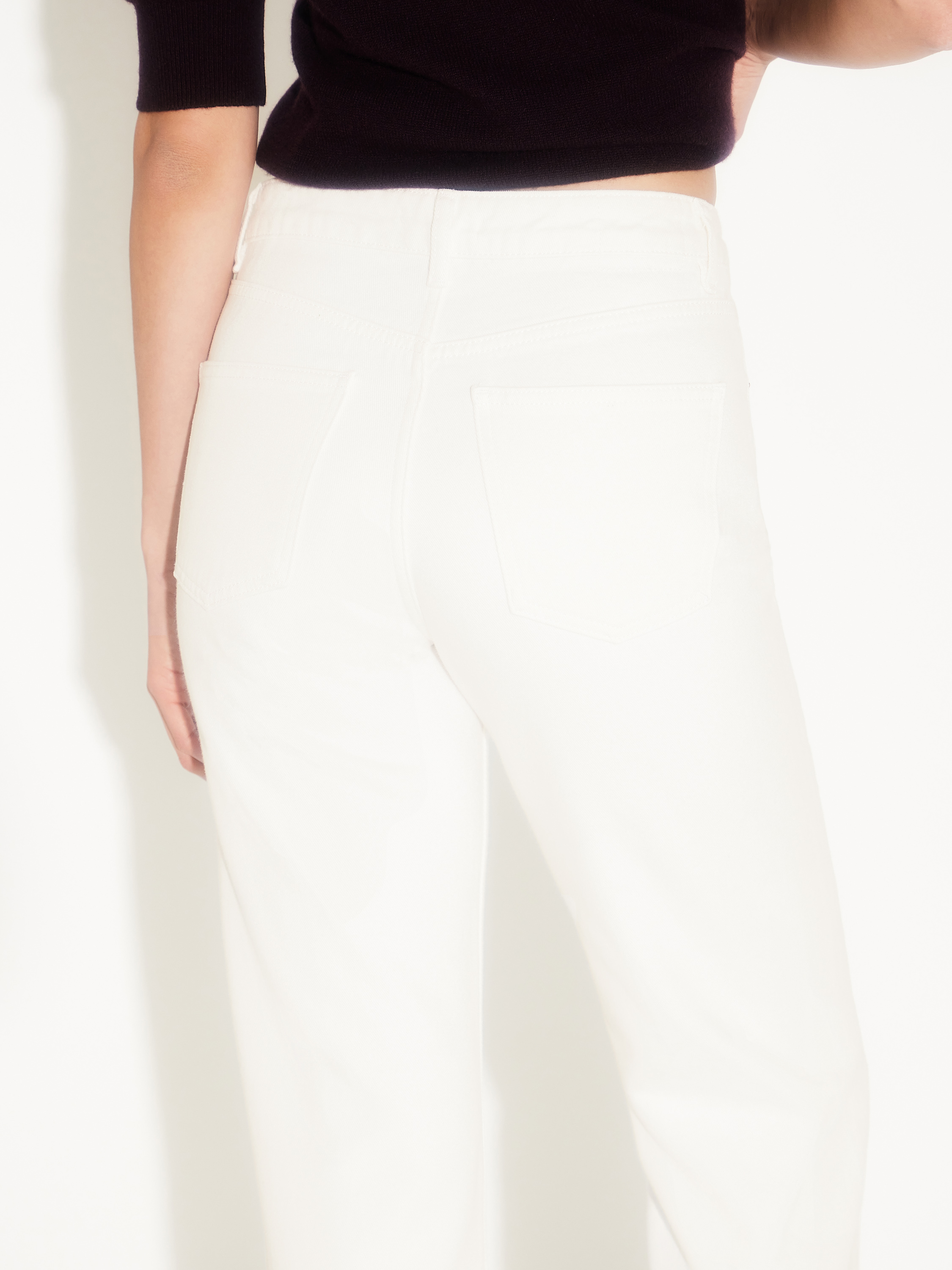 Джинсы прямого кроя из плотного хлопка с чистой архитектурой линии. Модель держит форму, сохраняя при этом мягкость и комфорт посадки. Средняя талия подчеркивает силуэт, а длина до щиколотки делает пропорции визуально вытянутыми. Классический крой без излишних деталей обеспечивает универсальность — джинсы легко вписываются в базовый гардероб и подходят как для лаконичных, так и для более структурных комбинаций.